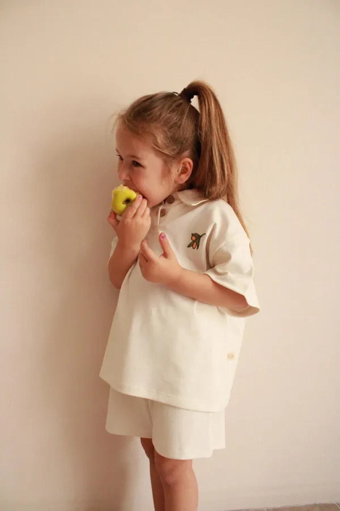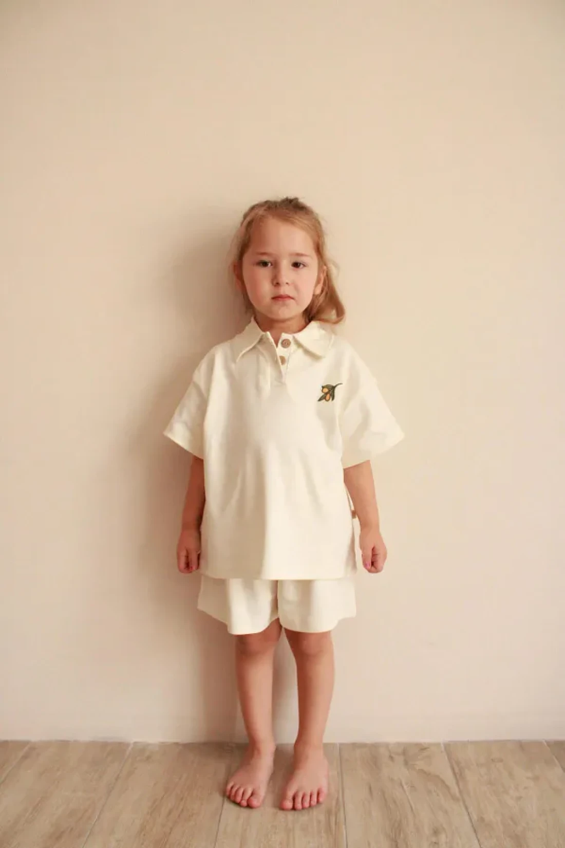 The olive embroidered polo neck shorts set, offering elegance and comfort together with its ecru color, is designed for children's daily use. This set, which can be easily preferred with its single package content, can be comfortably used in every season.