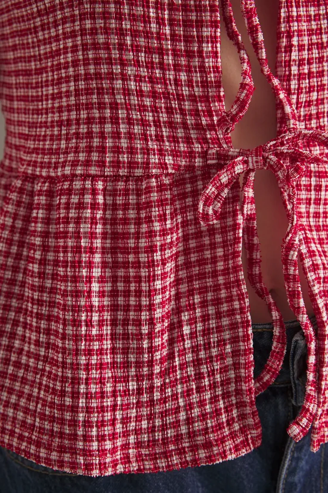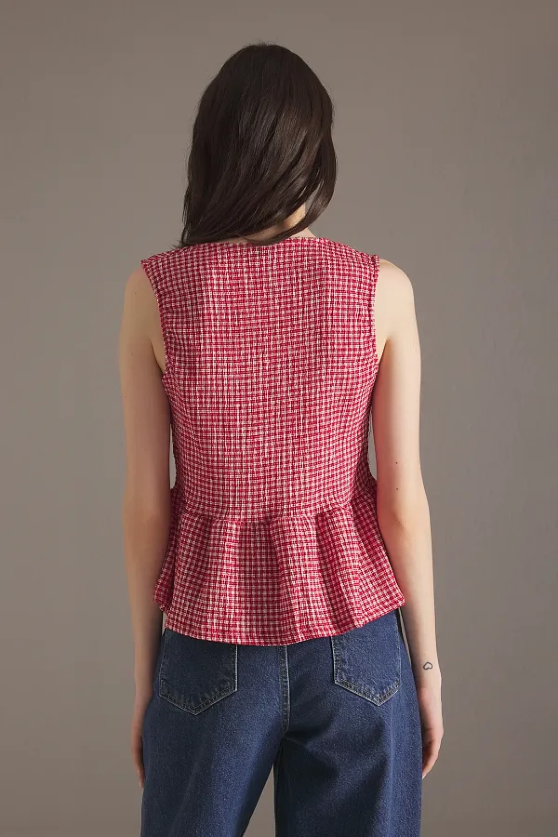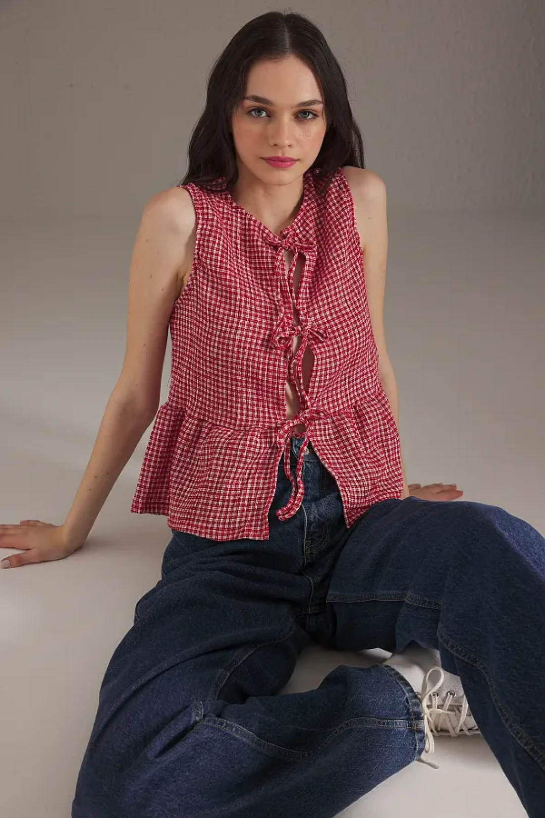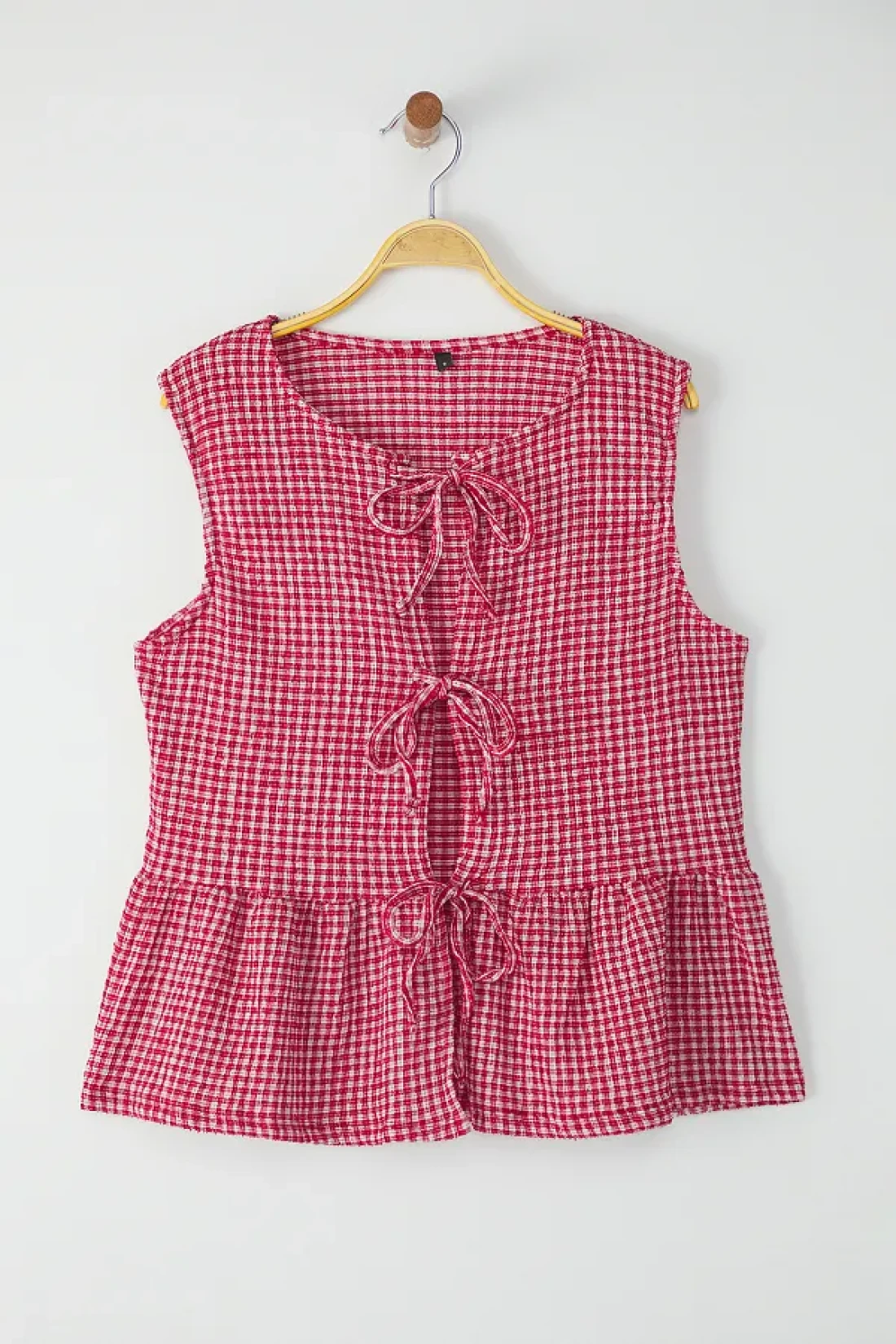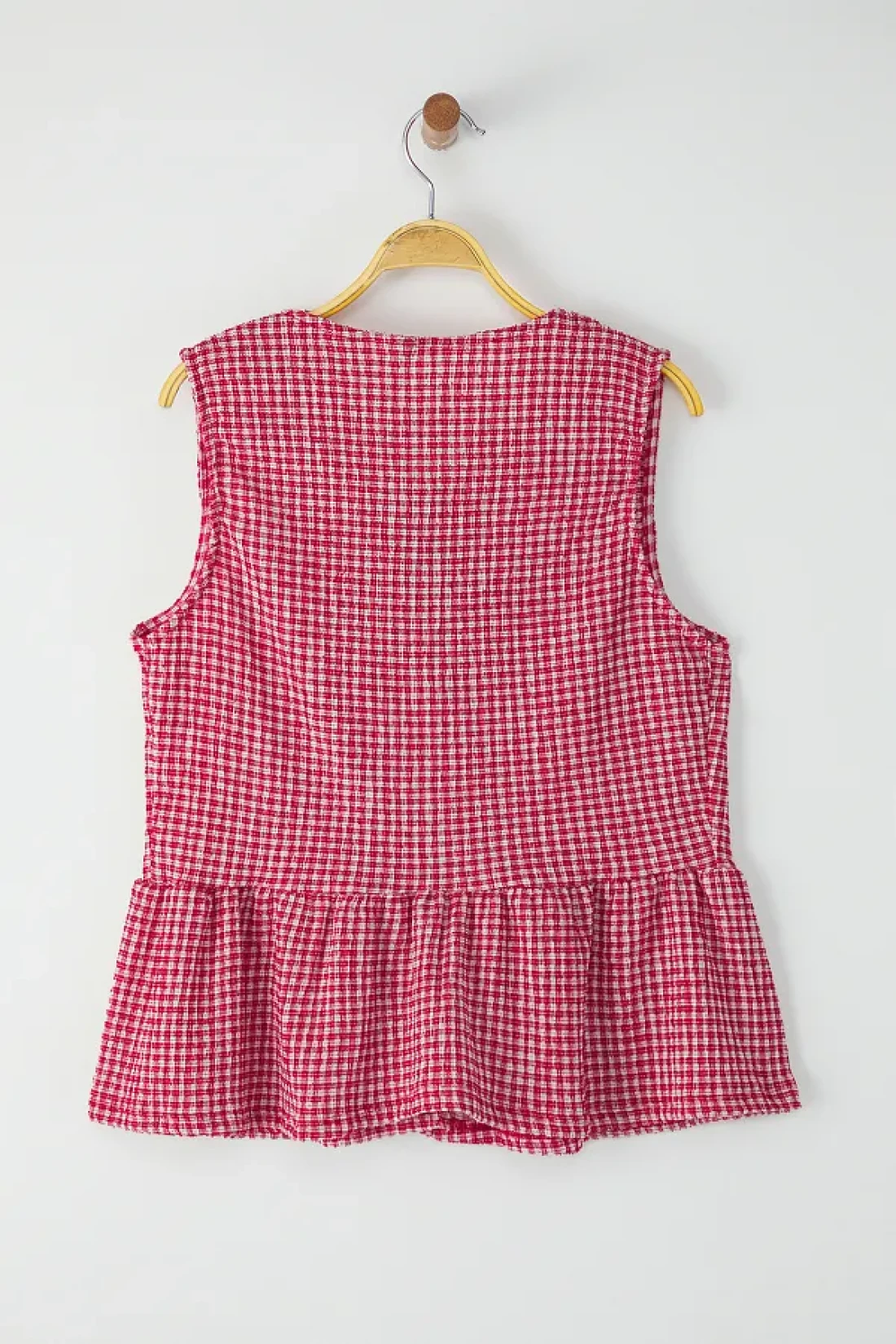 Collection Red Gingham Pattern Binding, Just Like Sleeveless Stretchy Knitted Blouse