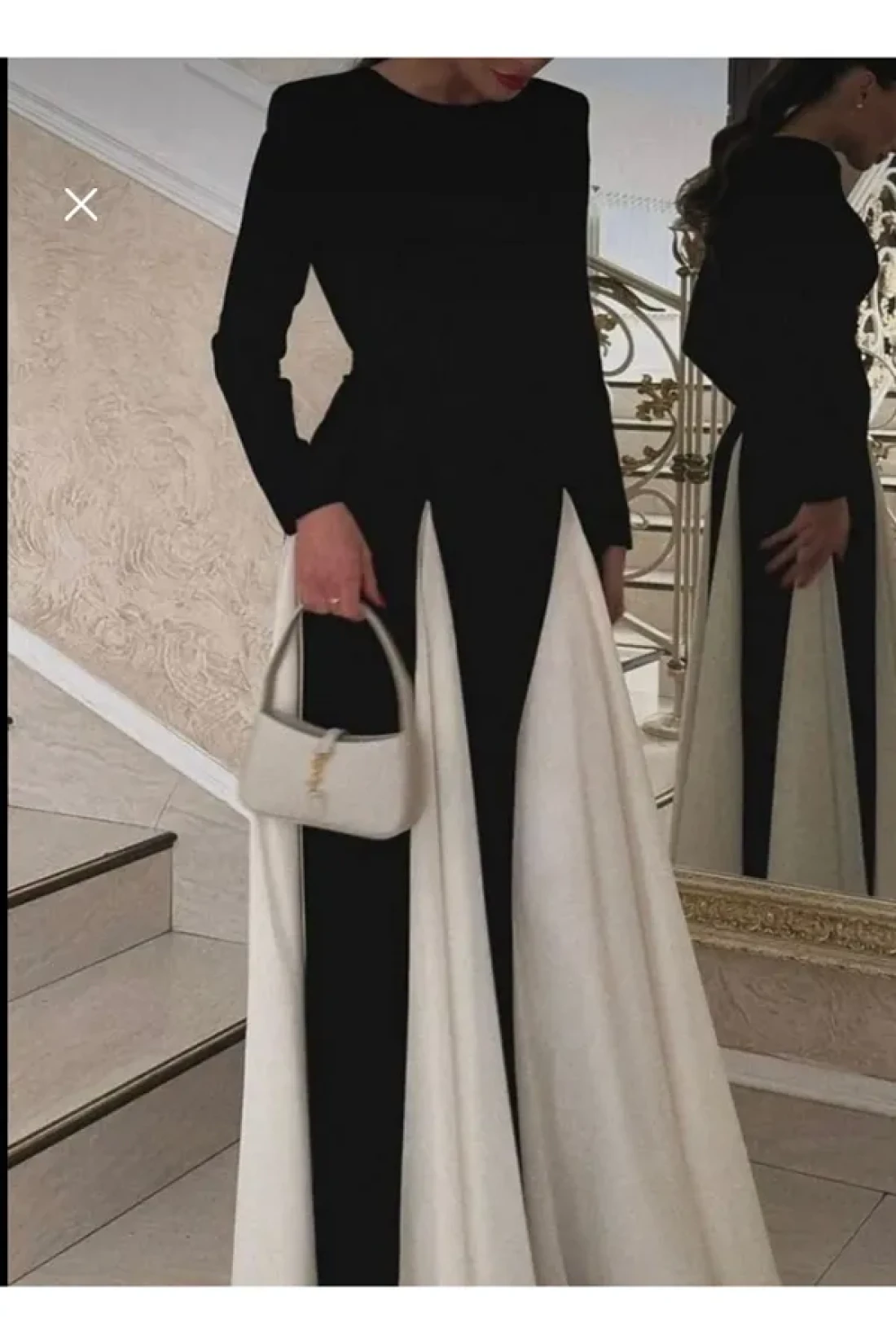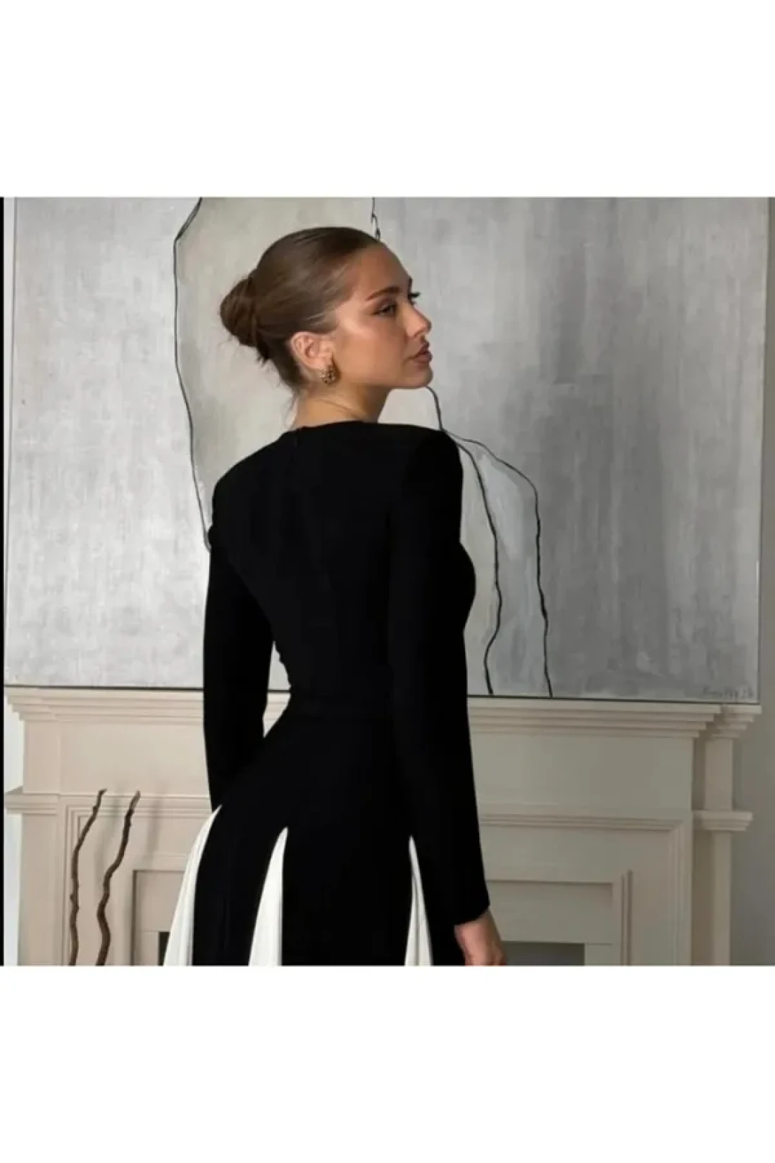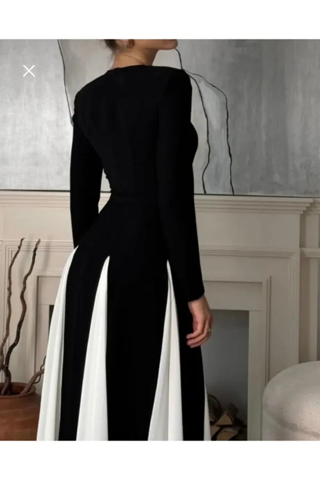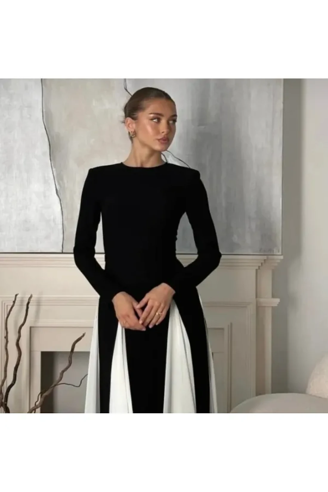 GZMBUTİK Women's Black and White Princess Cut Skirt Fluffy Long Dress