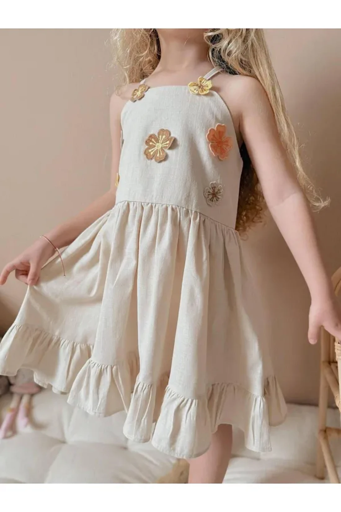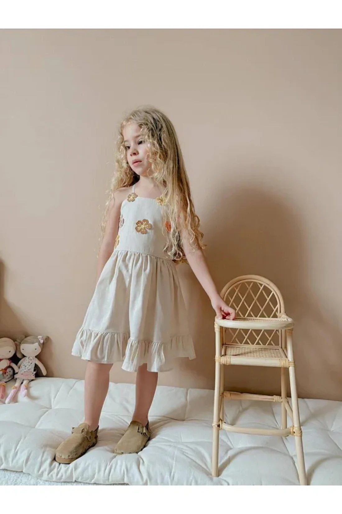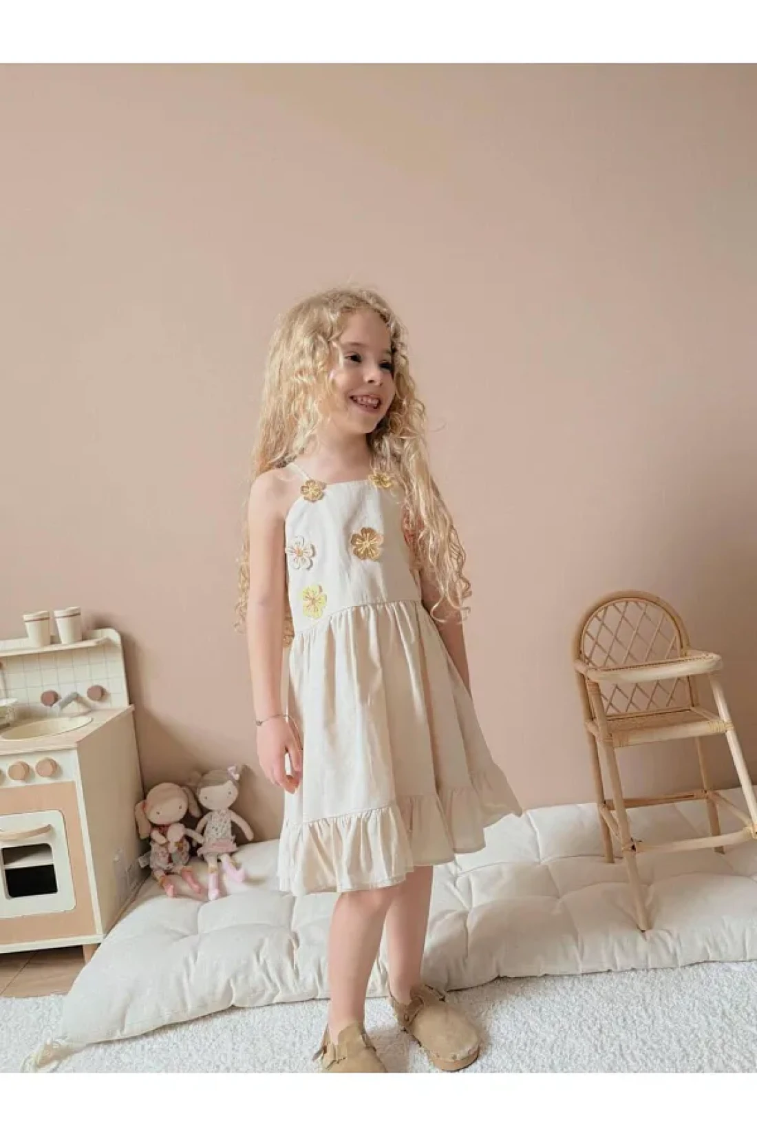 - strap girl dress decorated with floral embroidery details, reflecting the energy of summer.