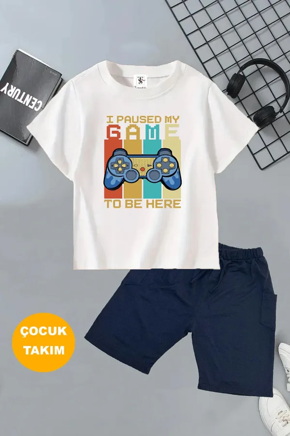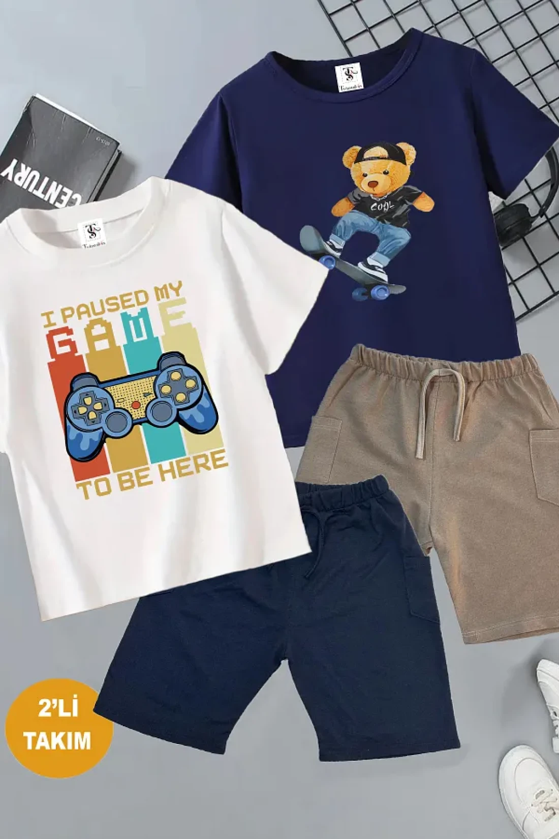 twins tailors Game Console and Teddy Printed 2 Pcs Summer T-Shirt-Shorts Kids Set