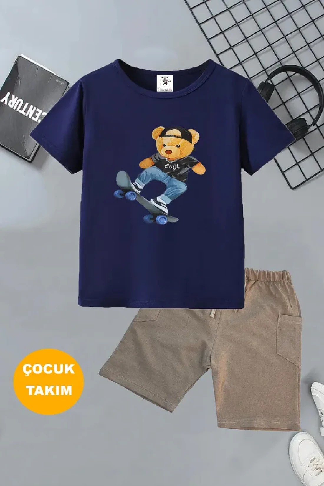 - game console and Printed design with teddy 2 pieces of t-shirt-shorts set that children can wear comfortably in summer.