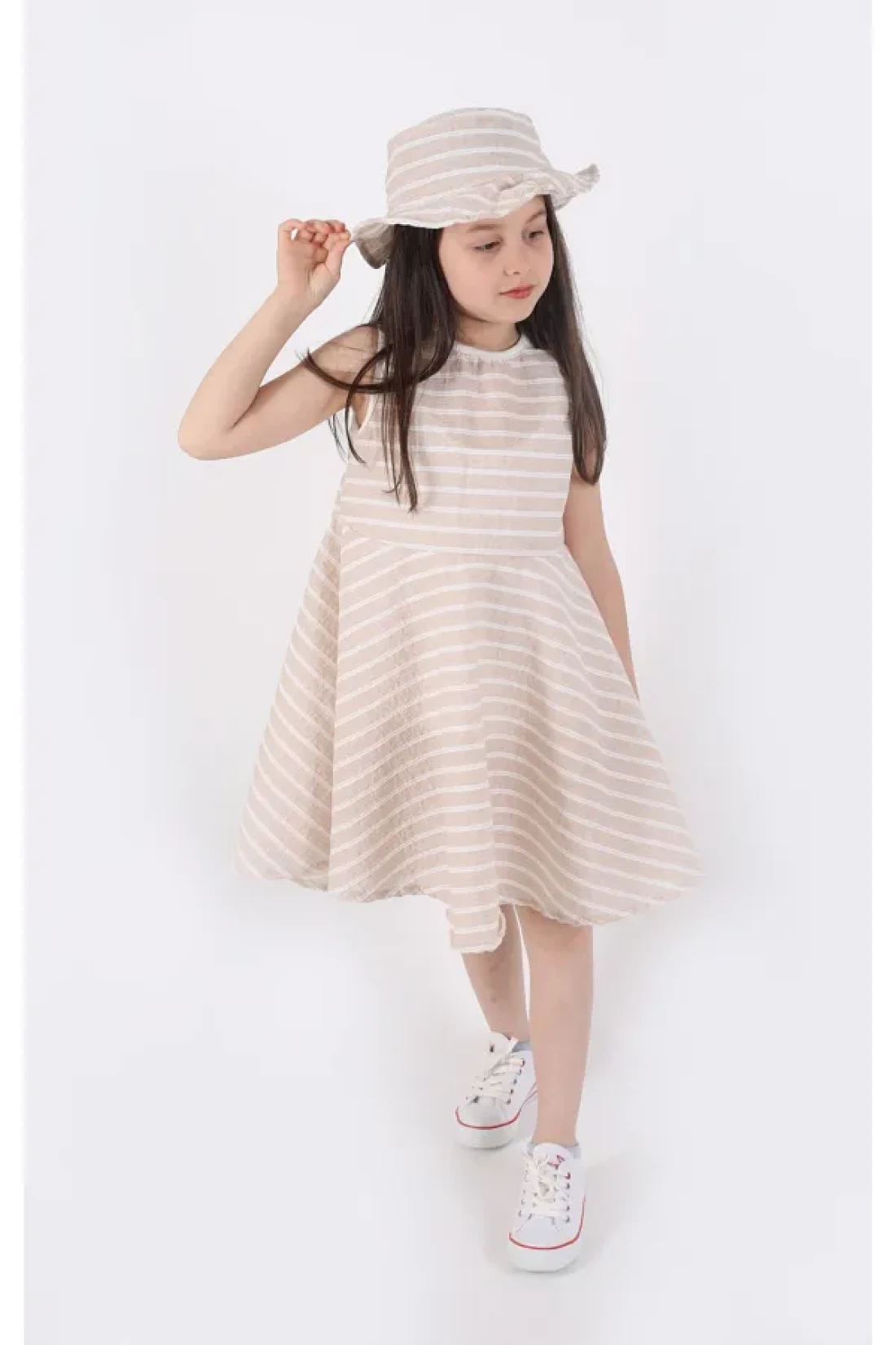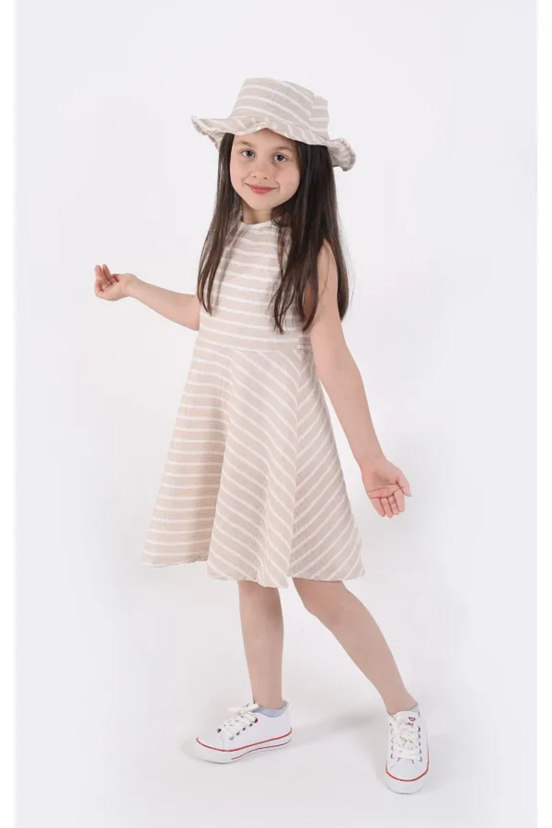 aden kids Girls Striped Summer Dress and Hat Set 2-Piece - Ages 4-12 (Pink, Blue, Beige, Burgundy)
