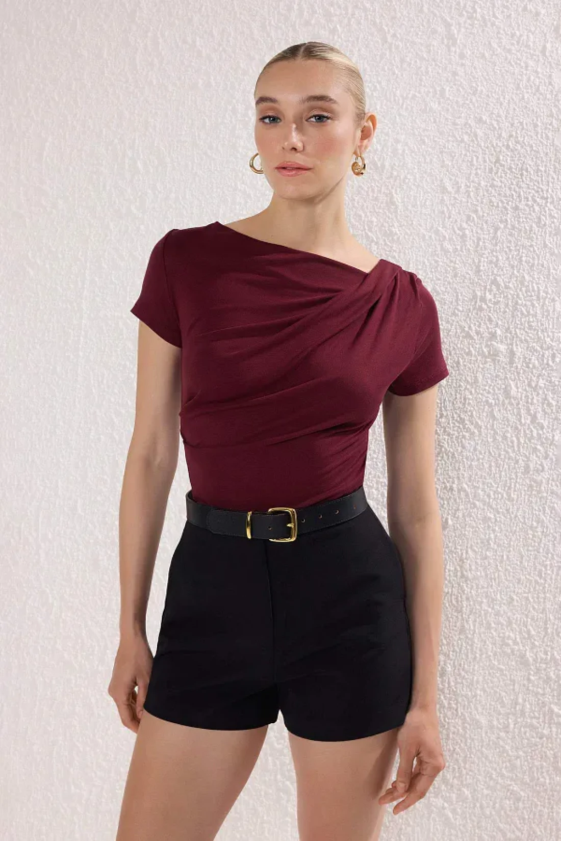 Collection Burgundy Gather/Drape Detailed Fitted/Fitted Knitted Blouse Twoss25Bz00278