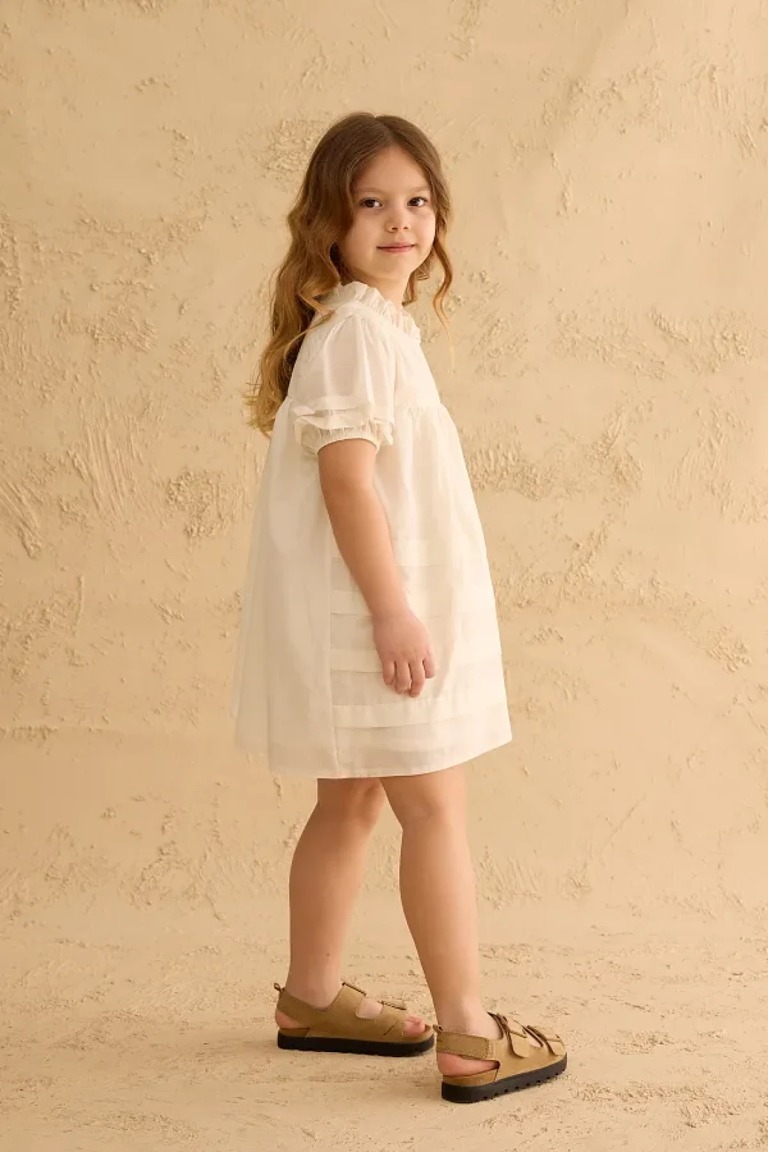 Fahhar Kids Voile Dress with Rib Detail Ecru