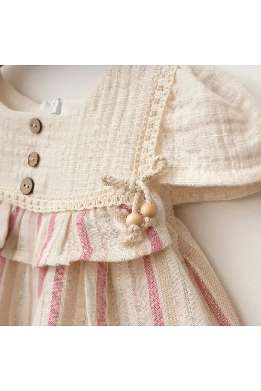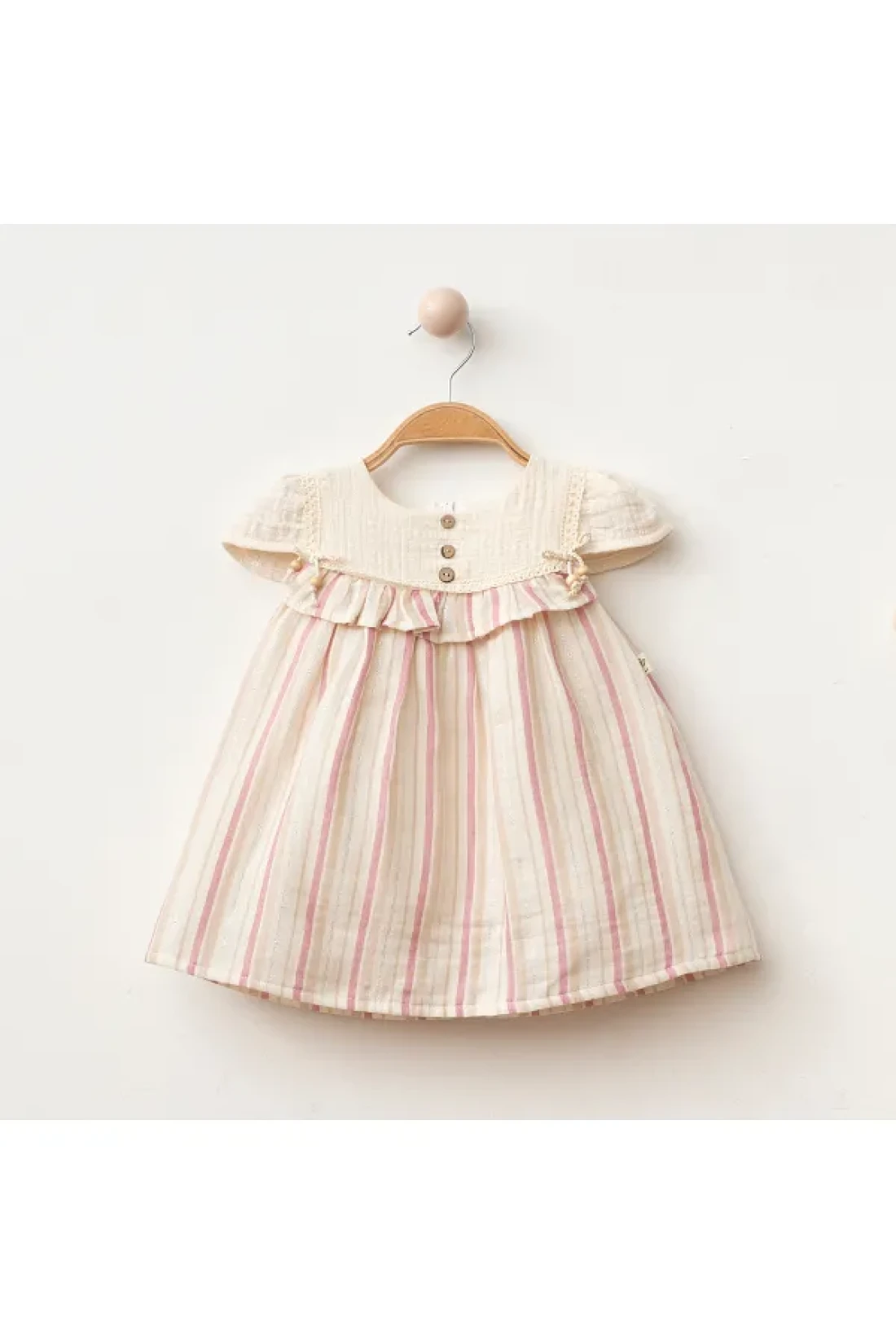 - featured by exquisite detail, this baby girl dress highlights your baby's cuteness. It is made of muslin fabric, which keeps you cool in the summer months with its lightness and breathable structure. Thanks to its lined structure, it provides comfort and does not show through. Reflects the style of little princesses with its feminine design. While its pocketlessness offers practical use, the button detail completes the elegance.