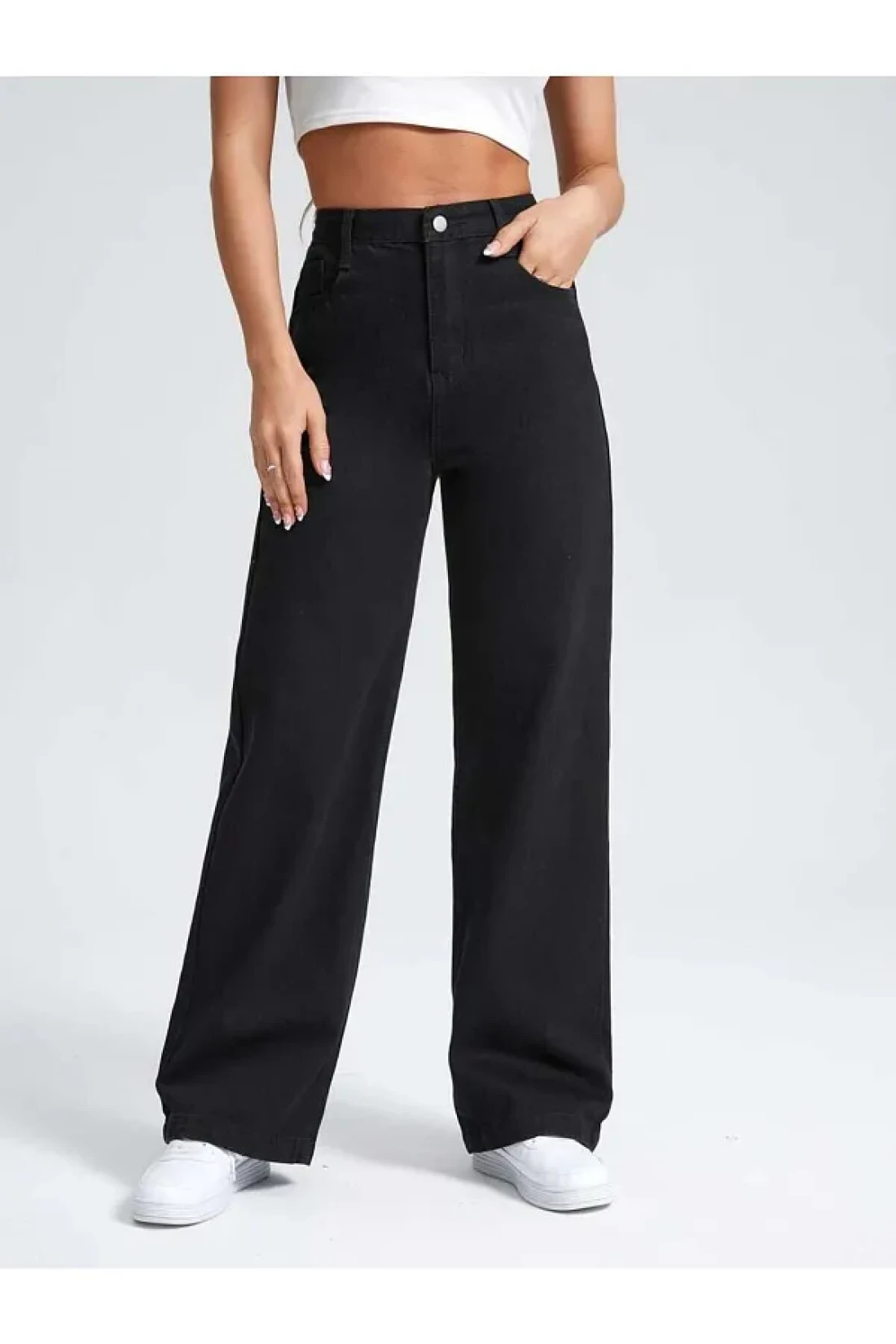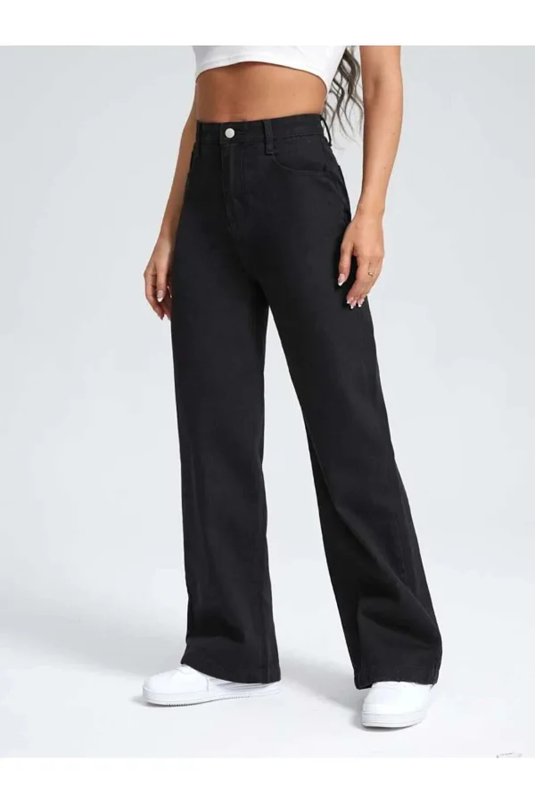 SHEVEGA Black High Waist Wide Leg Boyfrien Jeans
