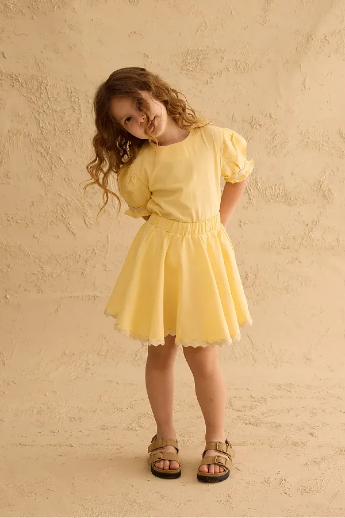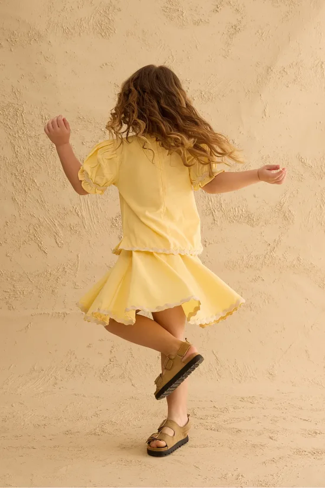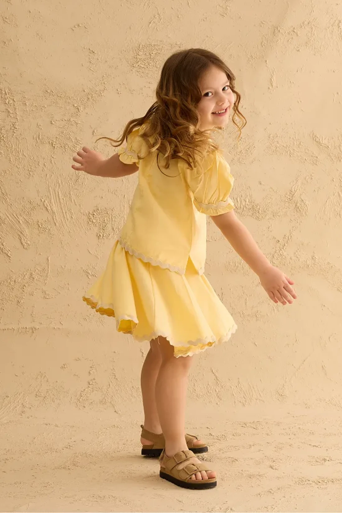 Fahhar Kids Water Stone Detailed Skirt Suit Yellow