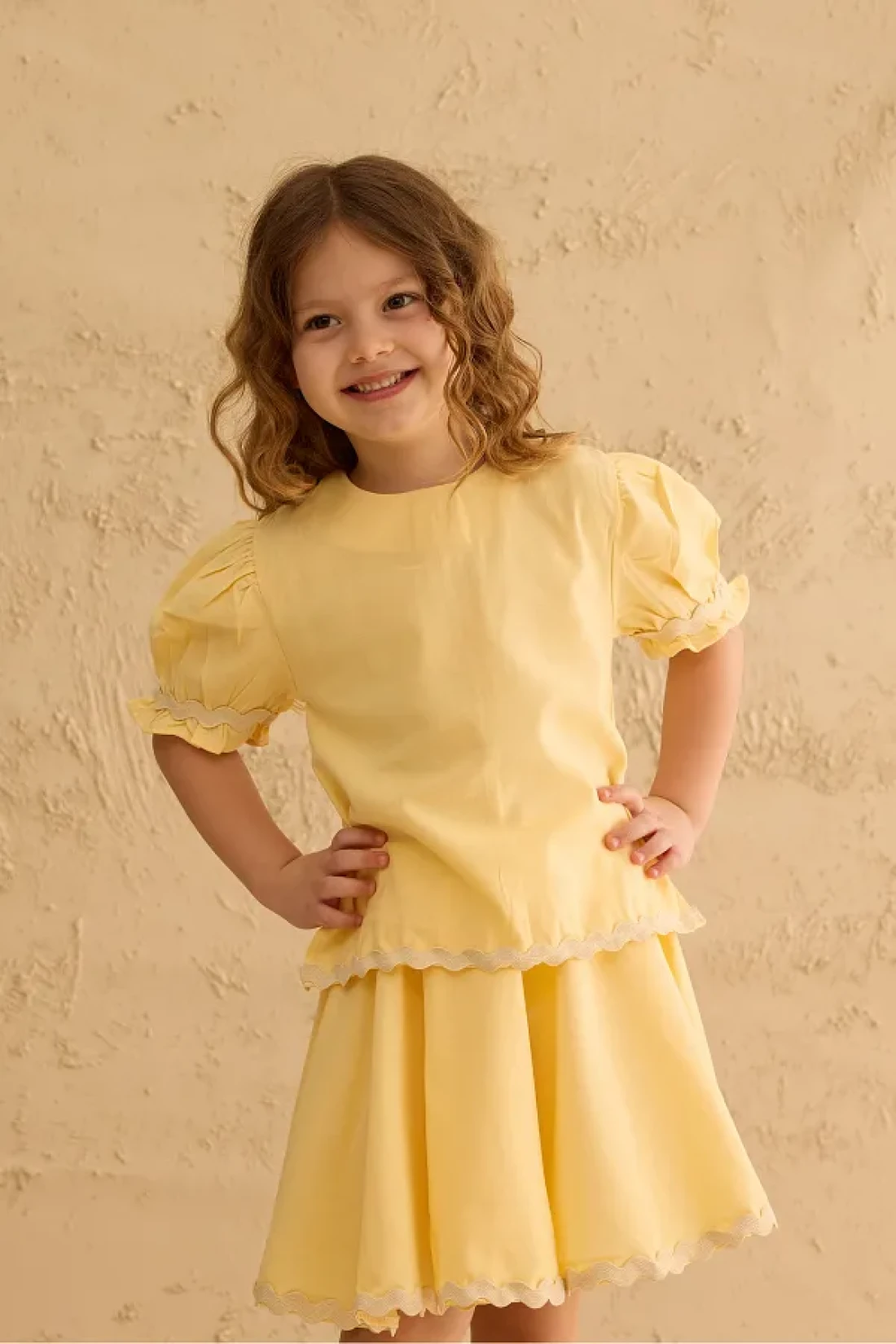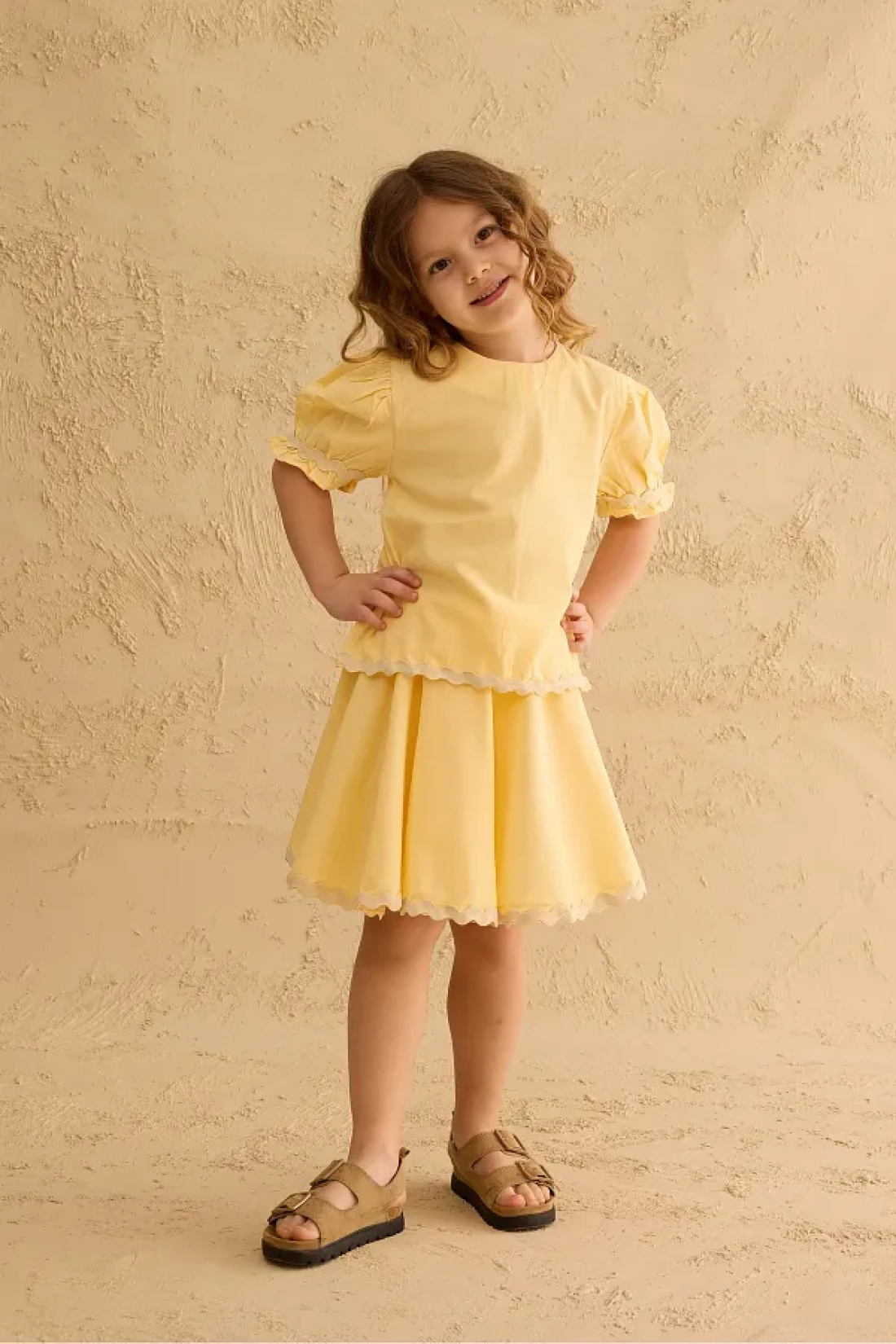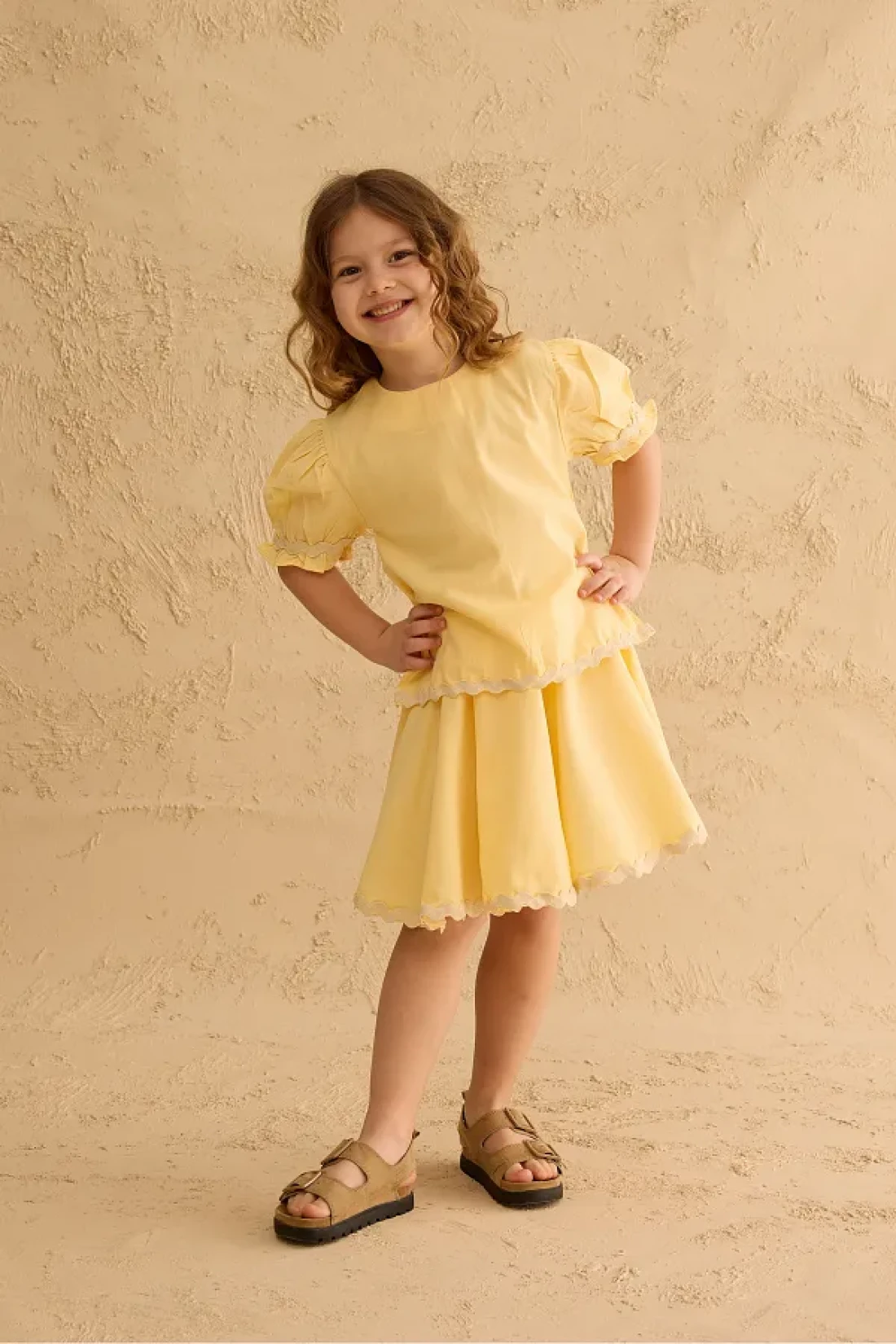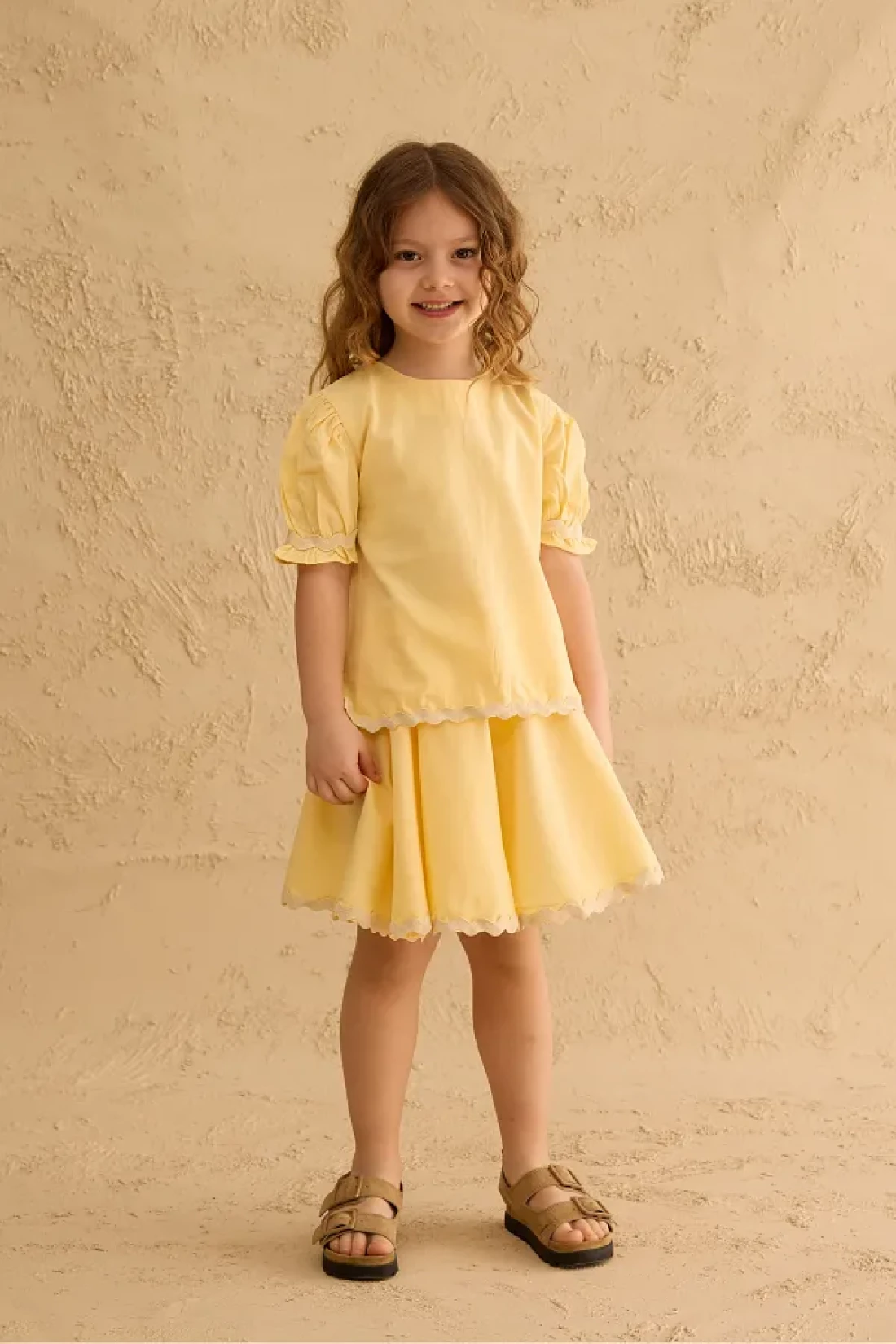 Fahhar Kids Water Stone Detailed Skirt Suit Yellow