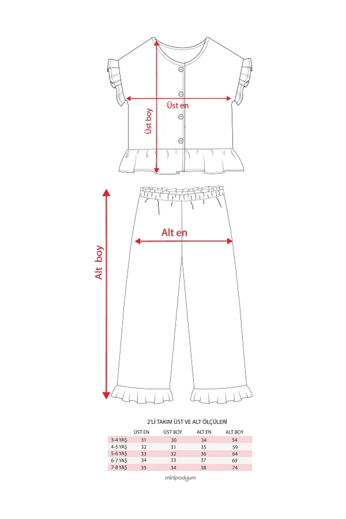 ruffle details add a cute movement to this classic design. This set, which is an excellent choice for families seeking daily elegance, is specially produced for the girl model, for the age groups of 3-4, 4-5, 5-6, 6-7 and 7-8.