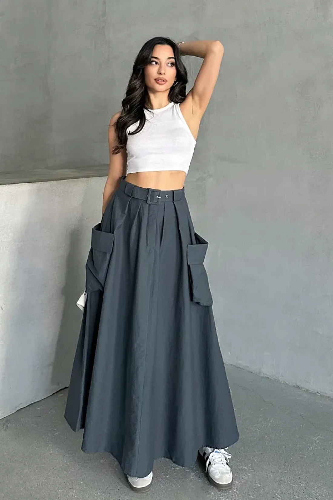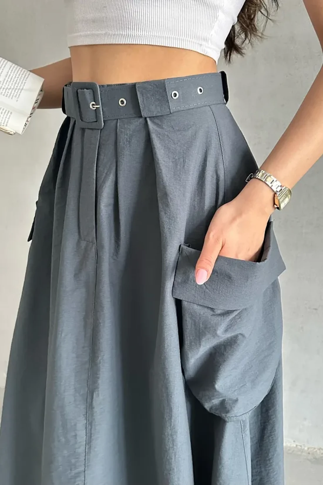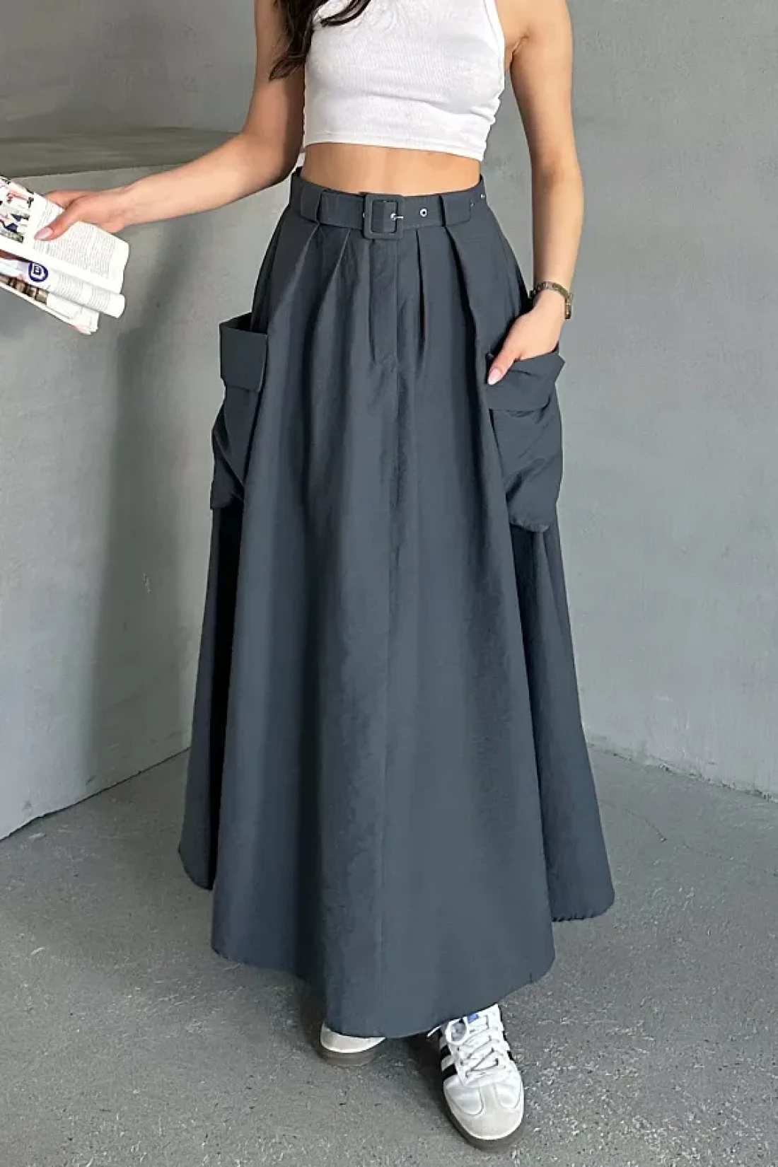 MD trend Women's Belted Big Pocket Detailed Skirt