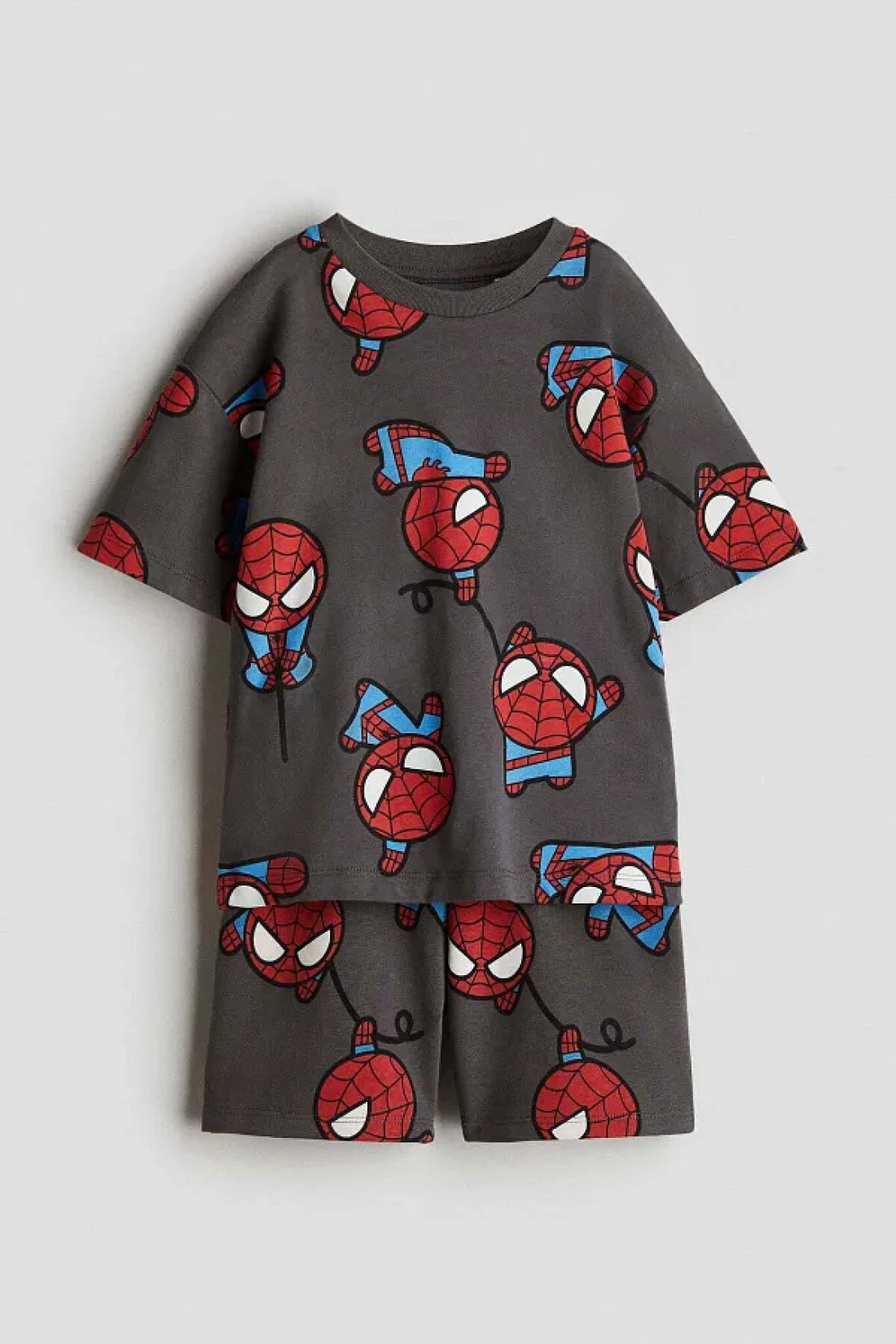 Matching set with a T-shirt and a pair of shorts in soft fabric with print motifs.