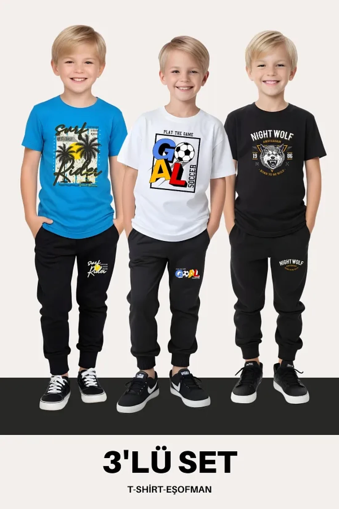 FYK KİDS Boy's 3-Piece T-Shirt-Training Suits