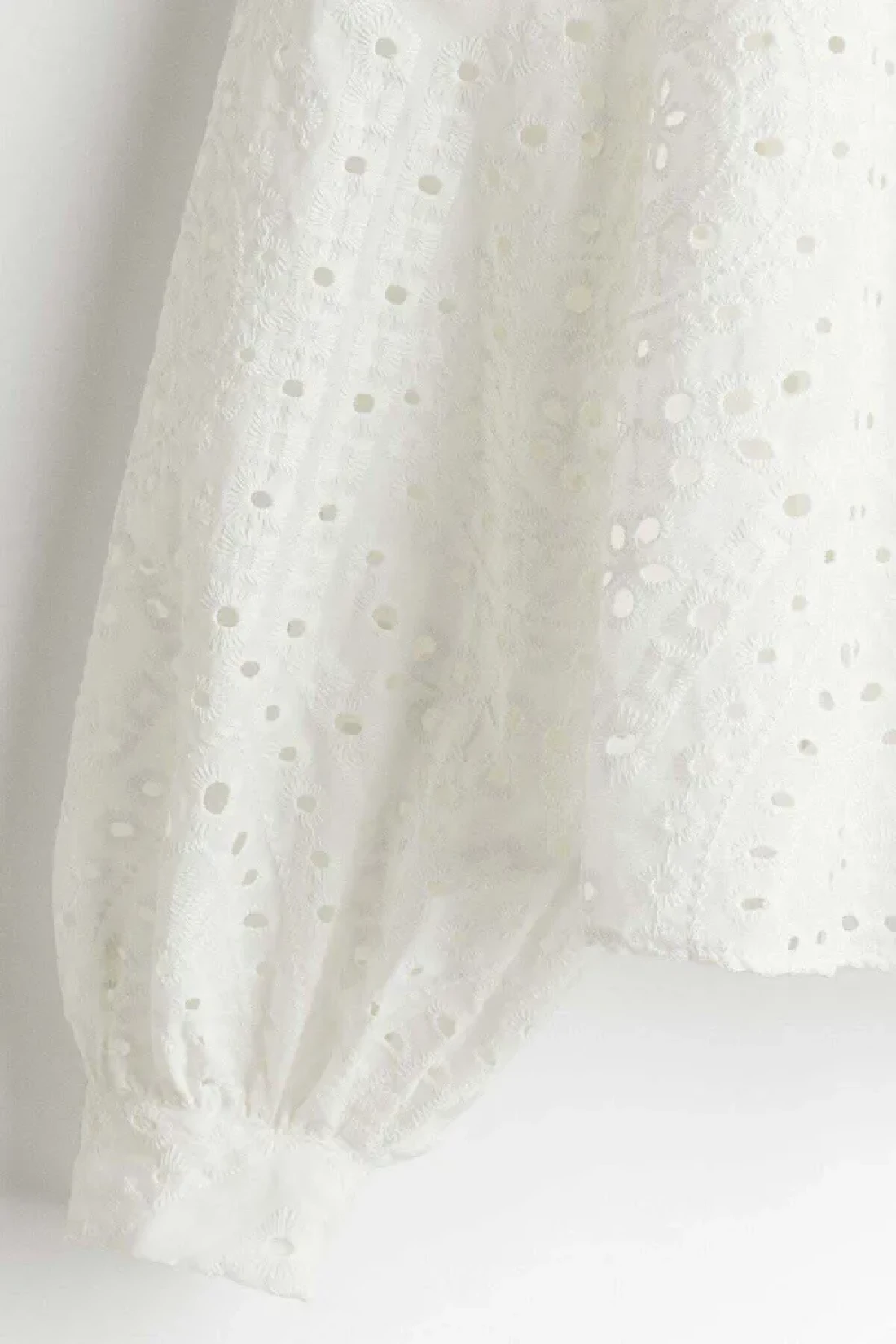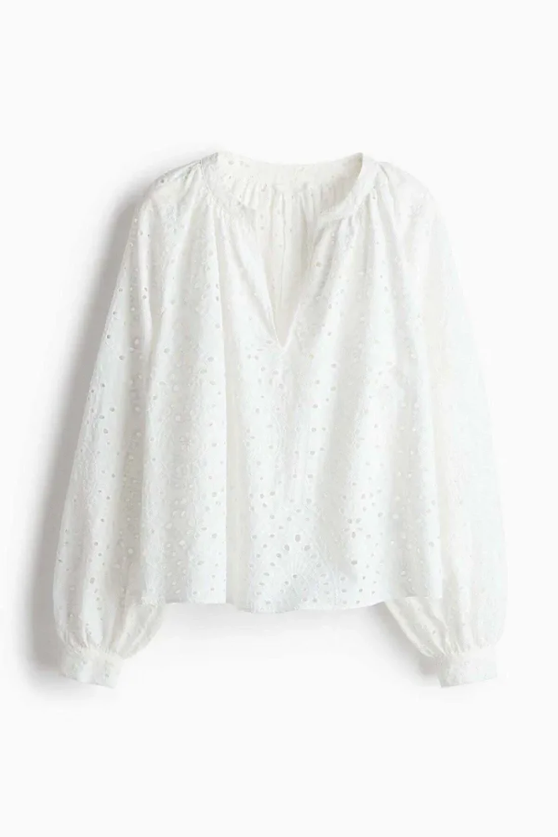 Loose-fit blouse in a cotton weave with all-over broderie anglaise.