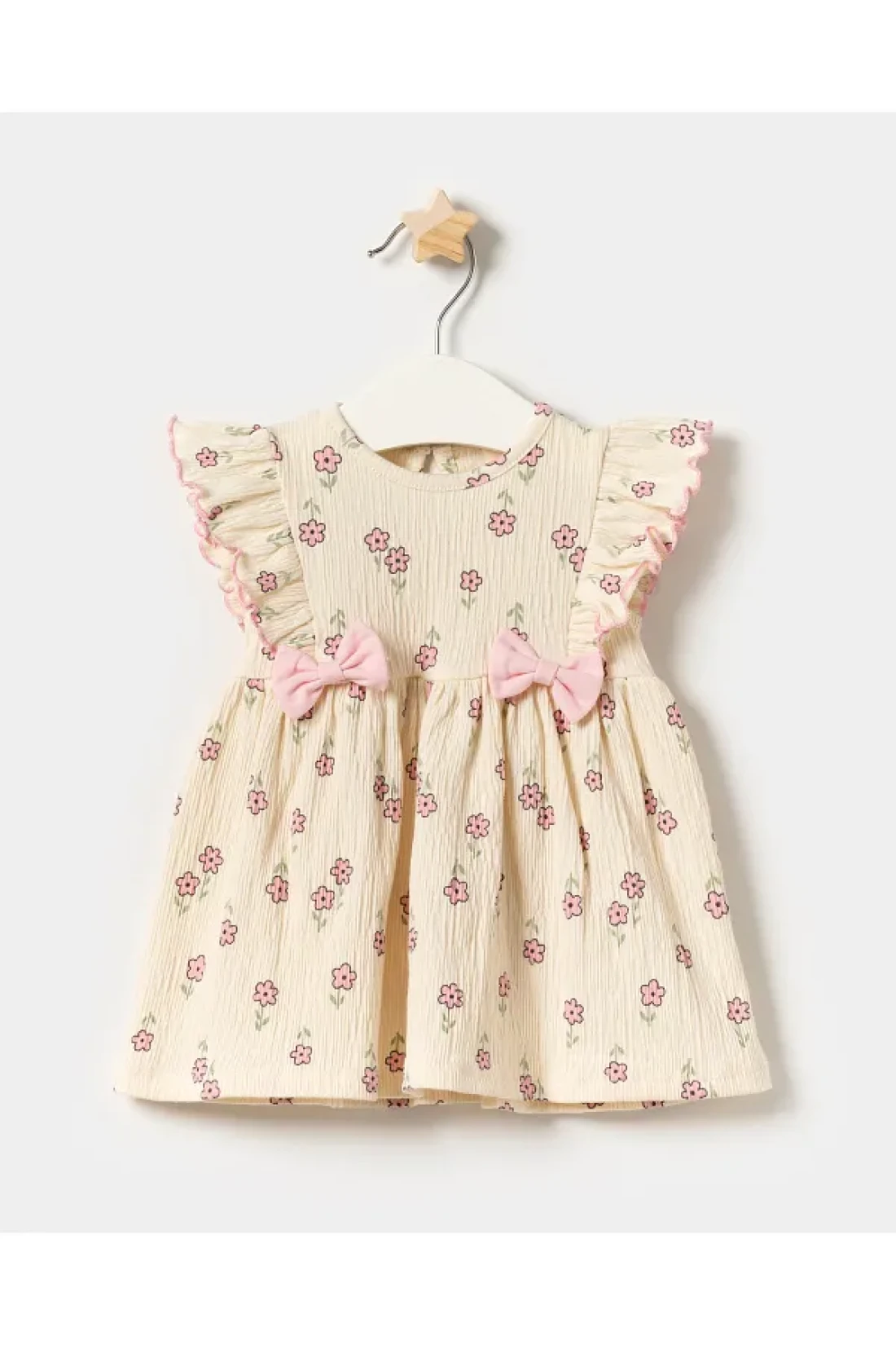Minipodyum Baby Girl Bow Detailed Floral Knitted Muslin Summer Dress