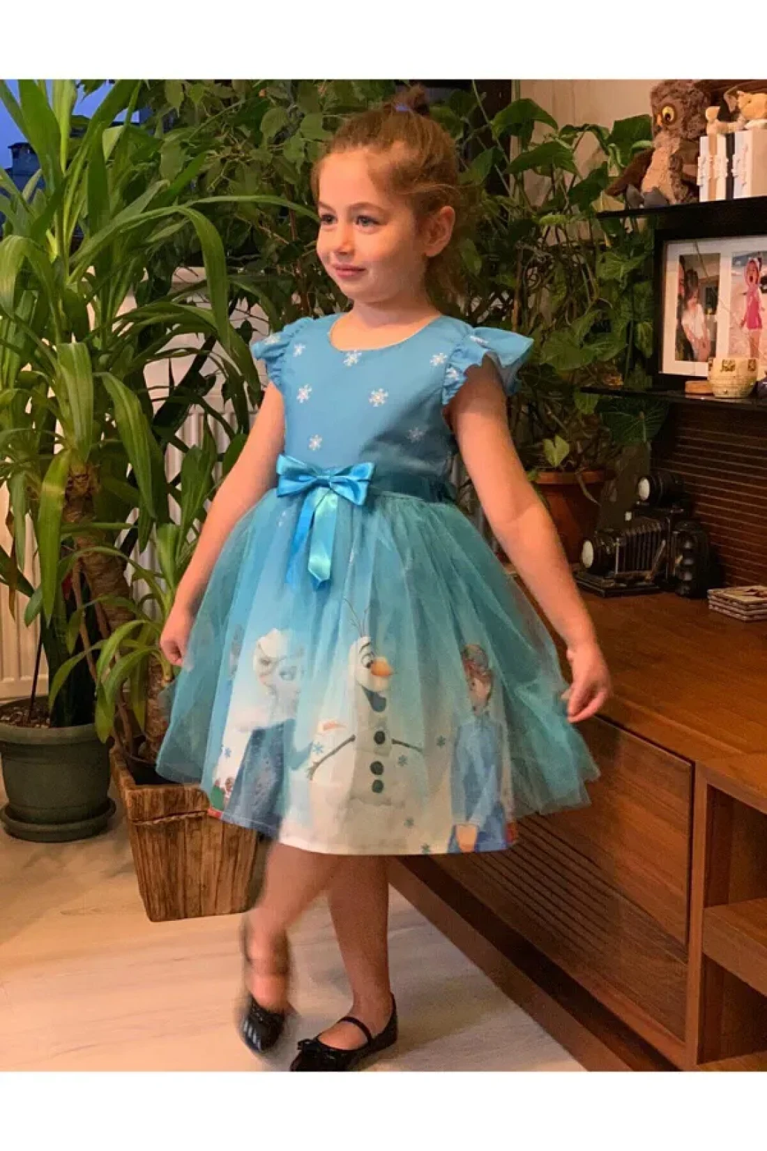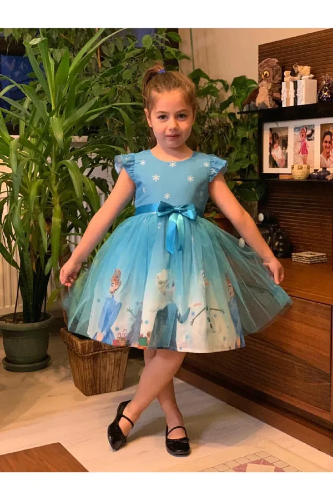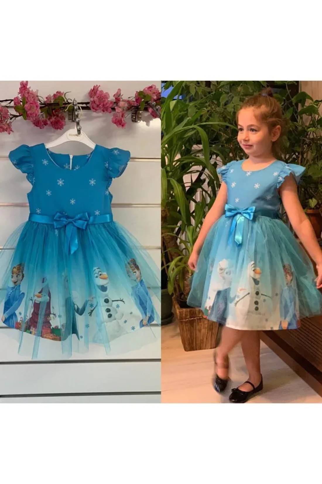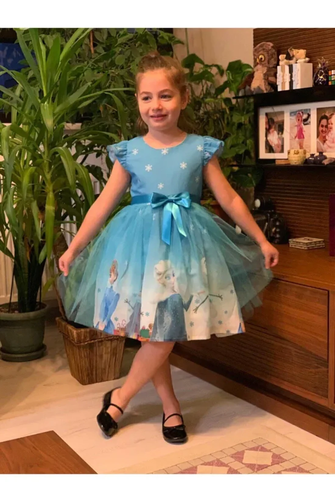 frozen snow country arendelle queen elsa printed dress, which is the favorite character of little princesses, digital printing on crepe fabric, the support tulle under the skirt makes the skirt look more fluffy and beautiful.
