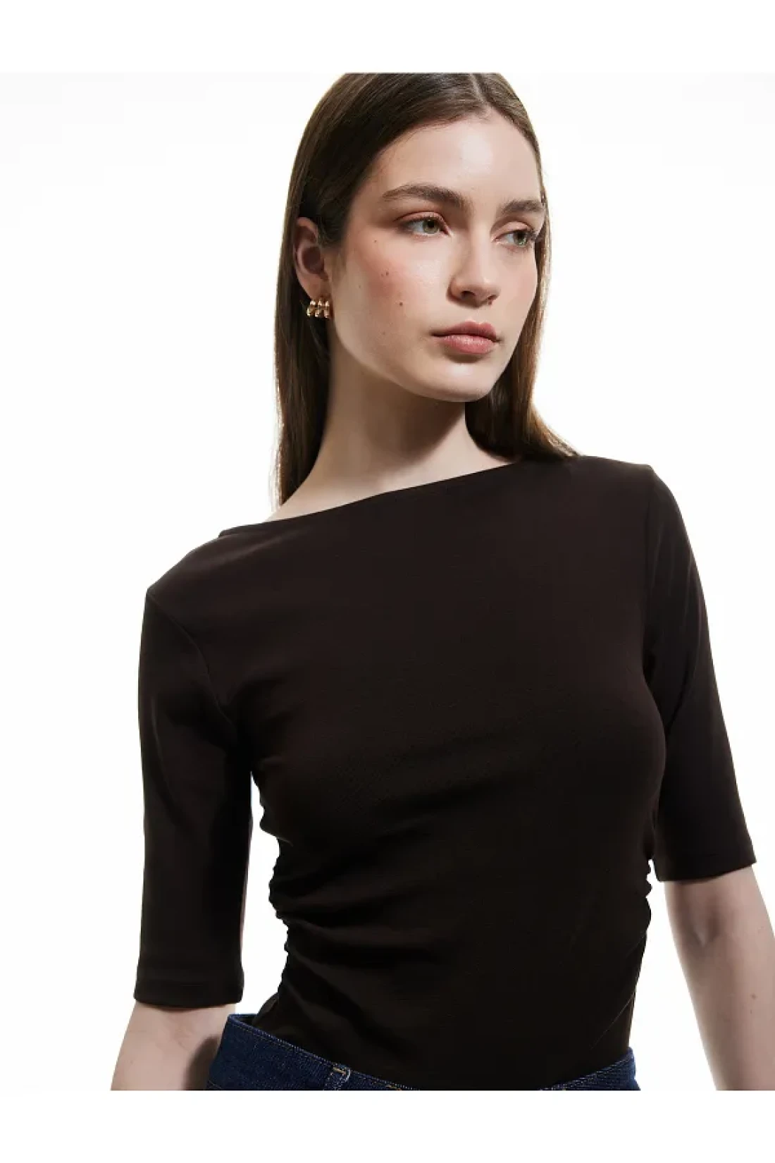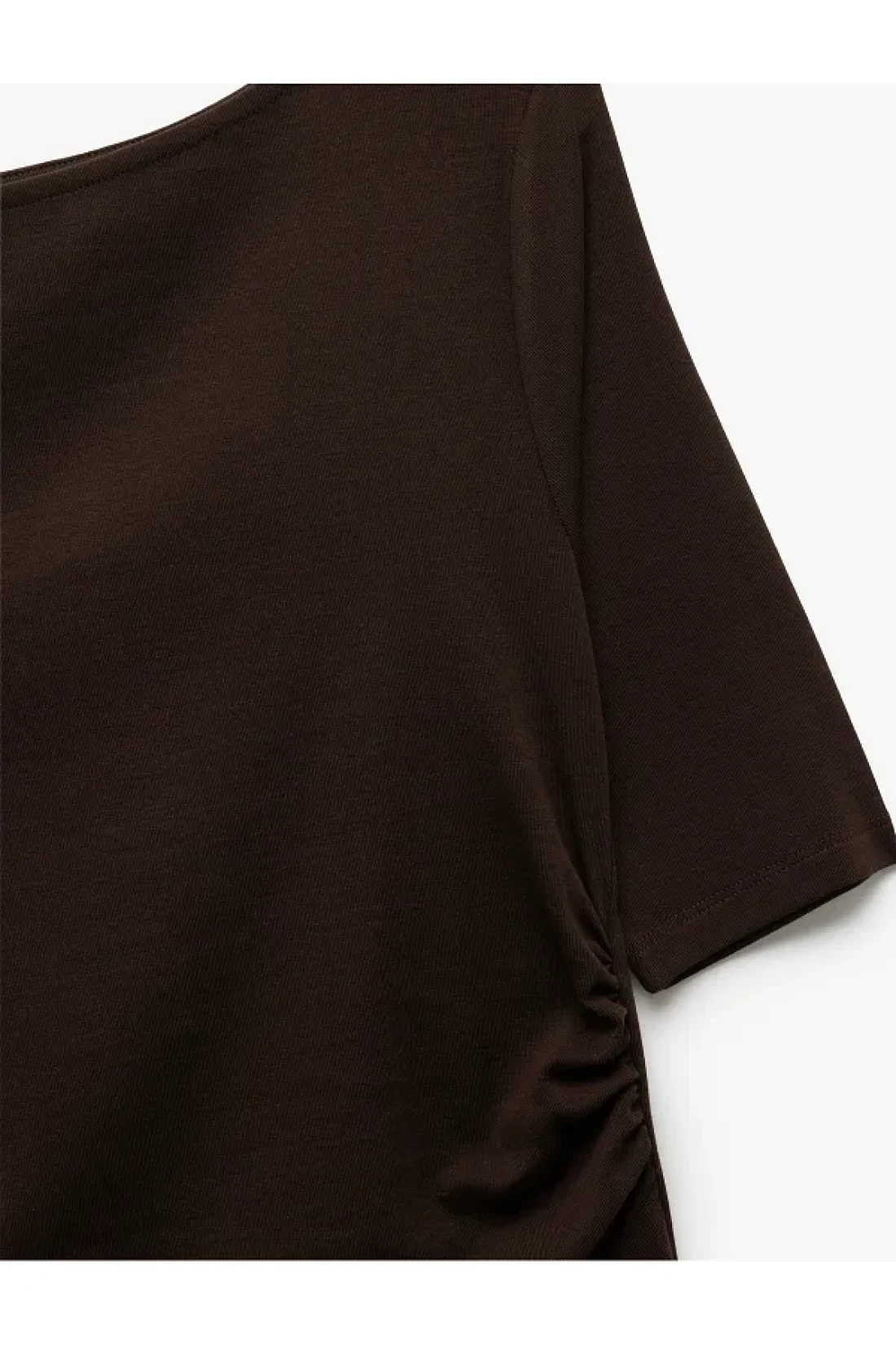Koton Drape Detailed Cotton Short Sleeve Round Ballerina Neck T-Shirt