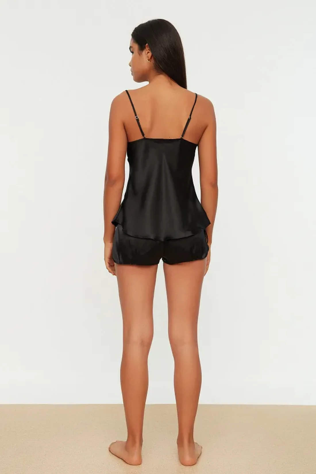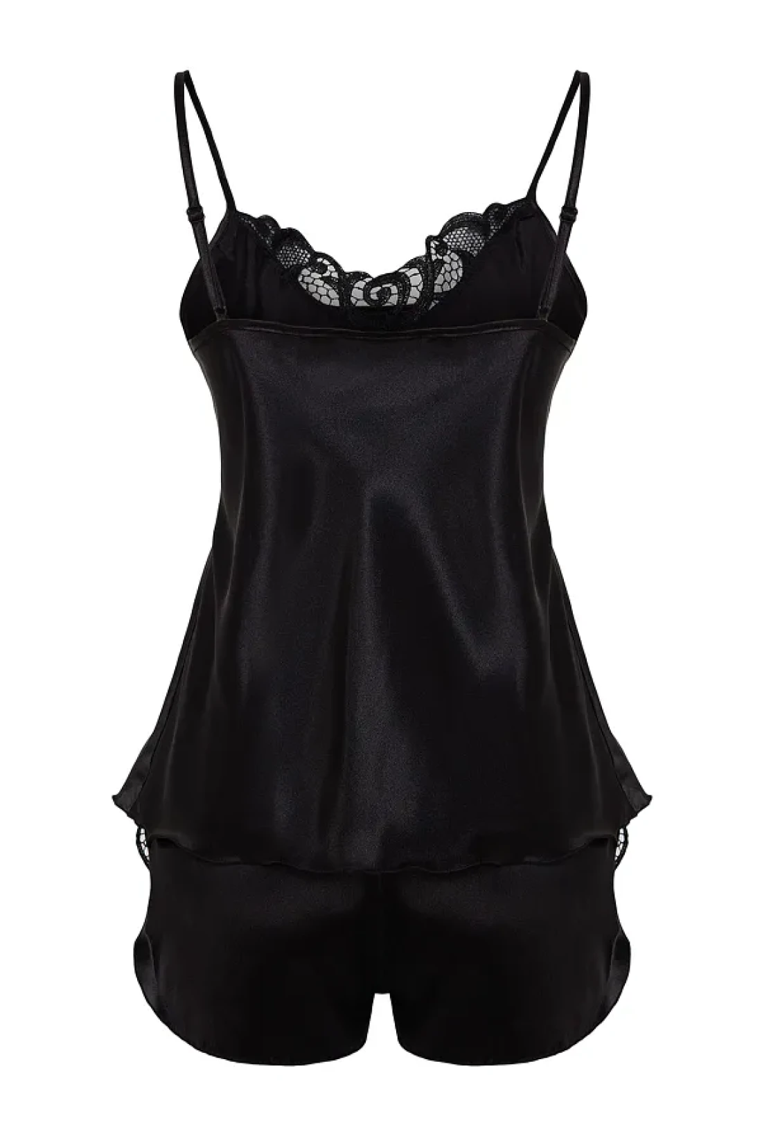 Collection Satin Woven Black Lace Shorts Pajamas Set - Thmaw21Pt0843
