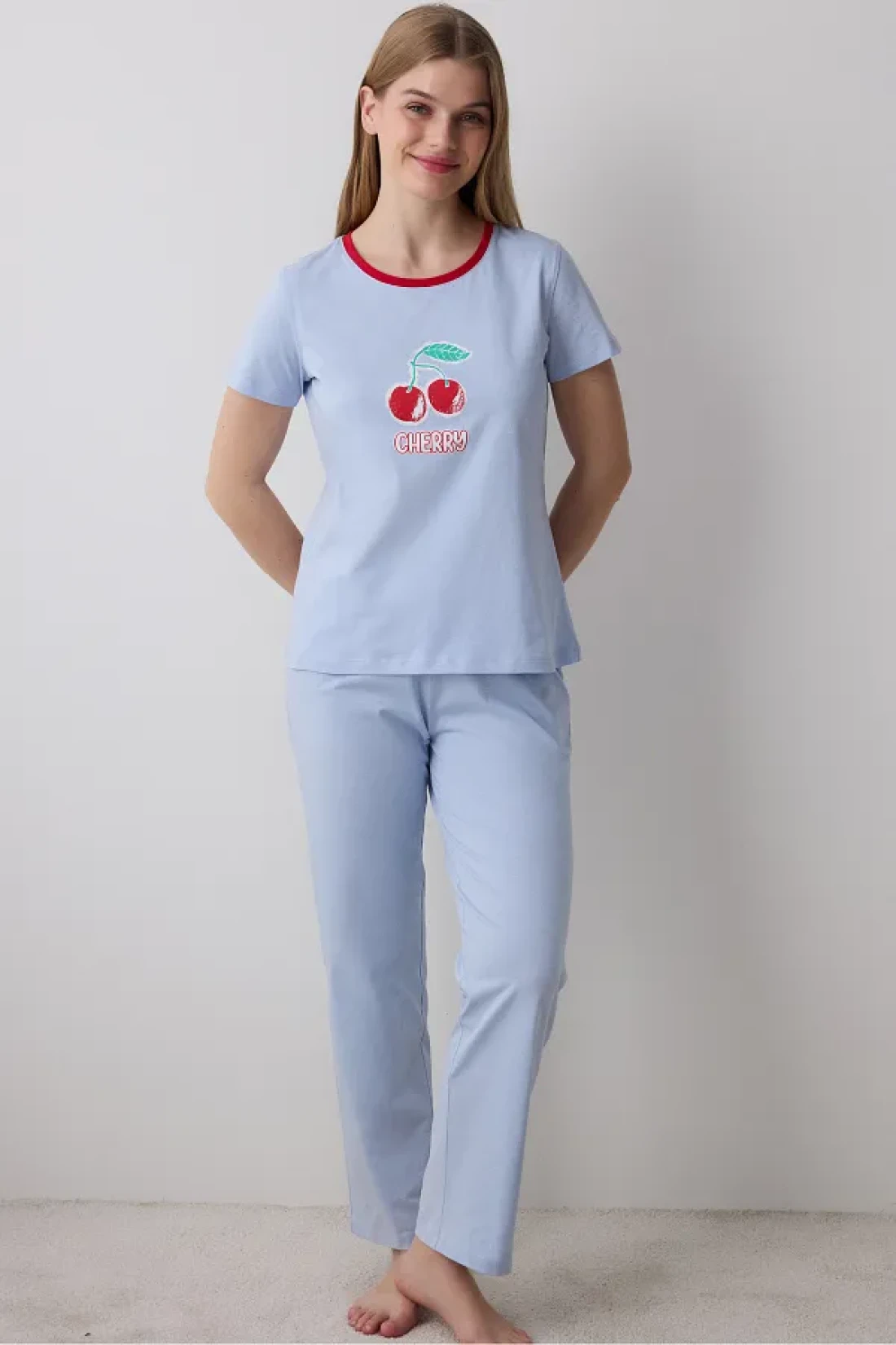 Penti Cherry Pants Light Blue Pajama Set