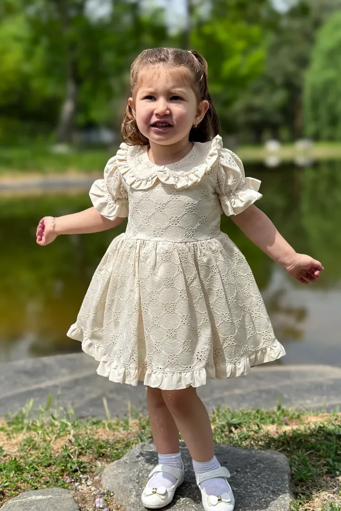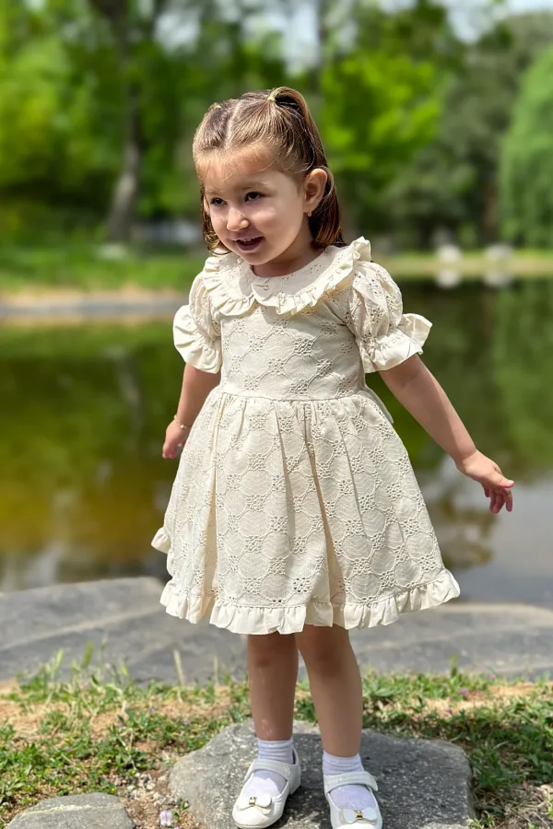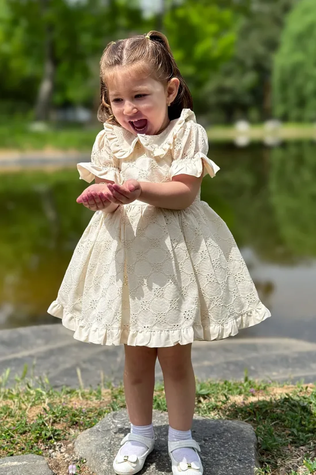 Summer floral print short sleeve girls' special occasion dress: this dress is designed with a floral print fabric and cute bow details that will highlight your little princess's elegance and cuteness on any special occasion in summer. With its light and comfortable structure, it ensures your baby's comfort while completing its elegance on special days.