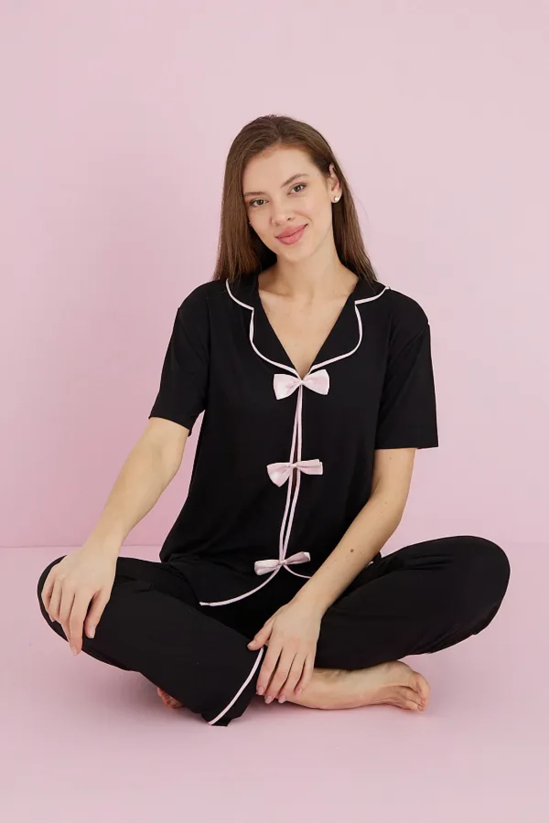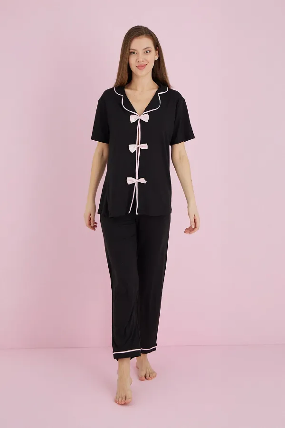 Fullamoda Bow Collar Shirt Pajama Set