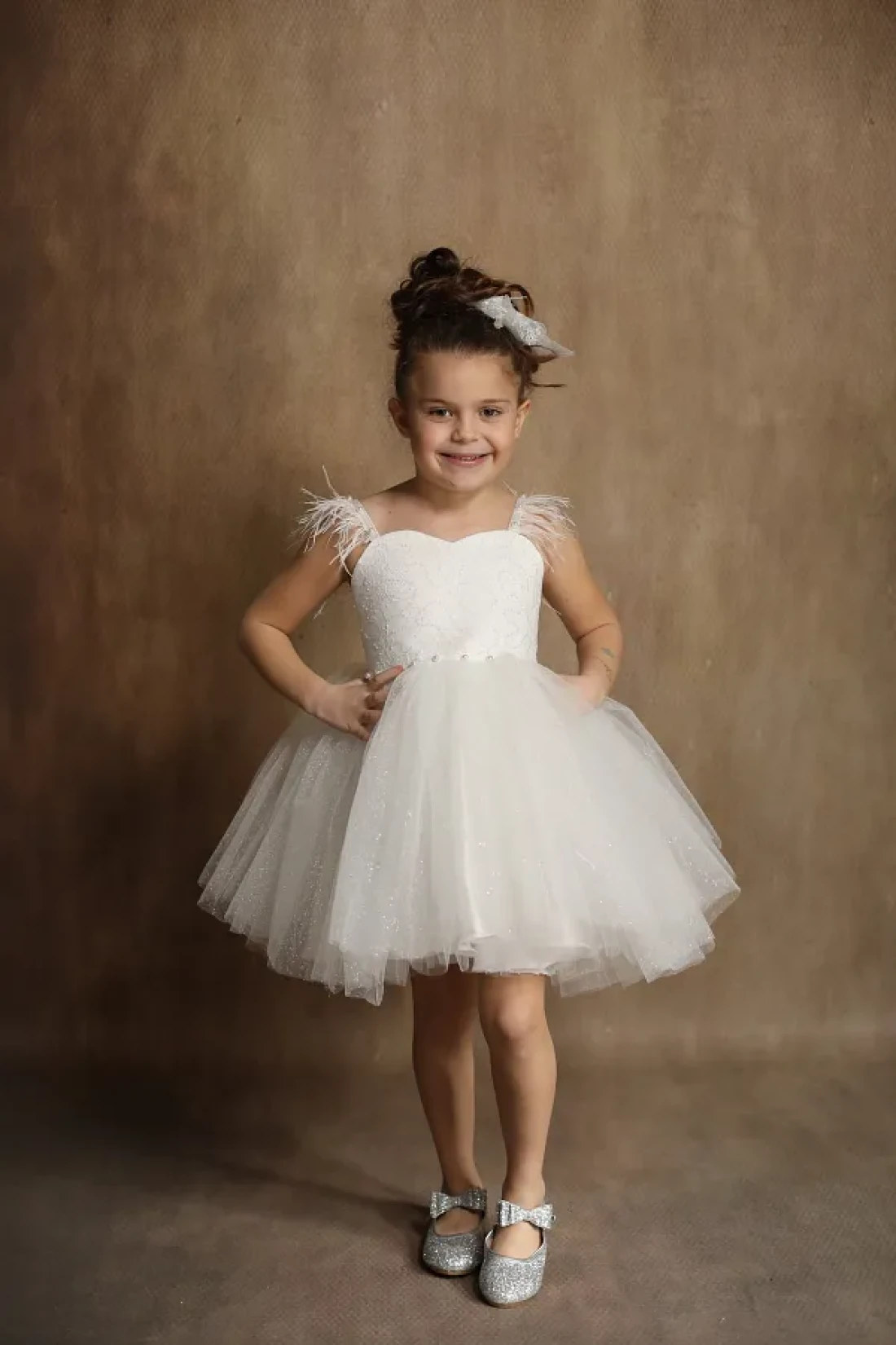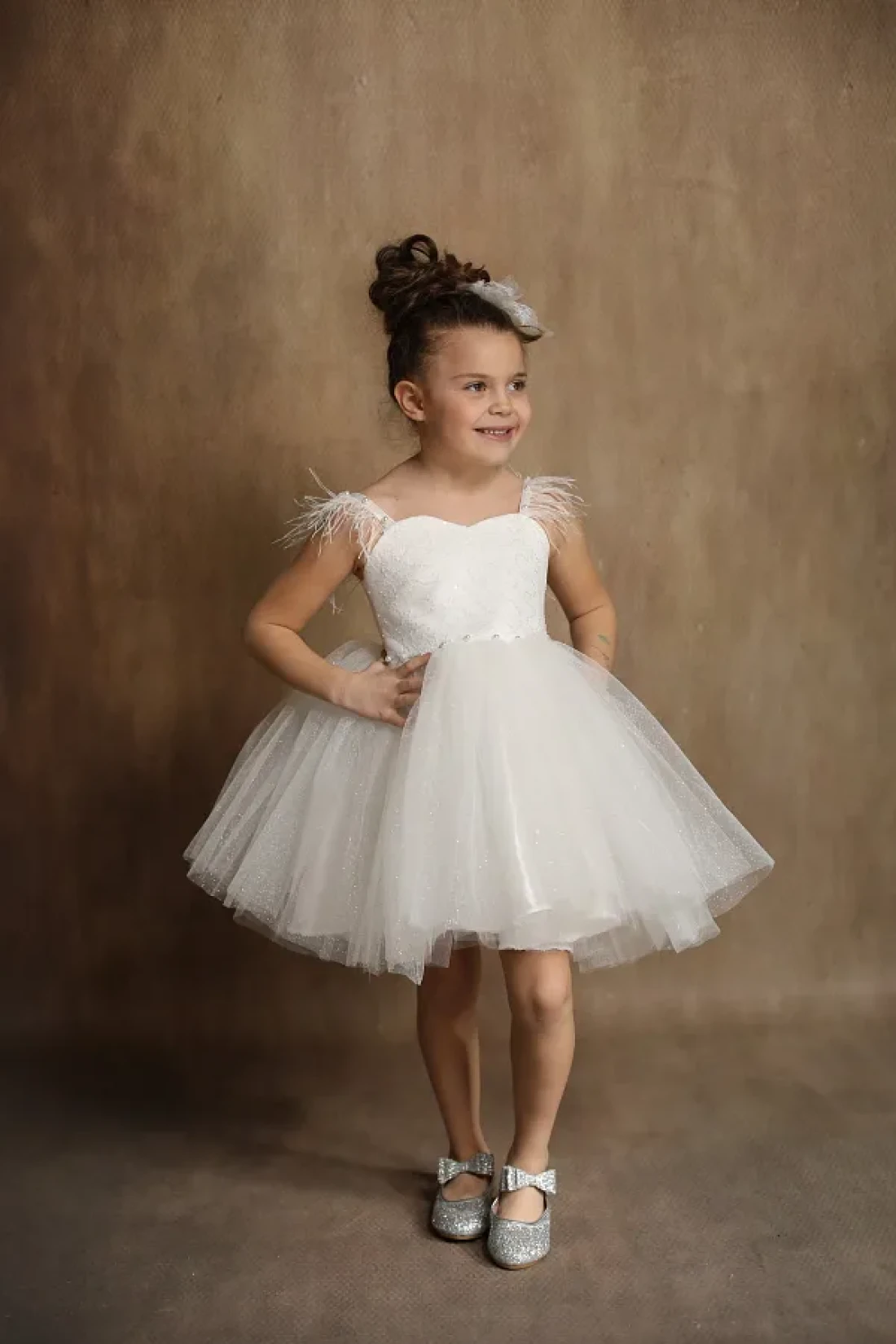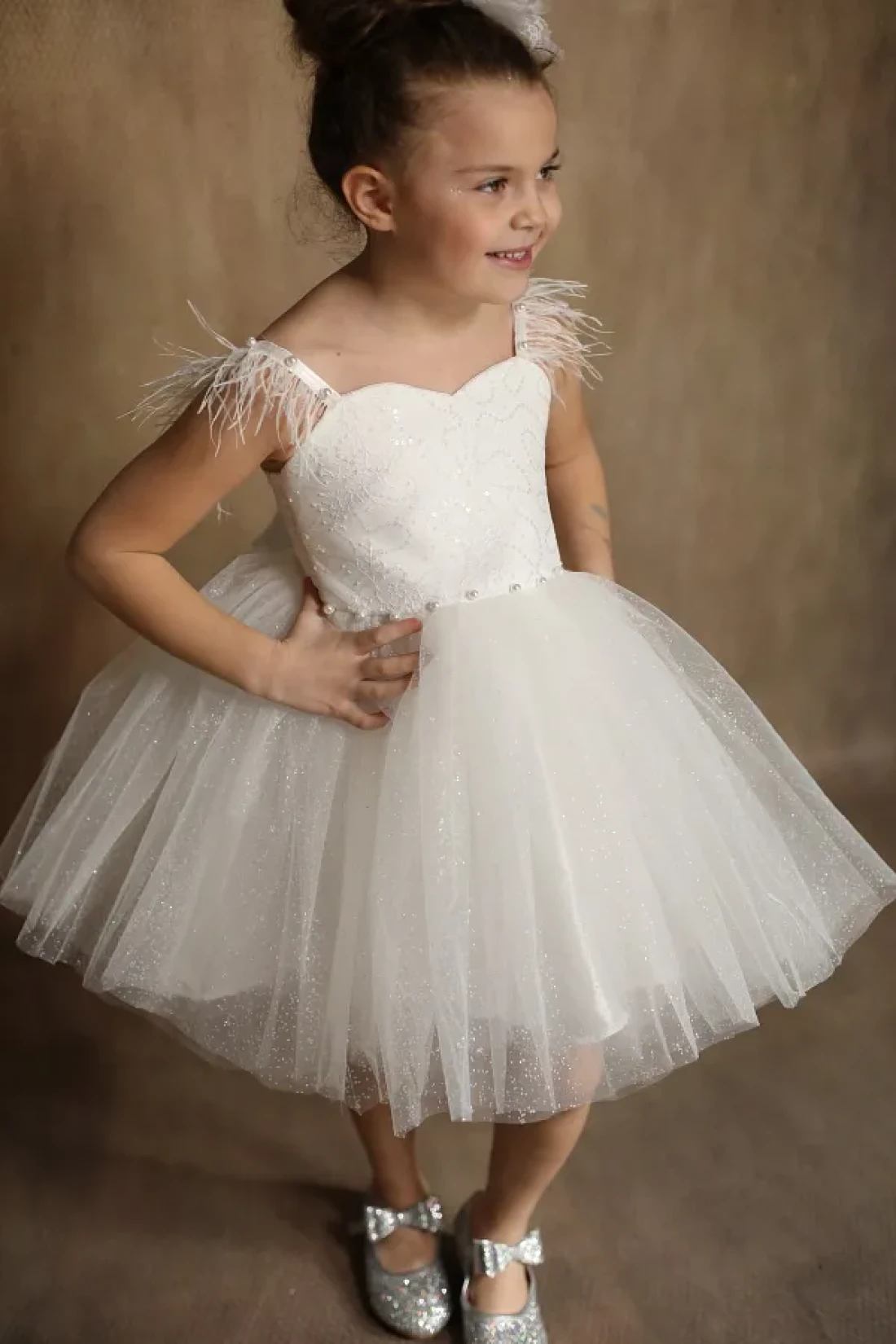 A dress adorned with elegant lace details, highlighting the elegance of children on their special days. It offers comfortable use with its regular mold design that allows them to move comfortably. 0