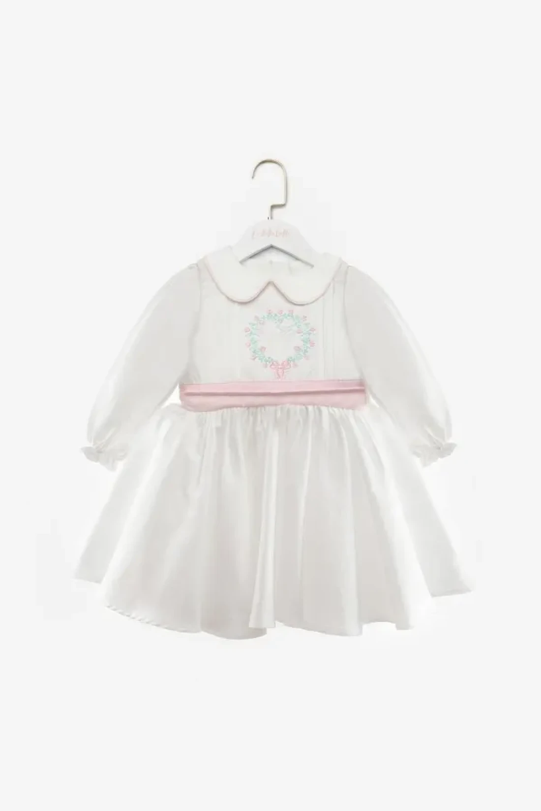 Le Mabelle White Long Sleeve Flower Embroidered Girl's Dress - Rina