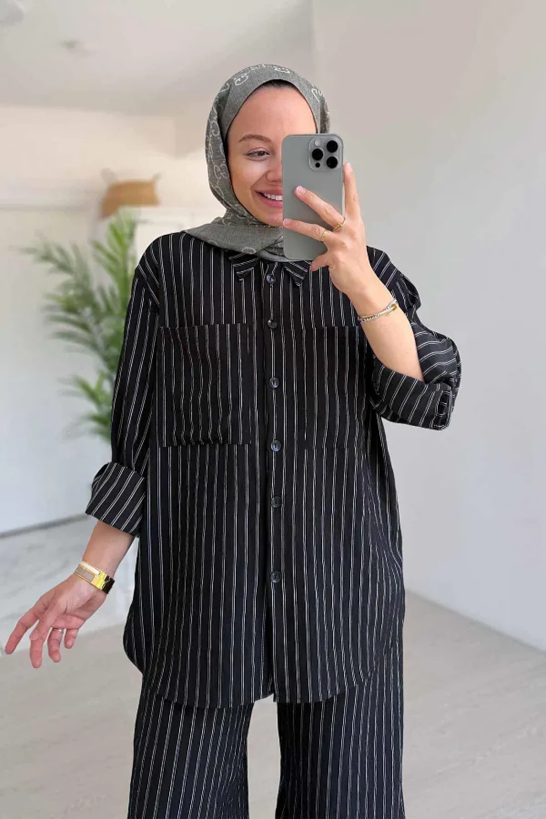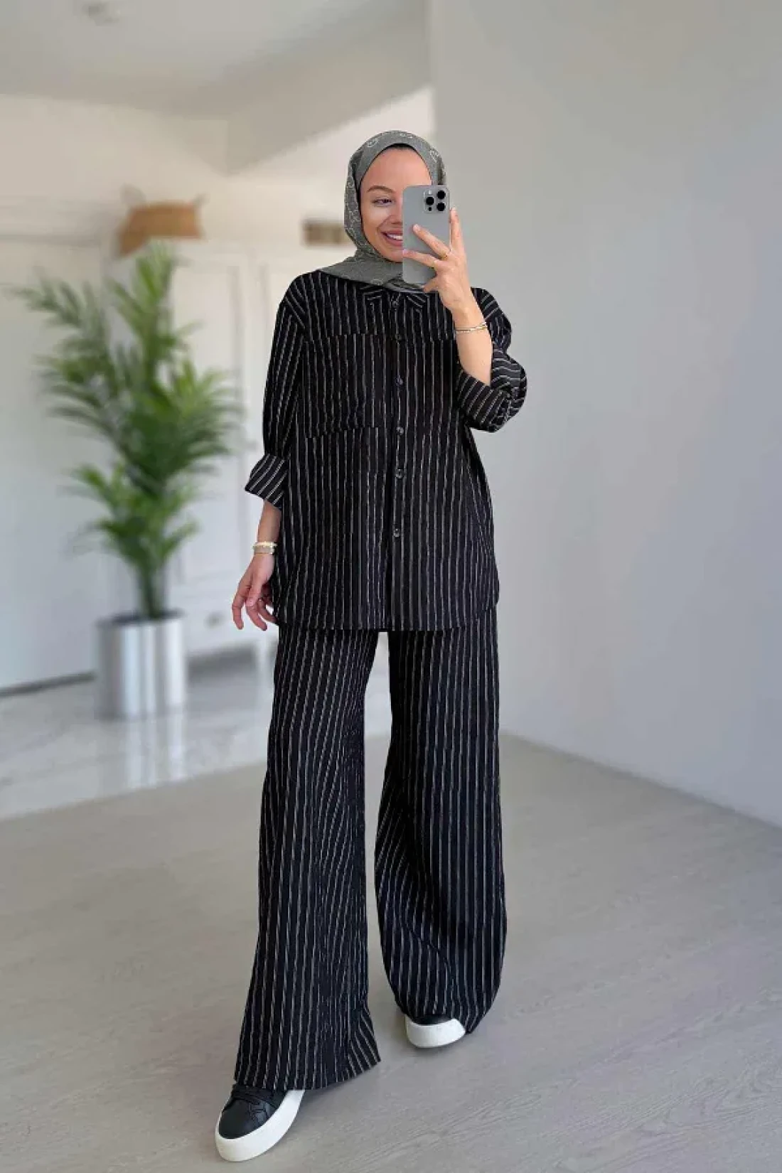 Ka Hijab Wide Leg Striped Suit - Black