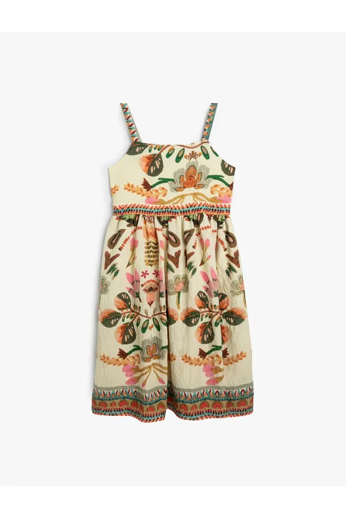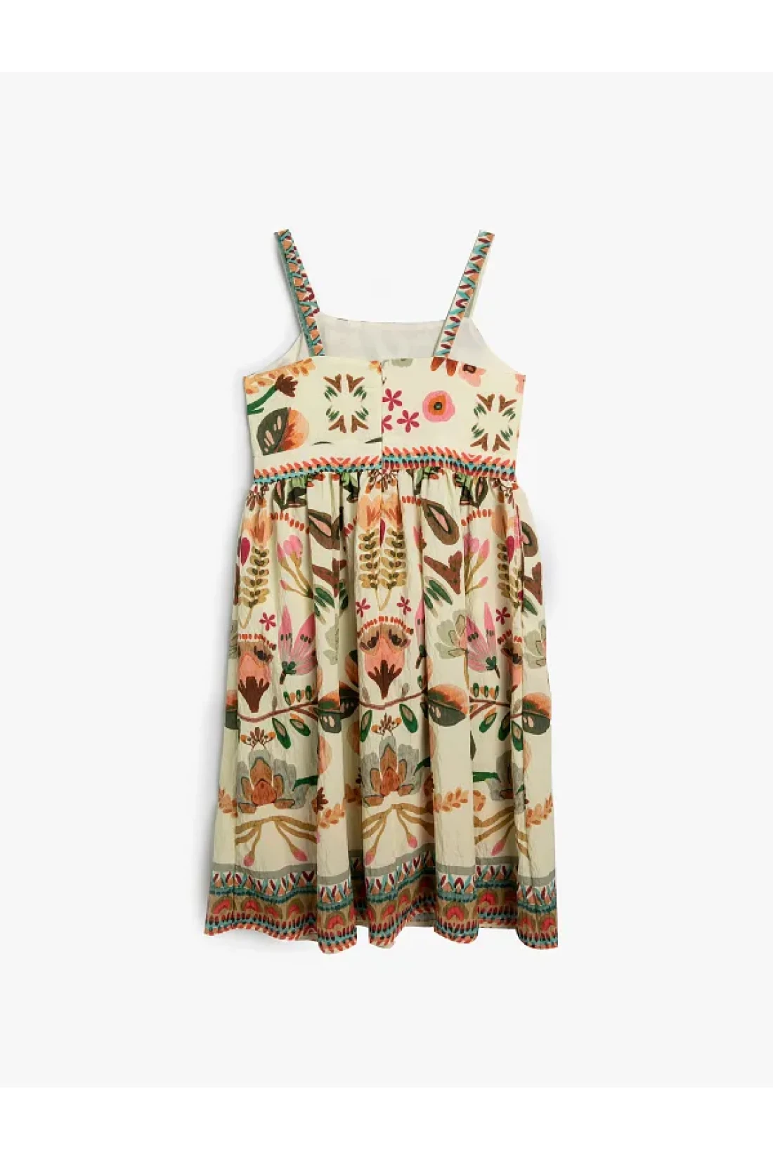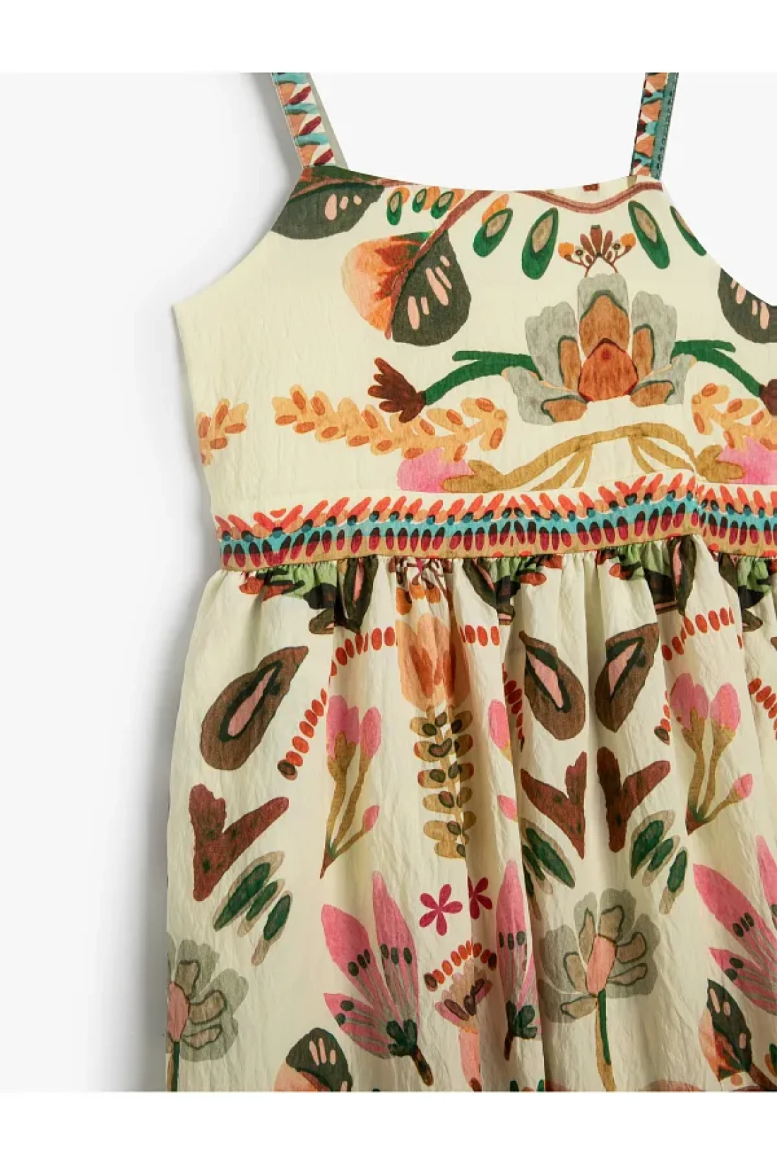 Koton Viscose Fabric - Floral Patterned Square Collar Strap Dress
