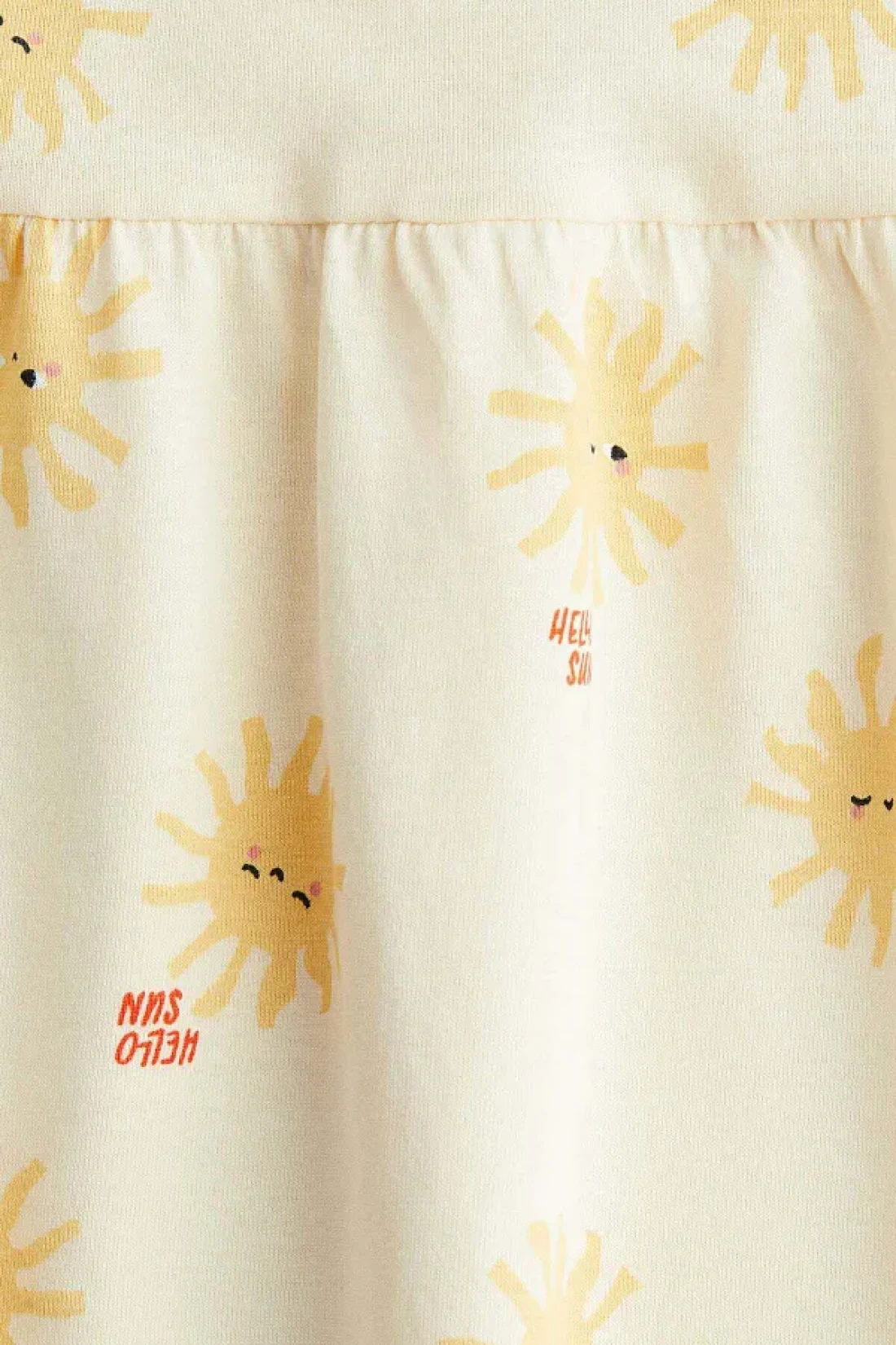 Comfortable sleeveless dress in soft, patterned cotton jersey with a gathered seam at the waist and gently flared skirt.