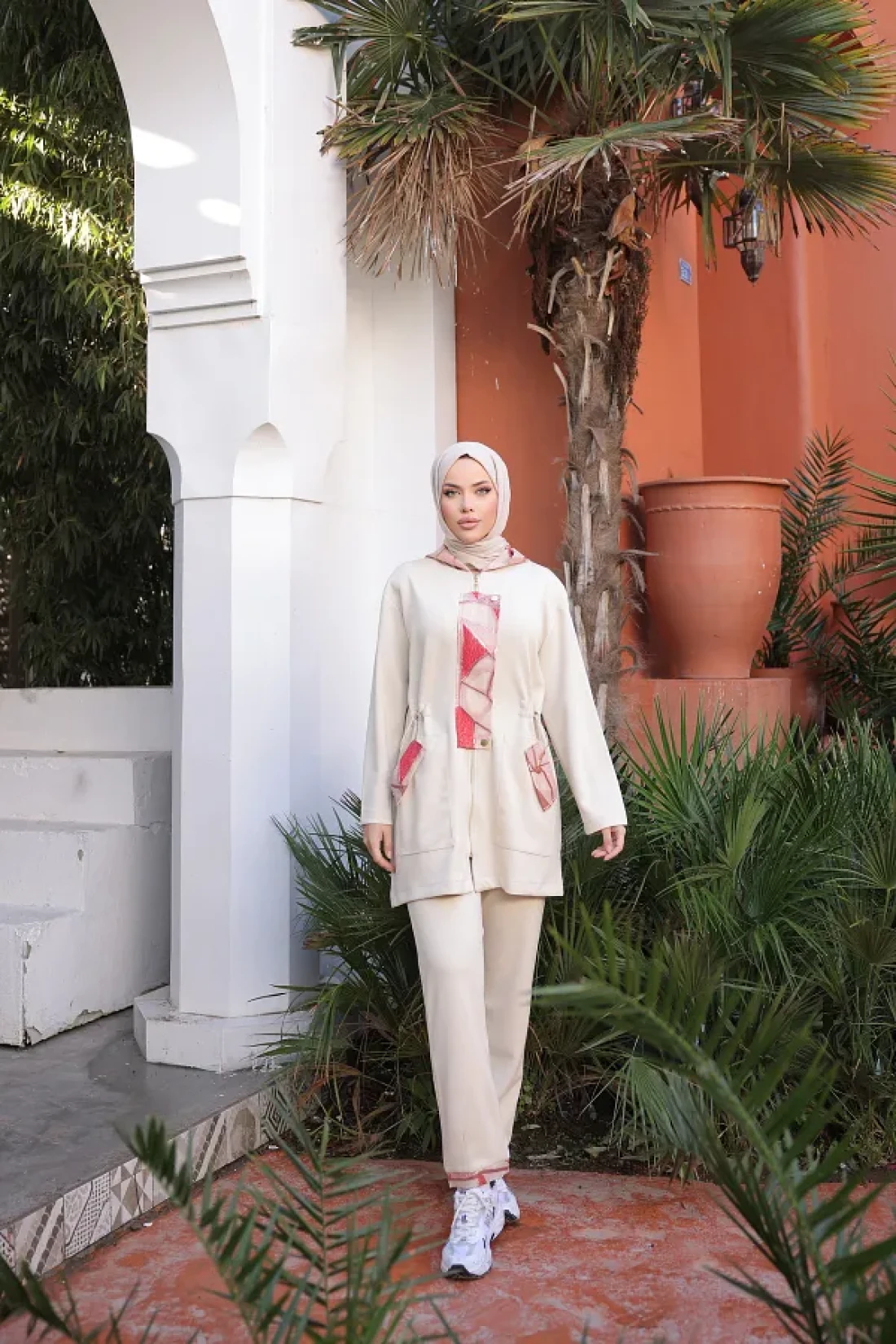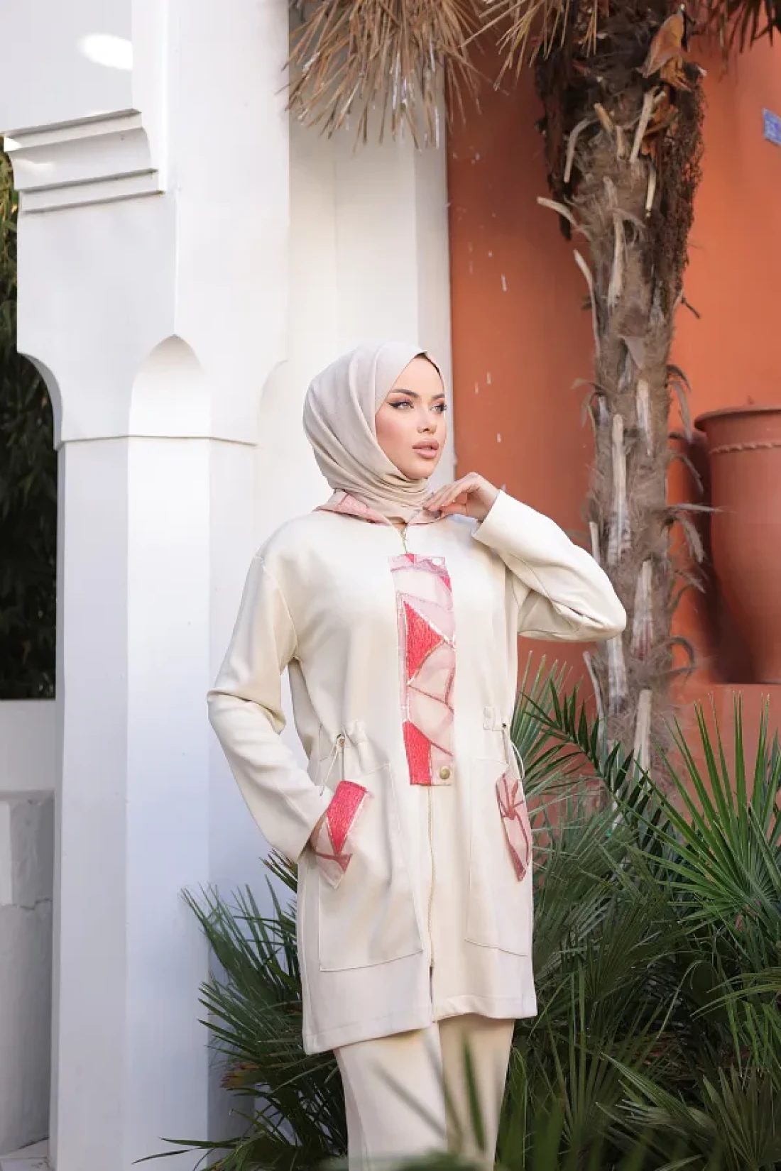 - with its cream hue, it gives a stylish and elegant look, while its solid pattern allows for easy matching. It is specially designed for the hijab clothing collection and attracts attention with its feminine lines.