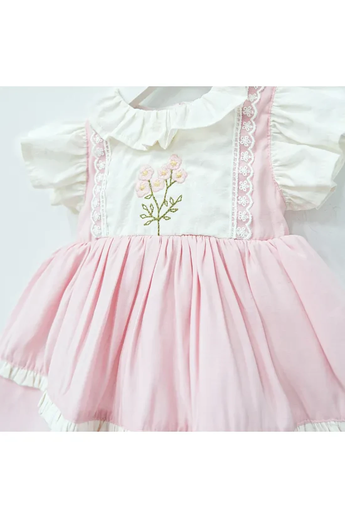 ministok Mira Baby Girl Dress with Ruffle Collar and Embroidery