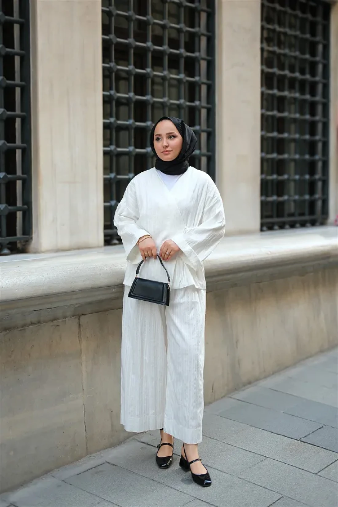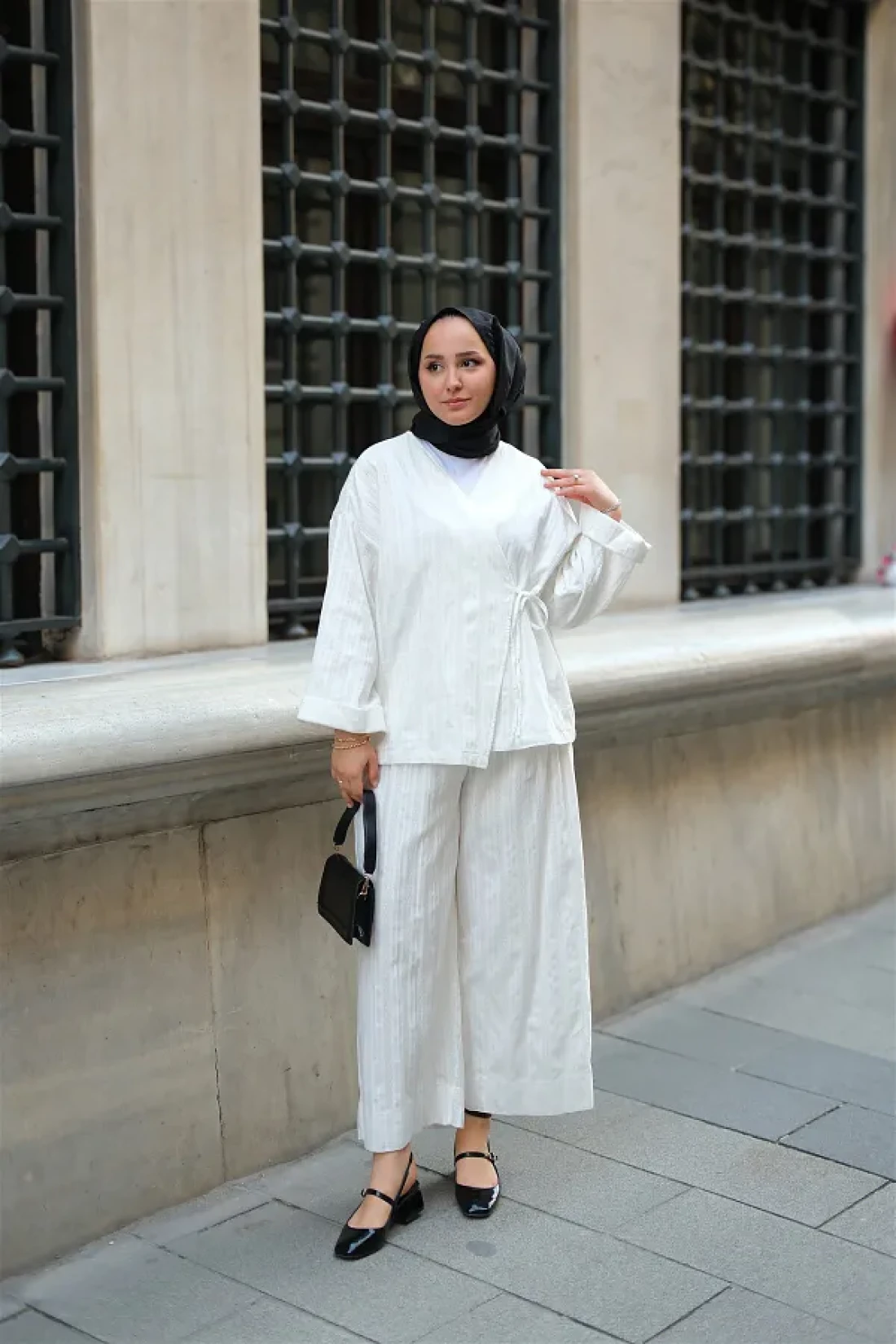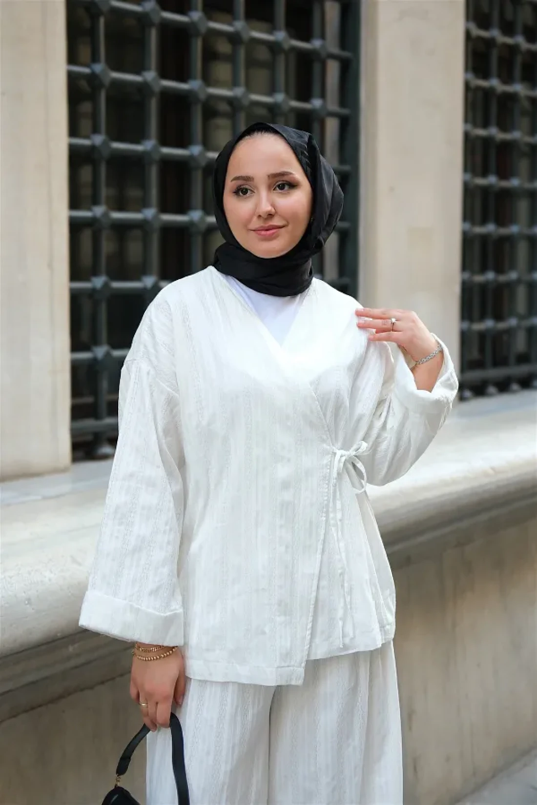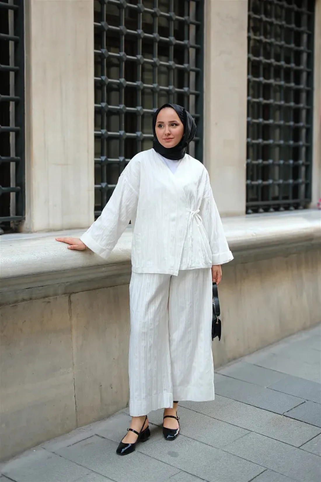 LOCCO Almond Stitched Women's Kimono Set White