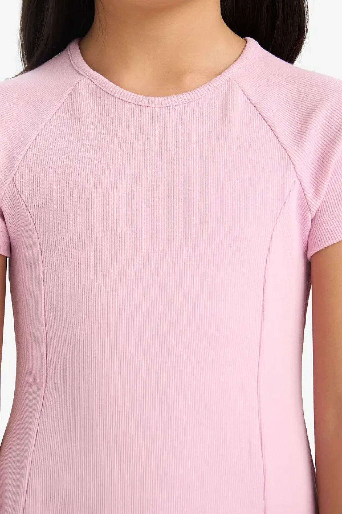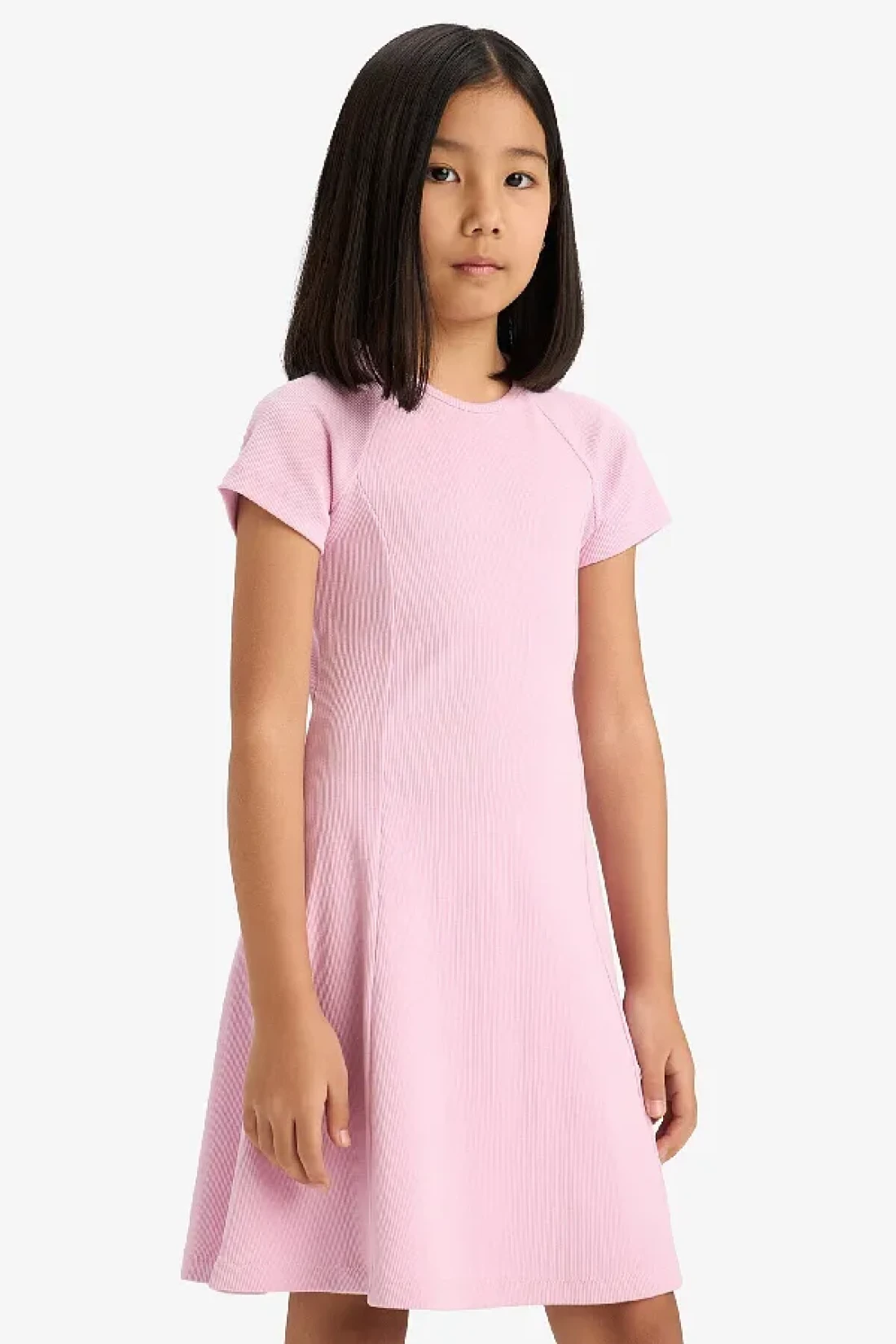 The girl's crew neck a-line basic straight Corded Fabric Ribbed Knit short-sleeved dress, with its elegant design and comfortable fit, is a perfect choice for everyday wear.