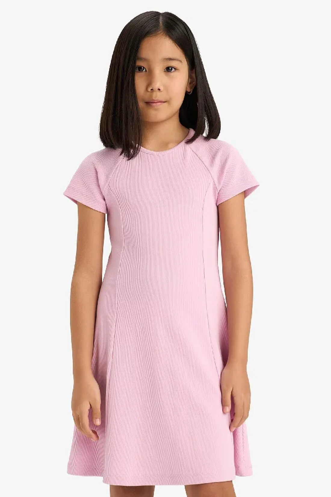 Defacto Girls' Crew Neck A-Line Basic Solid Ribbed Camisole Short Sleeve Summer Dress E5801A825Sm