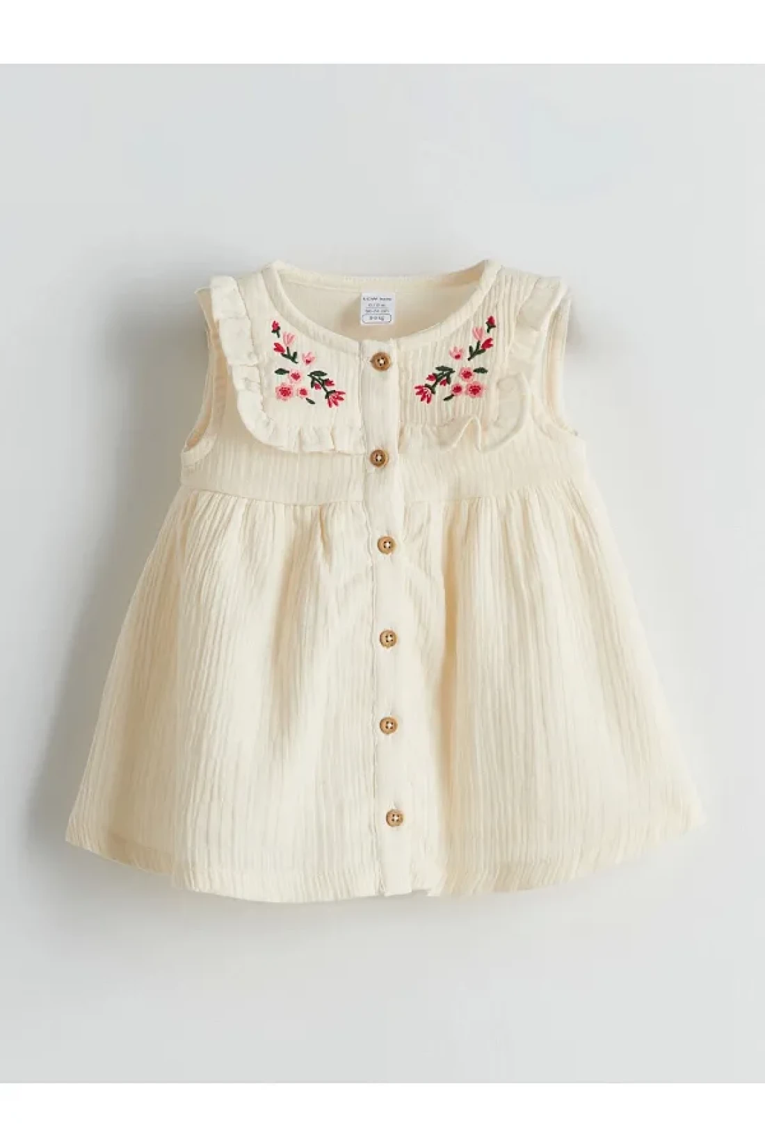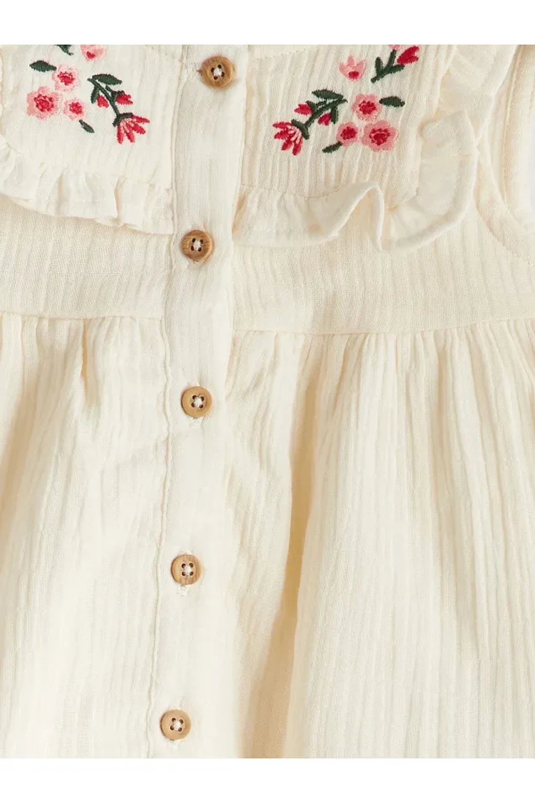 LC Waikiki Lcw Baby Ekru Floral Embroidered Muslin Baby Girl Dress