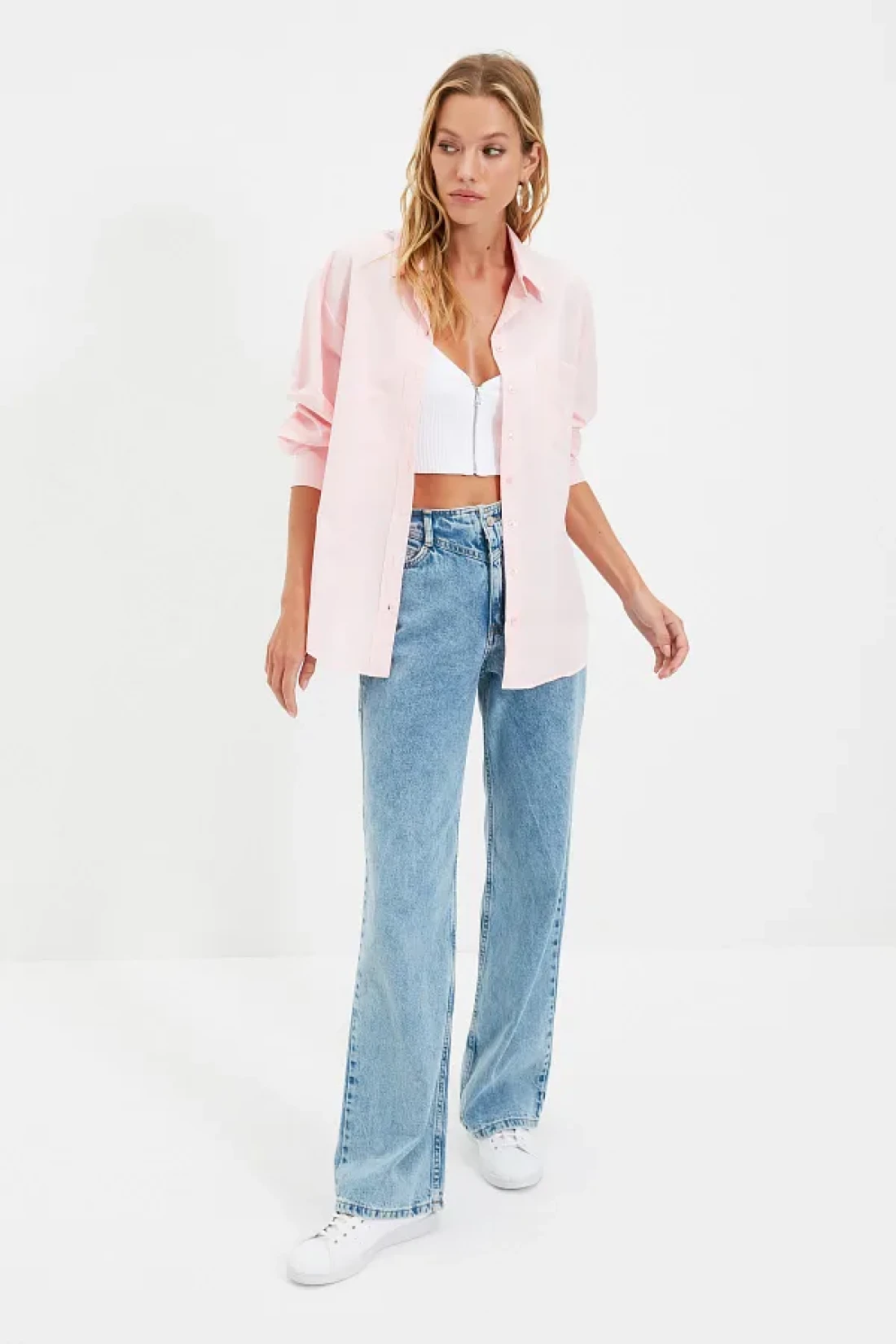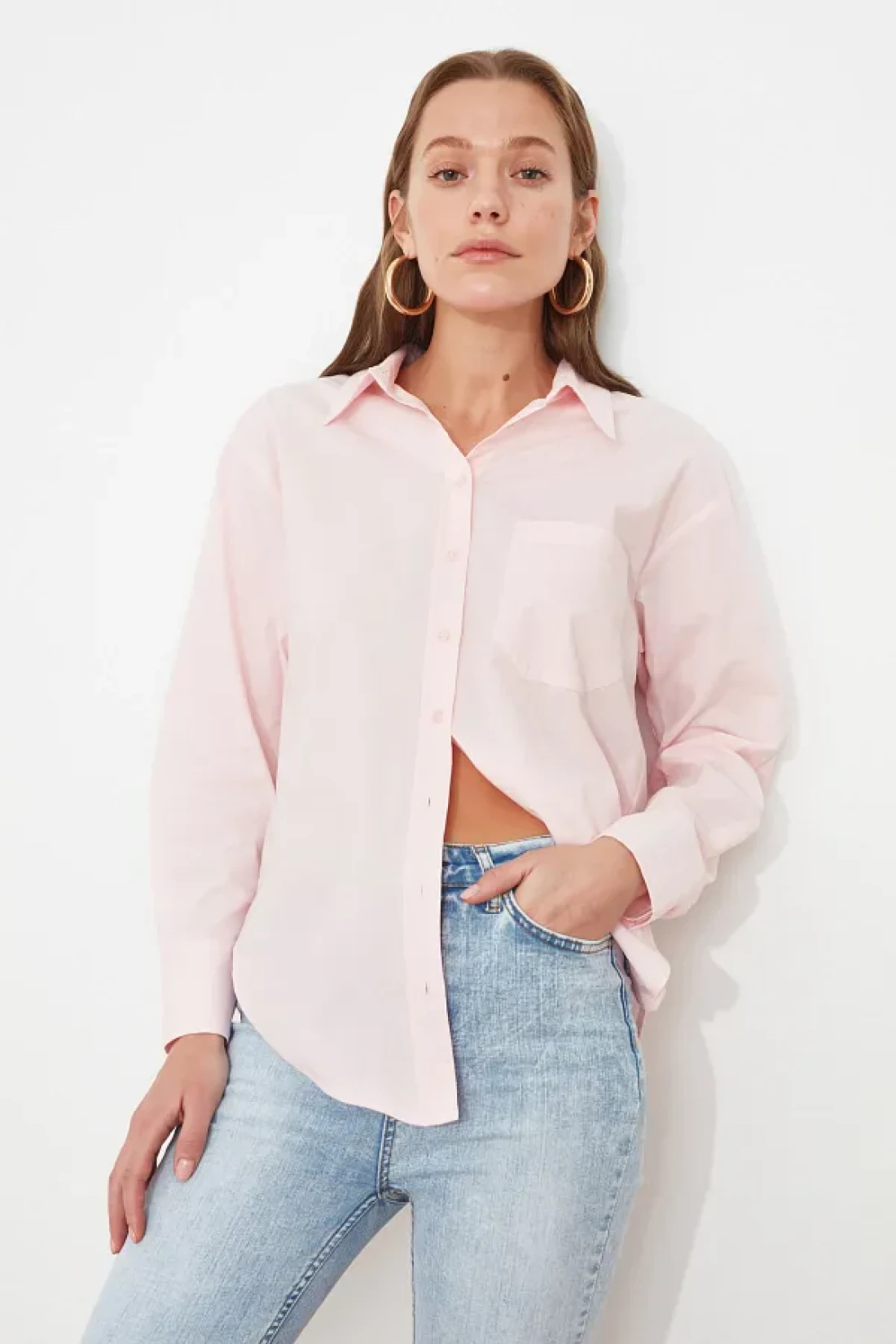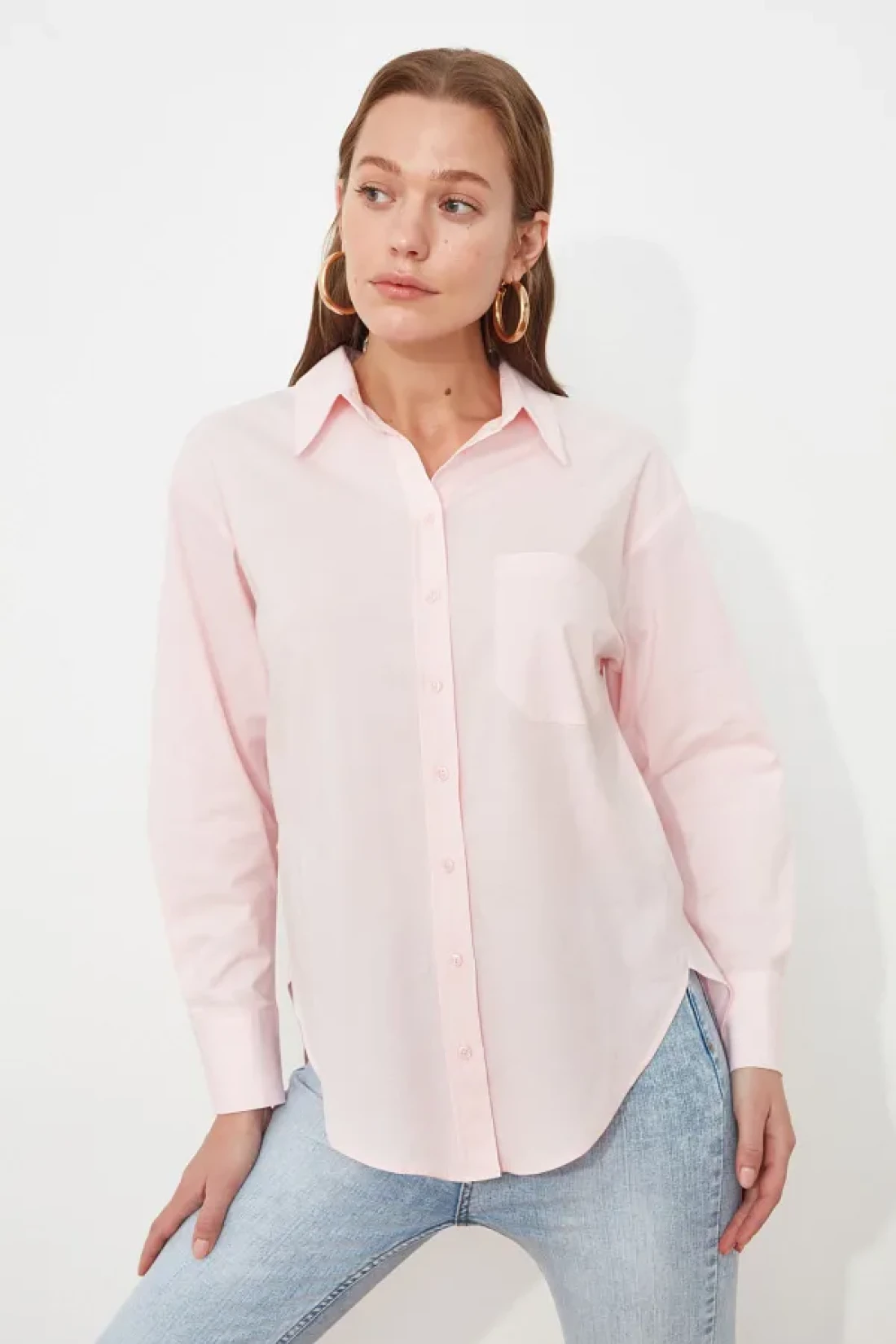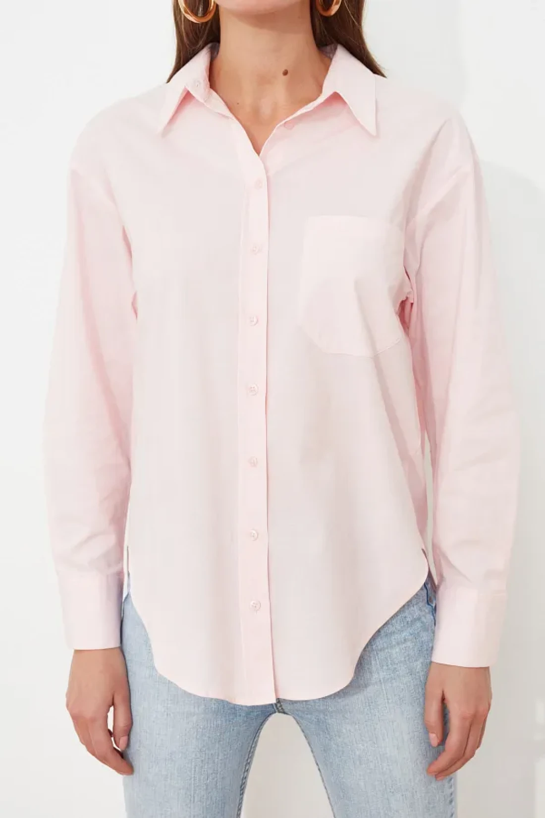 Collection Pink Single Pocket Boyfriend/Wide Fit Cotton Woven Shirt TWOAW20GO0115