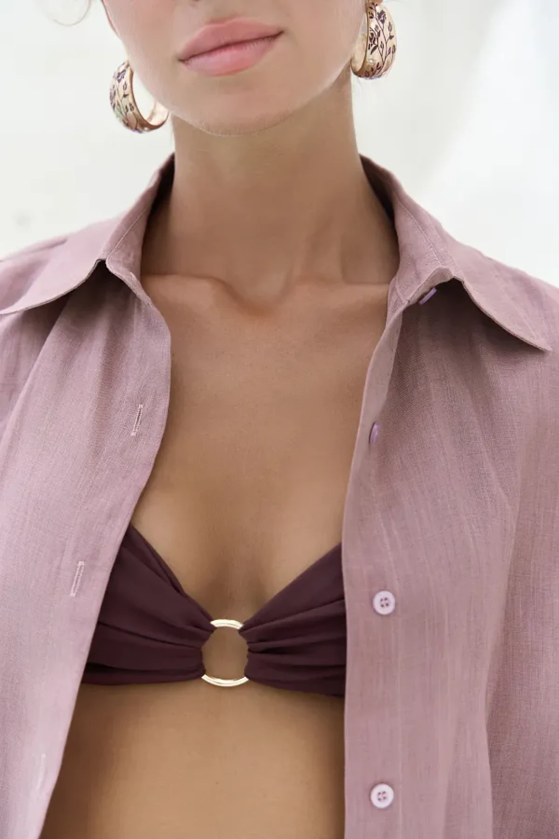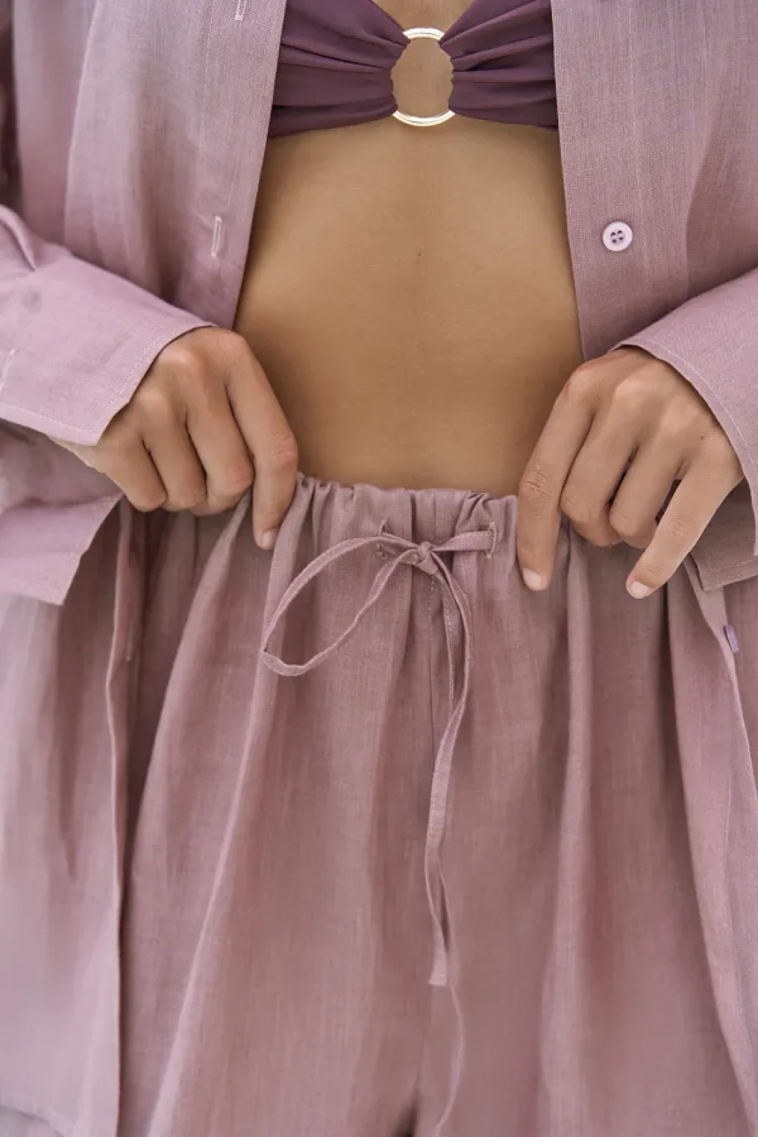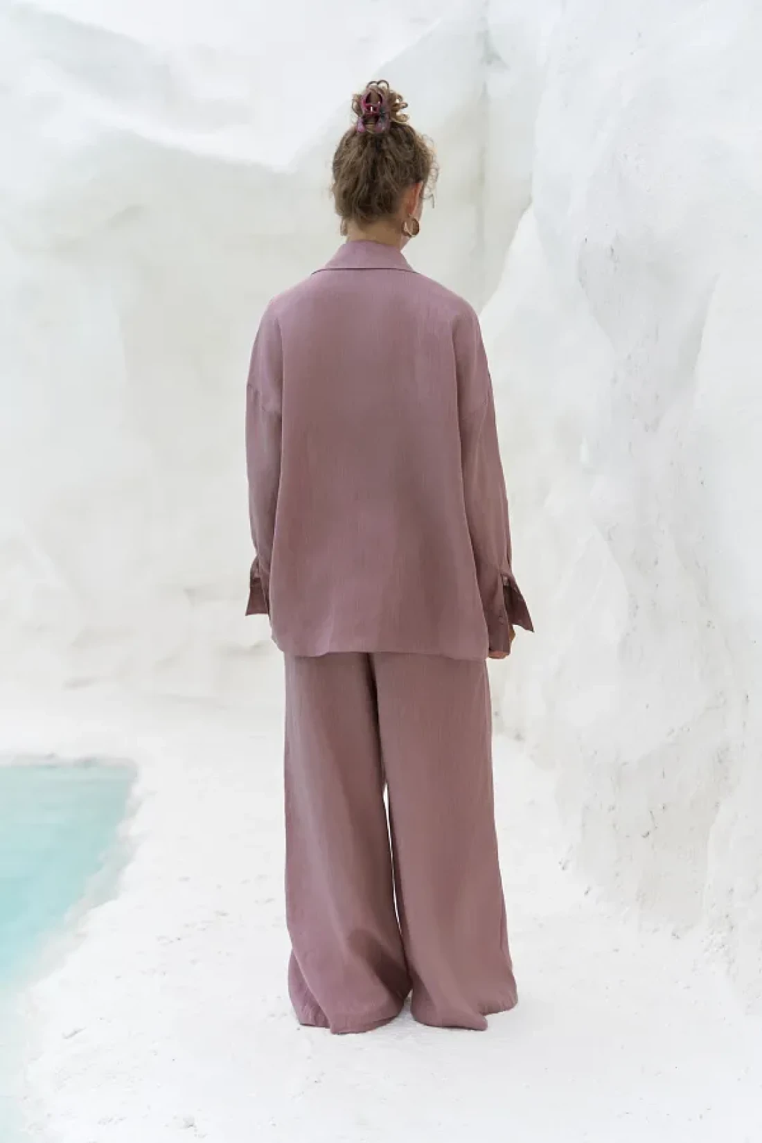 BOHEMAİ Jelsomina Oversize Light Burgundy Linen Shirt Trousers Set