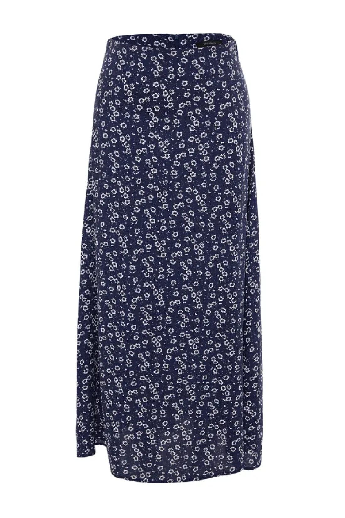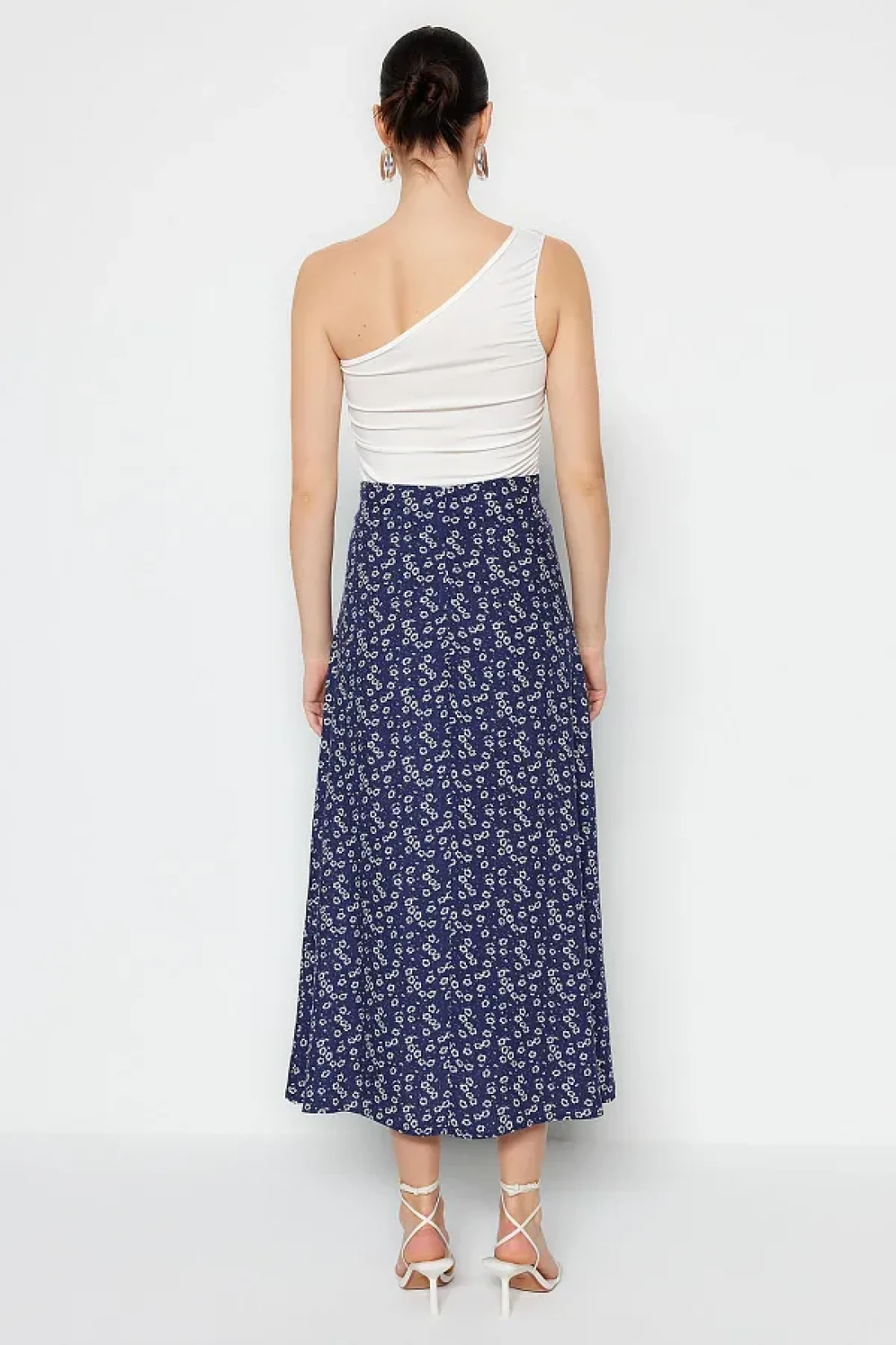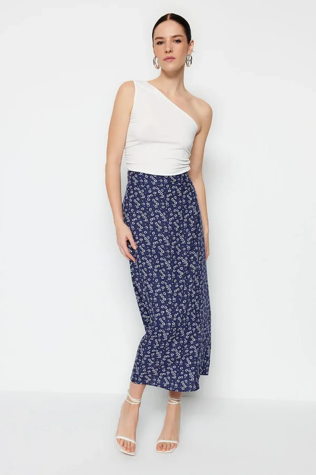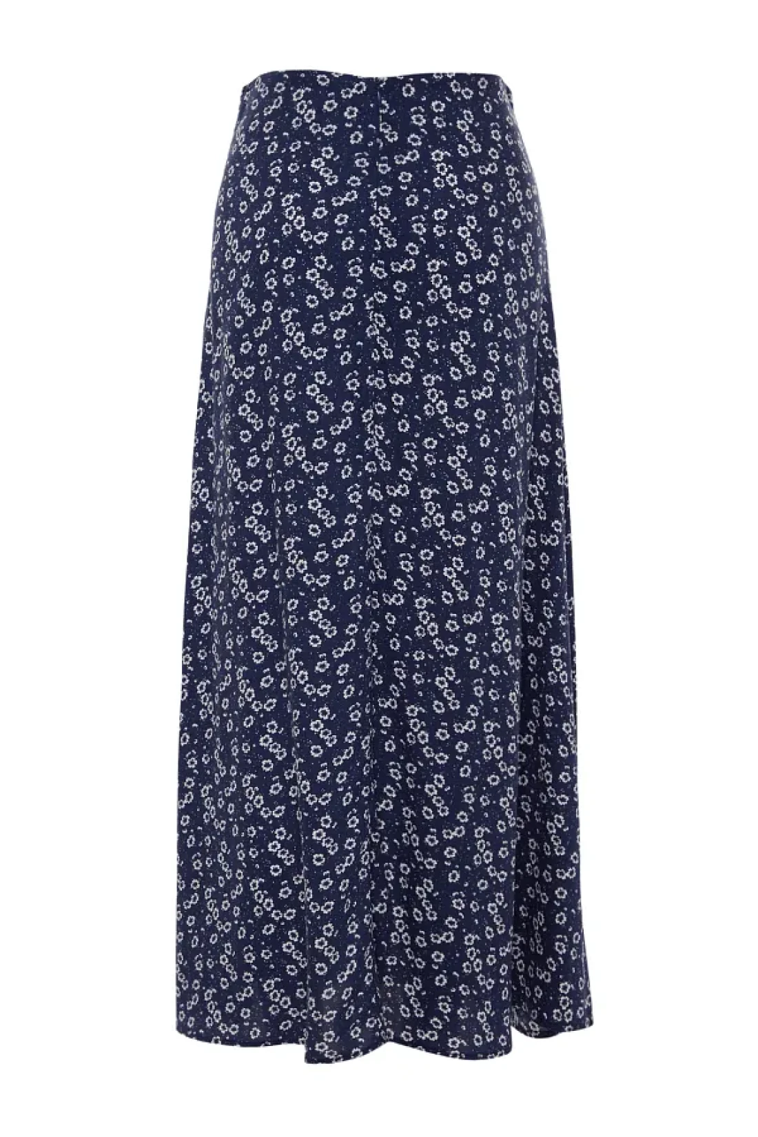 Collection Blue Floral Patterned Viscose Midi Skirt - TWOSS23ET00295