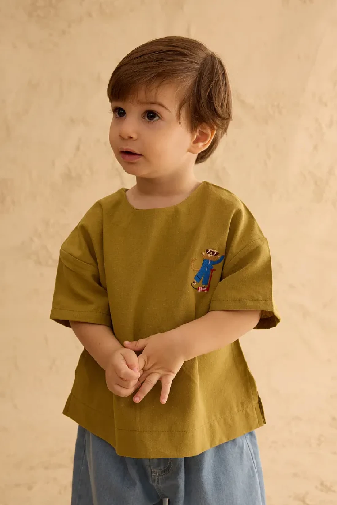 Fahhar Kids Ribbed Kimono Suit Fat Green