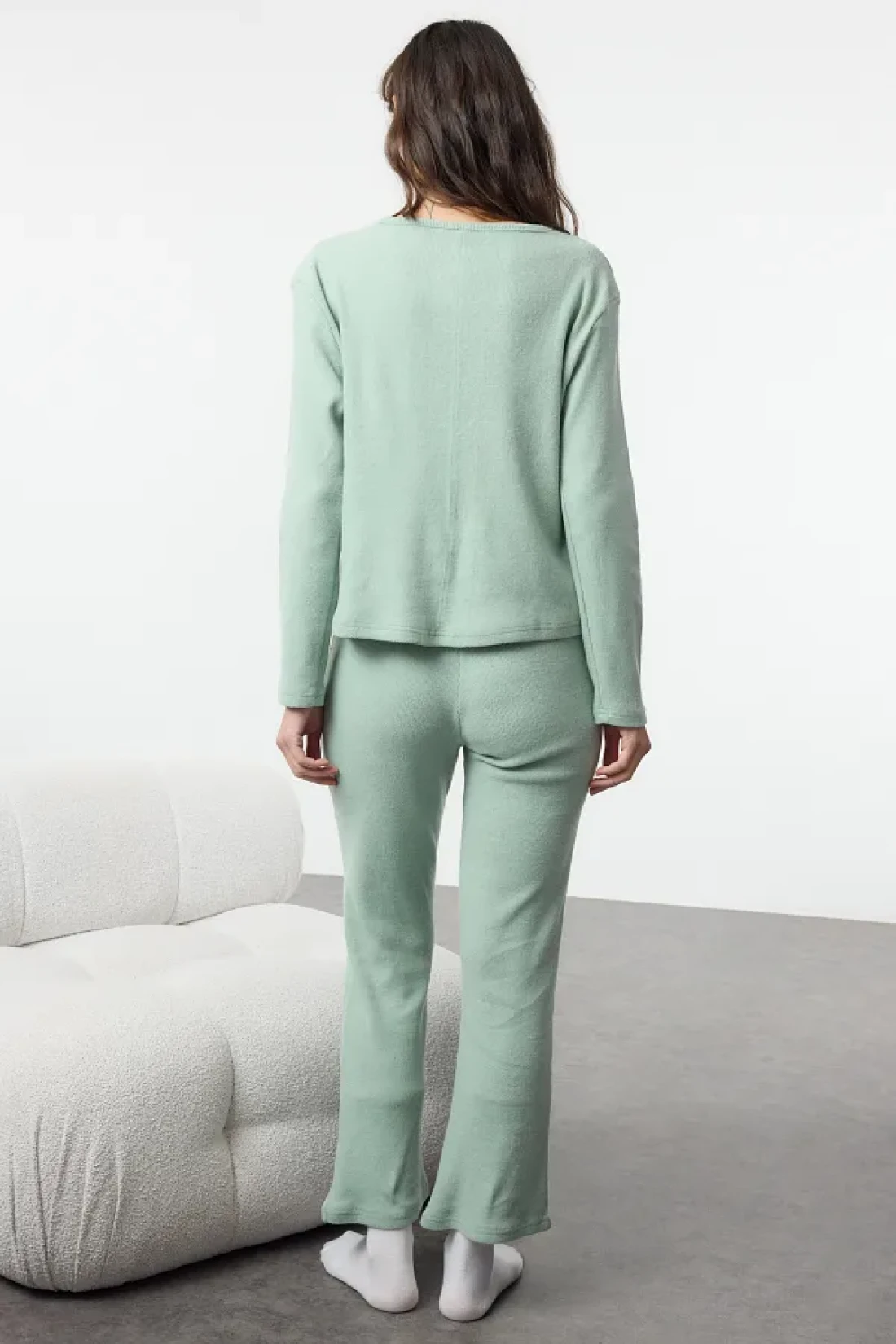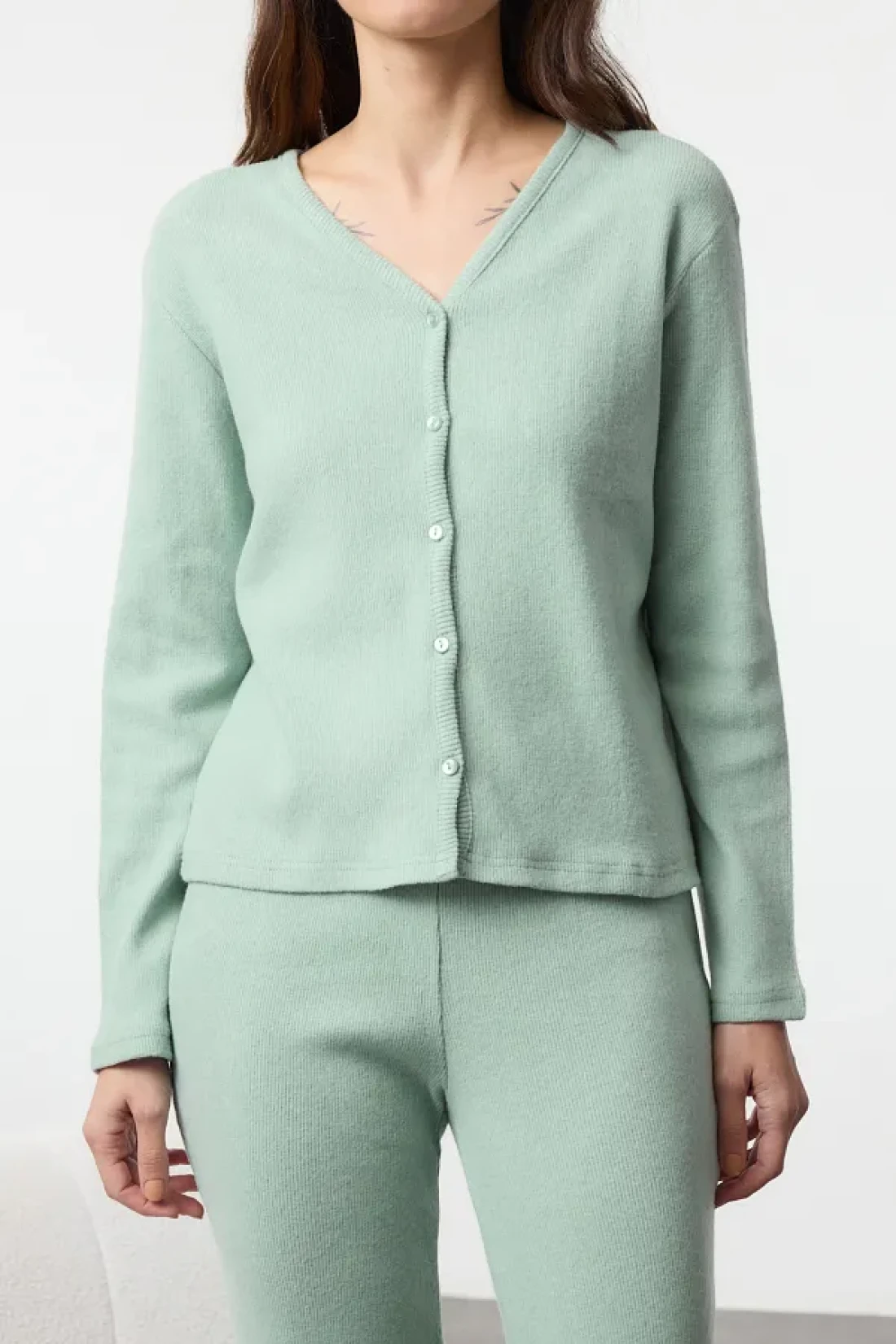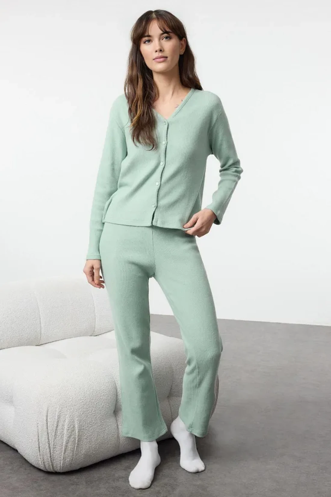 Collection Mint Brushed Soft Corded Cardigan Knitted Pajamas Set Thmaw25Pt00074