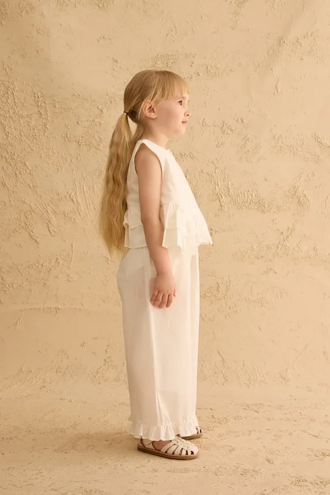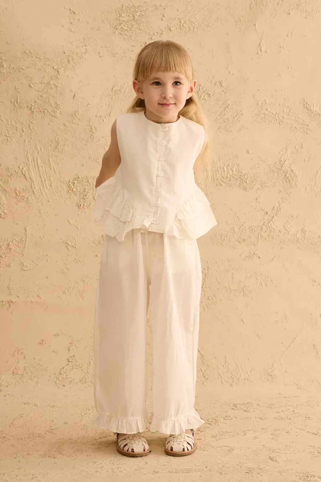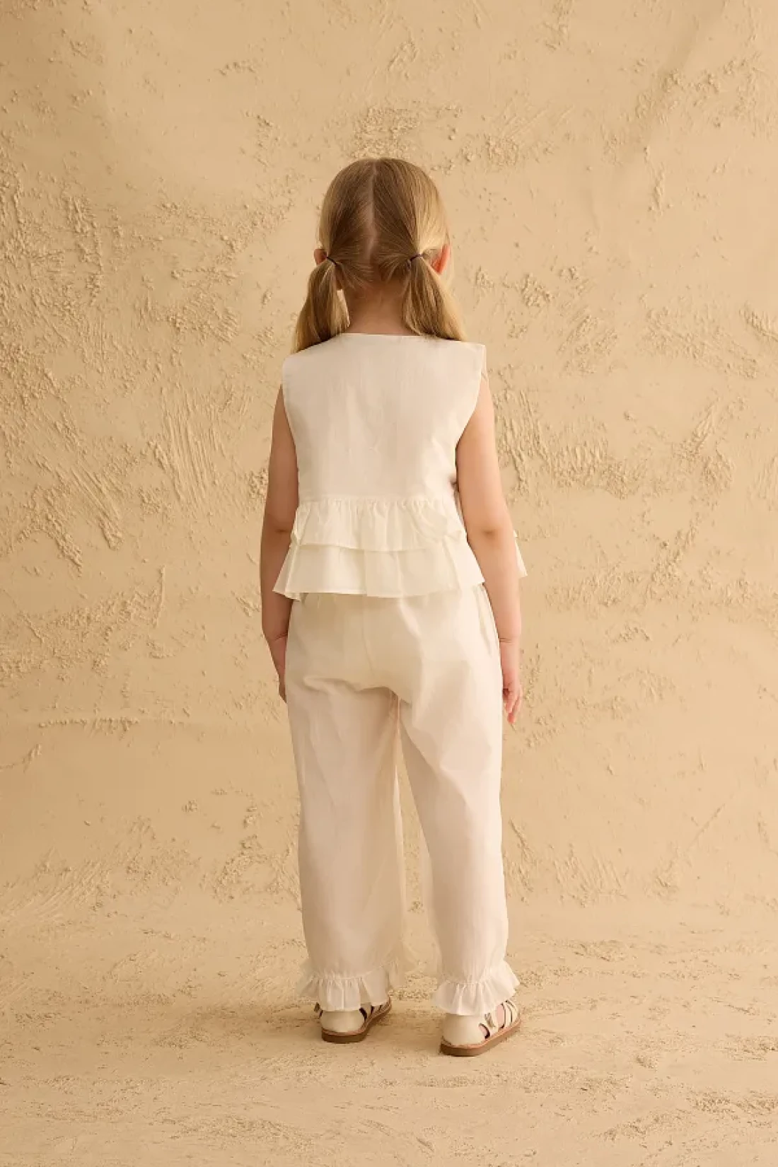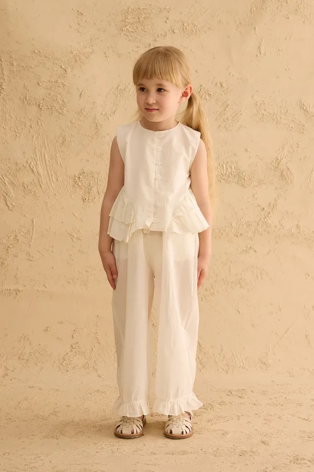 Fahhar Kids Cotton Suit with Flounces on the Sides Ecru