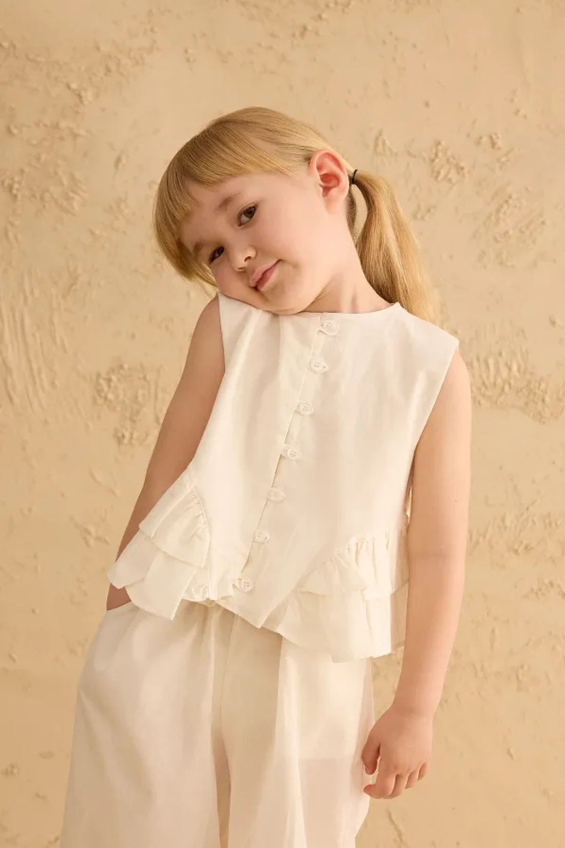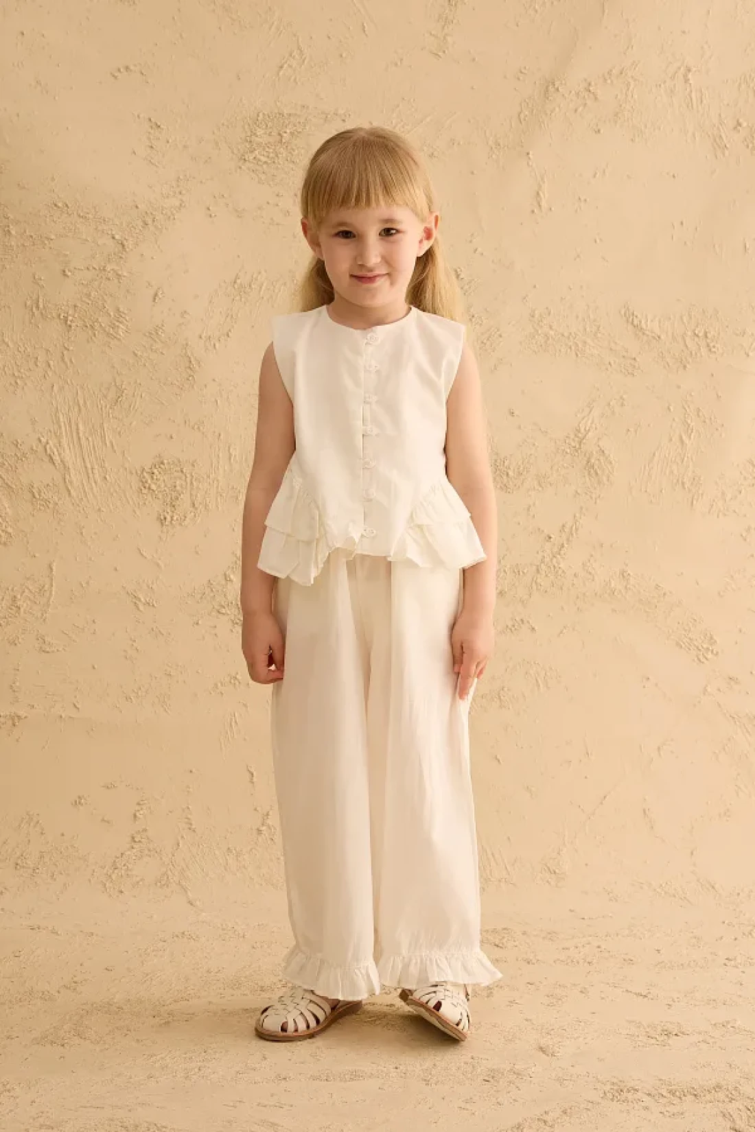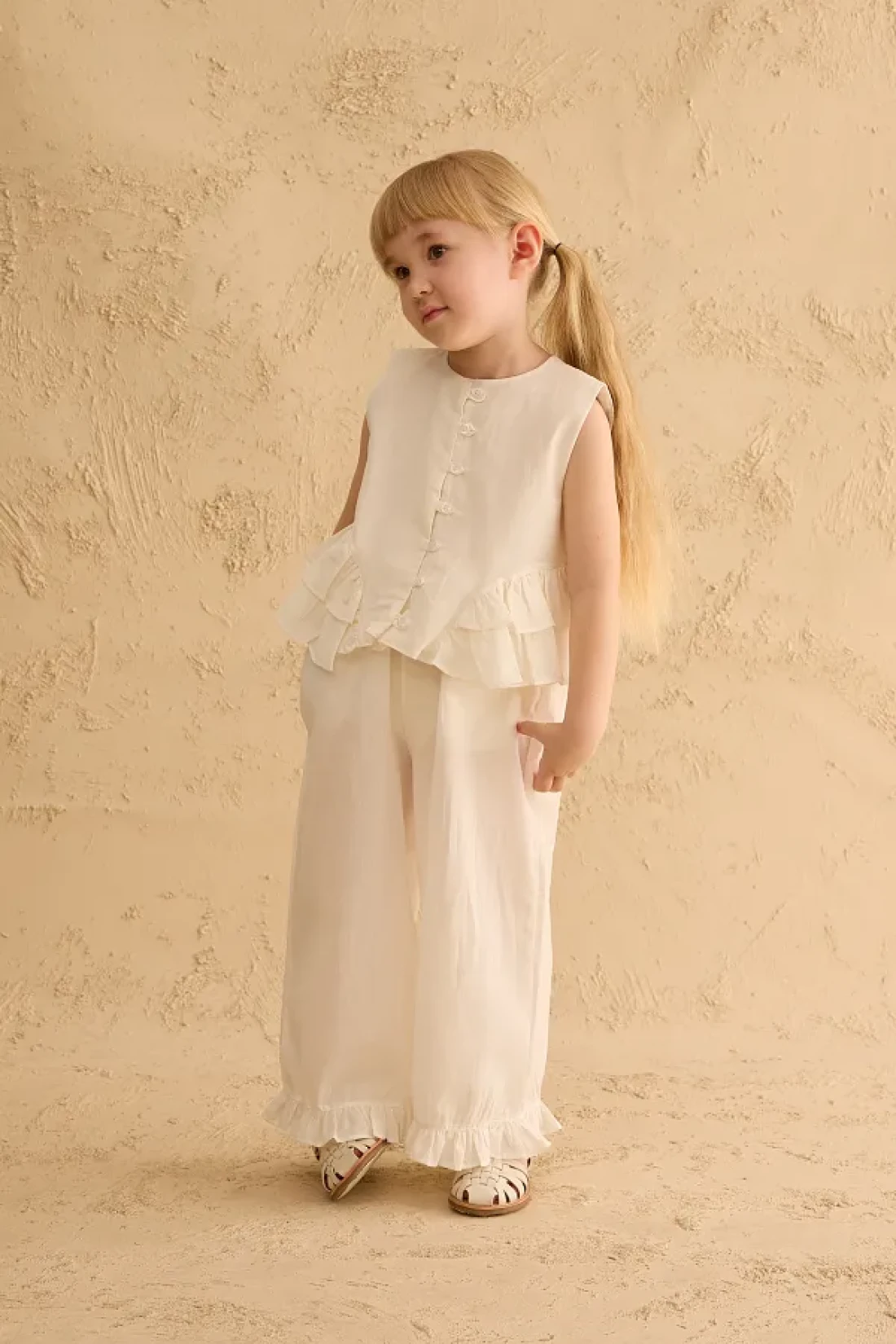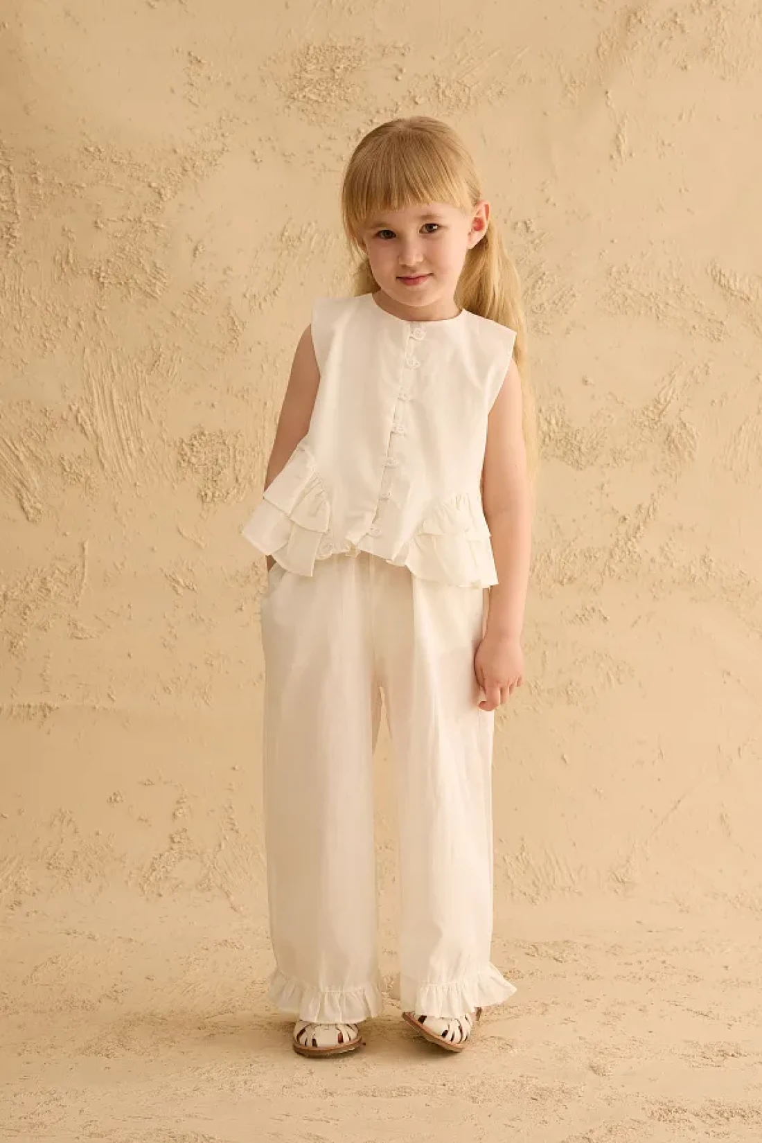 Fahhar Kids Cotton Suit with Flounces on the Sides Ecru