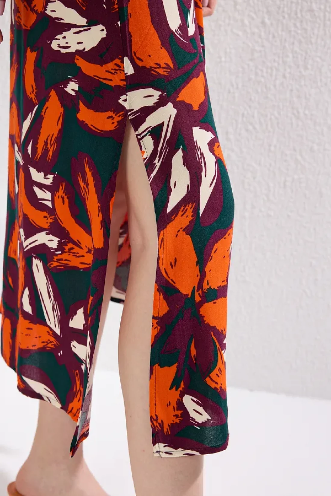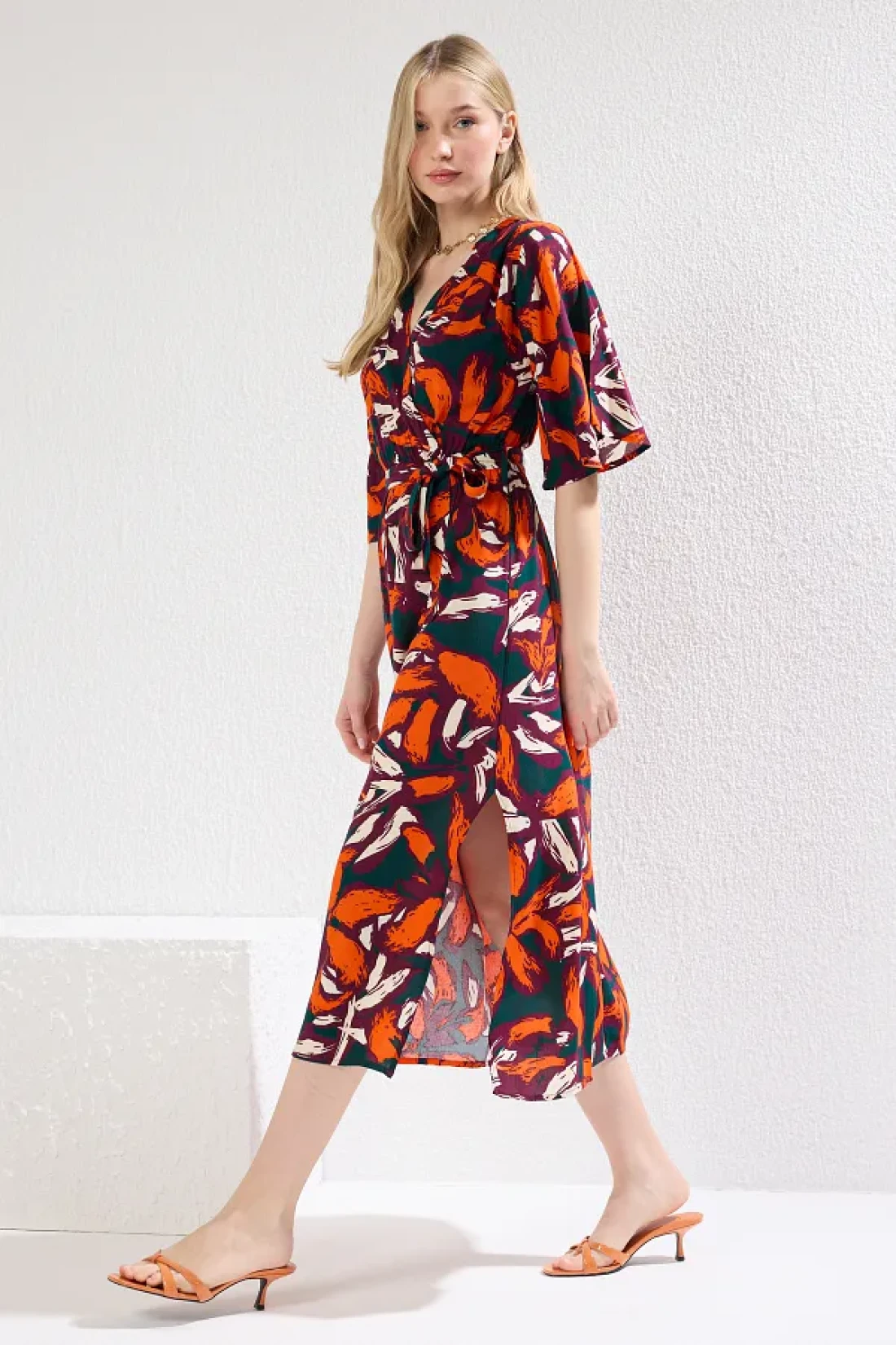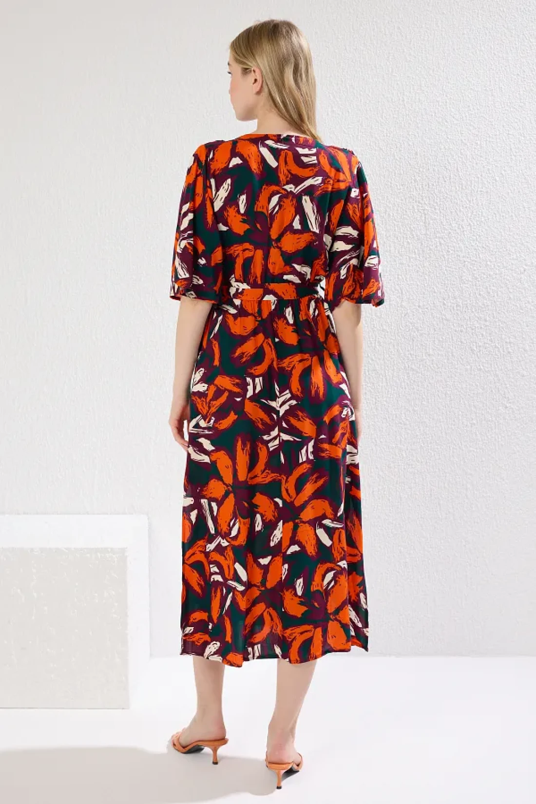 Collection Multicolor Belted Floral Print A-Line Double Breasted Neckline Midi Woven Dress Twoss24El00915