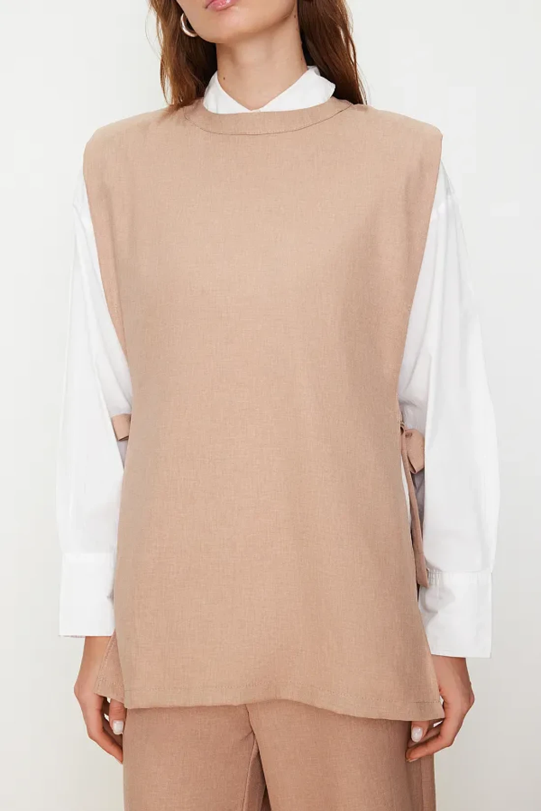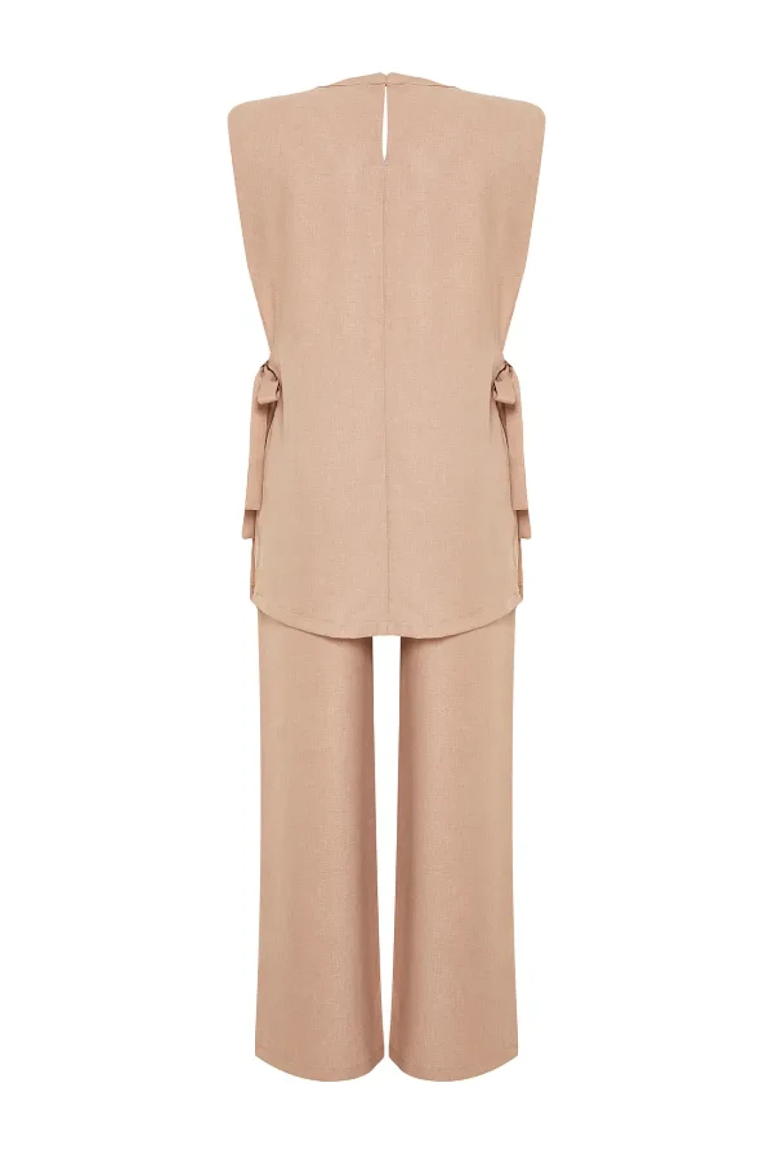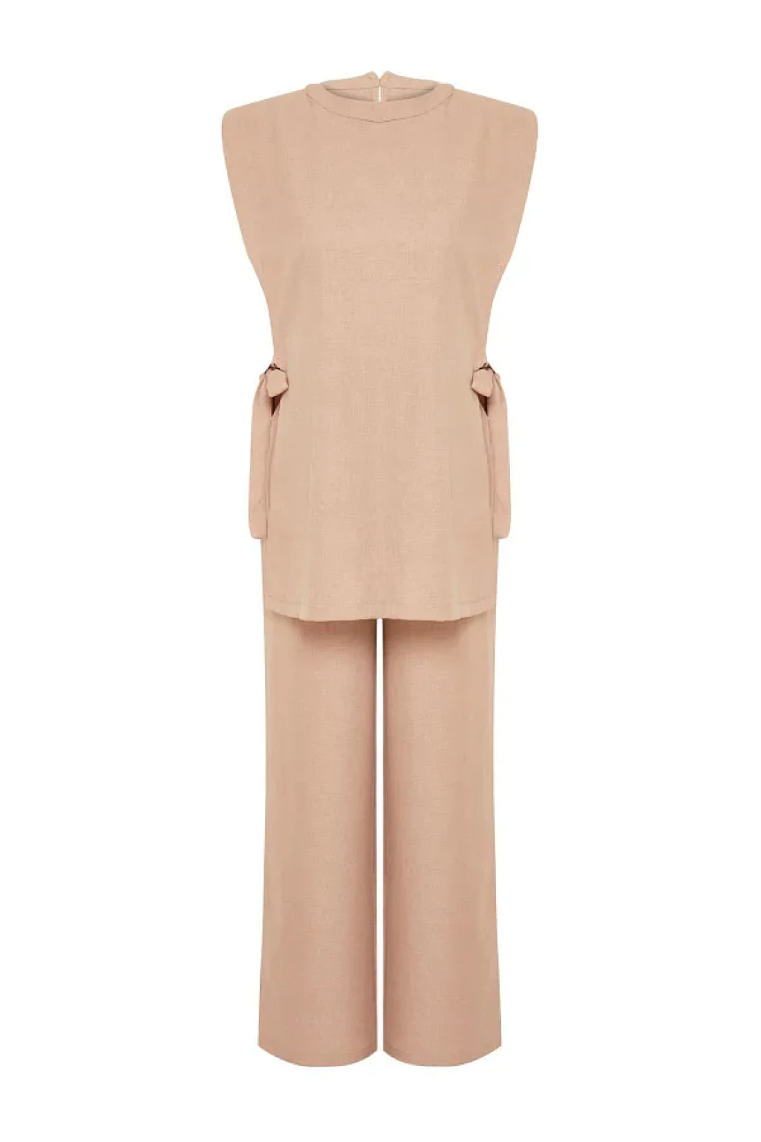 Modest Mink Linen Look Side Tie Woven Bottom Top Set TCTSS24US0001