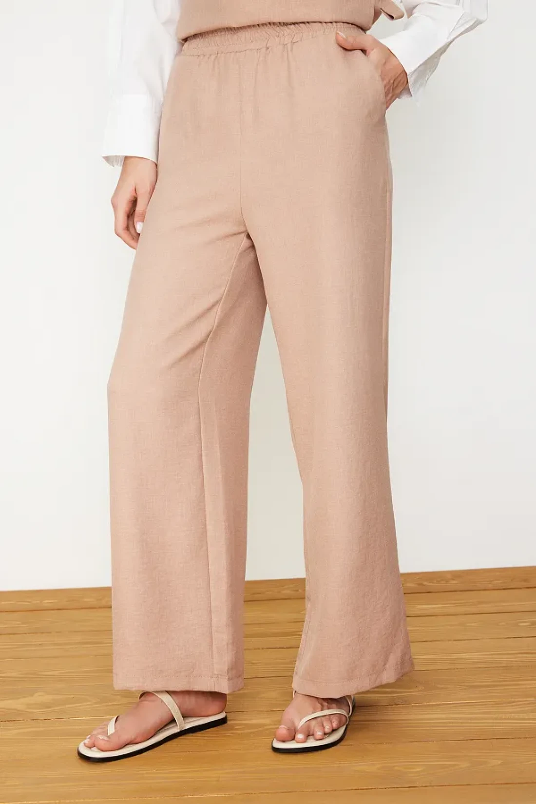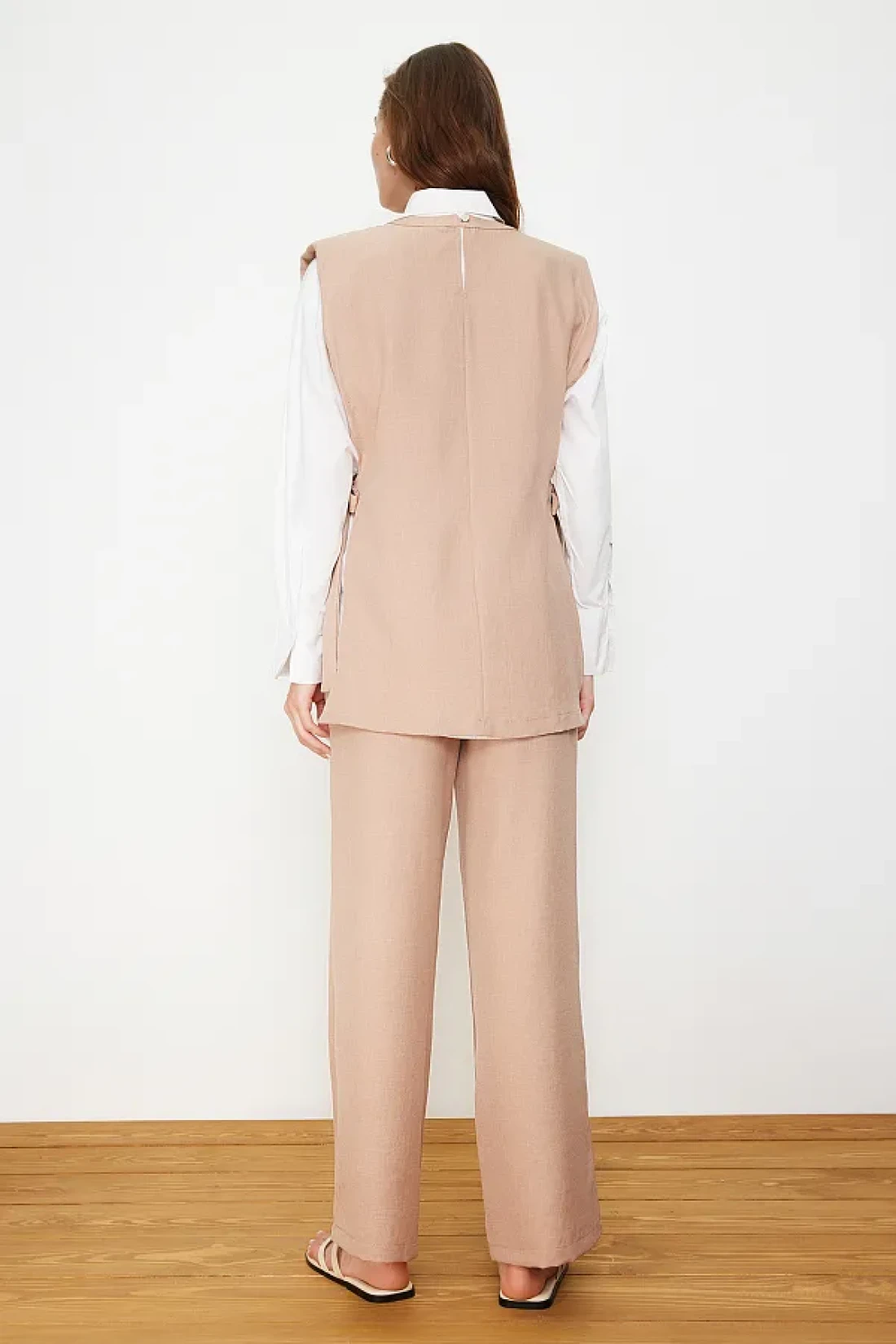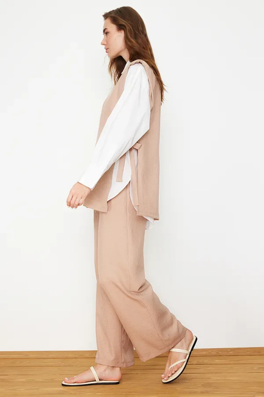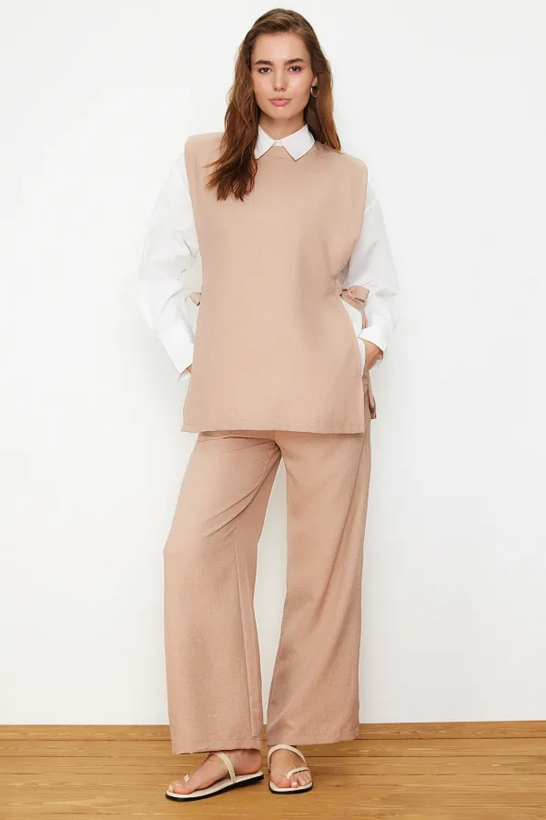 Modest Mink Linen Look Side Tie Woven Bottom Top Set TCTSS24US0001
