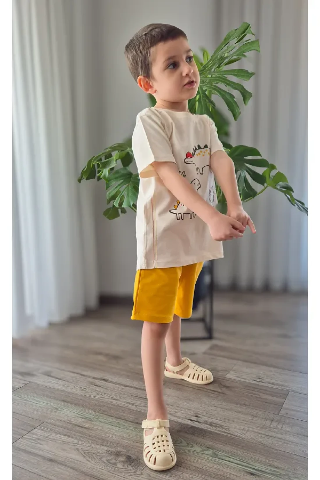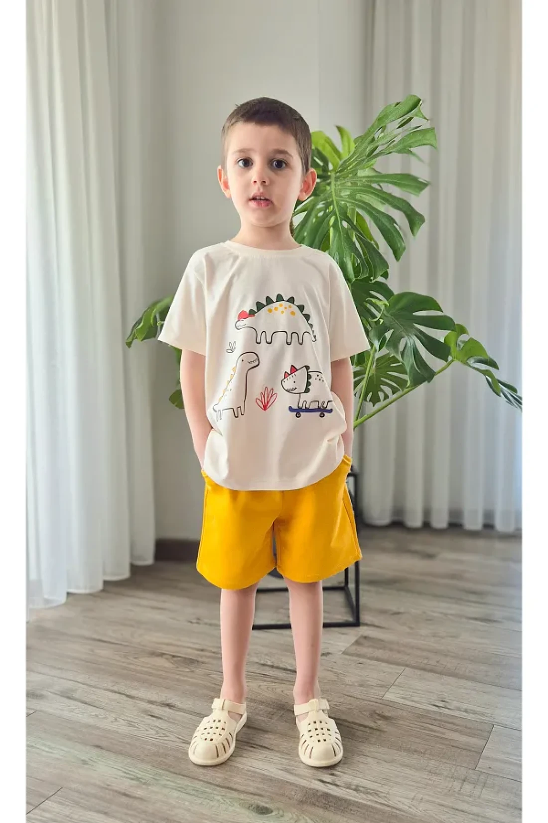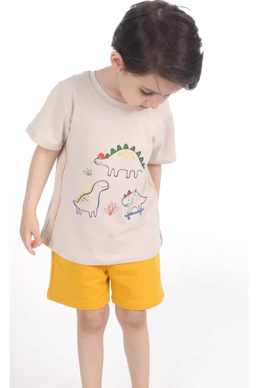 BALKABAĞI Dinosaur Bloods and Shorts/Stone Tshirt for 2 Sets Boys Piping Detailed Mtye0026
