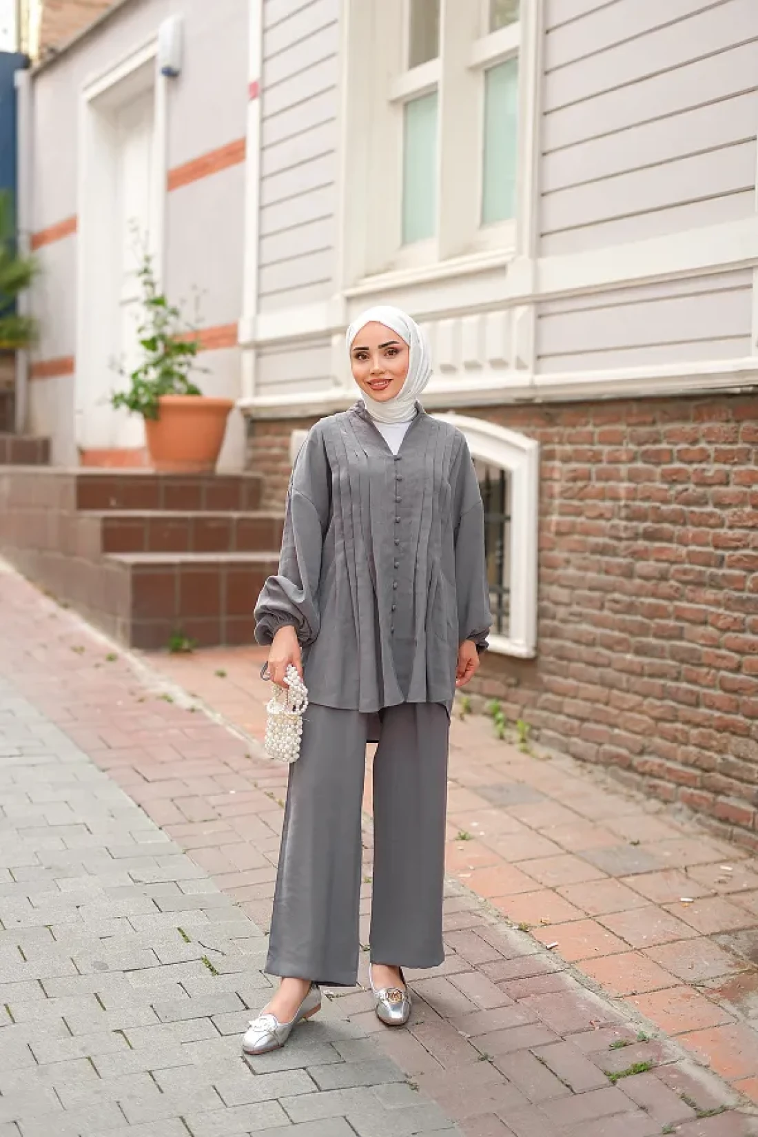 LOCCO Women's Ornamental Stitched Gathered Suit Anthracite