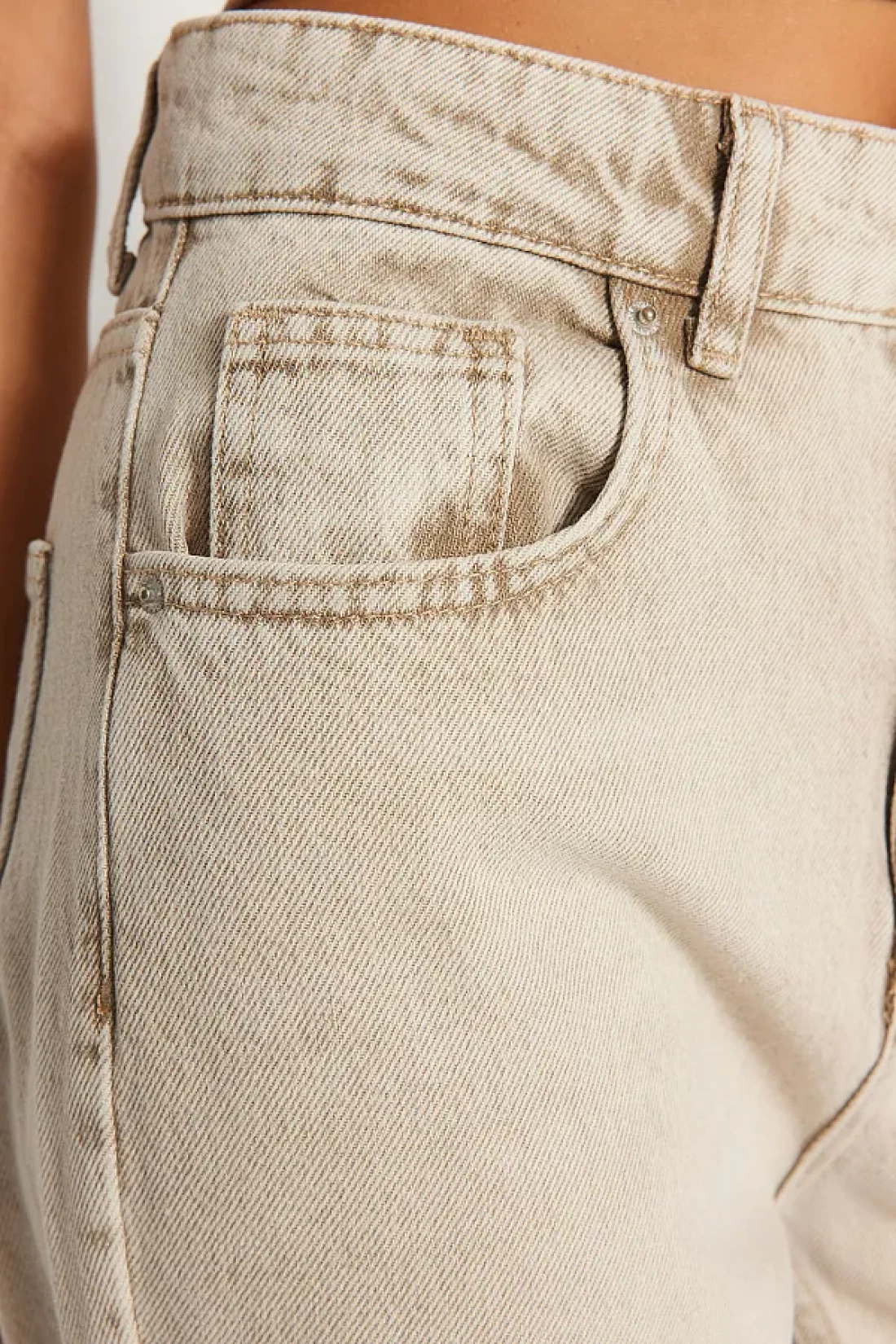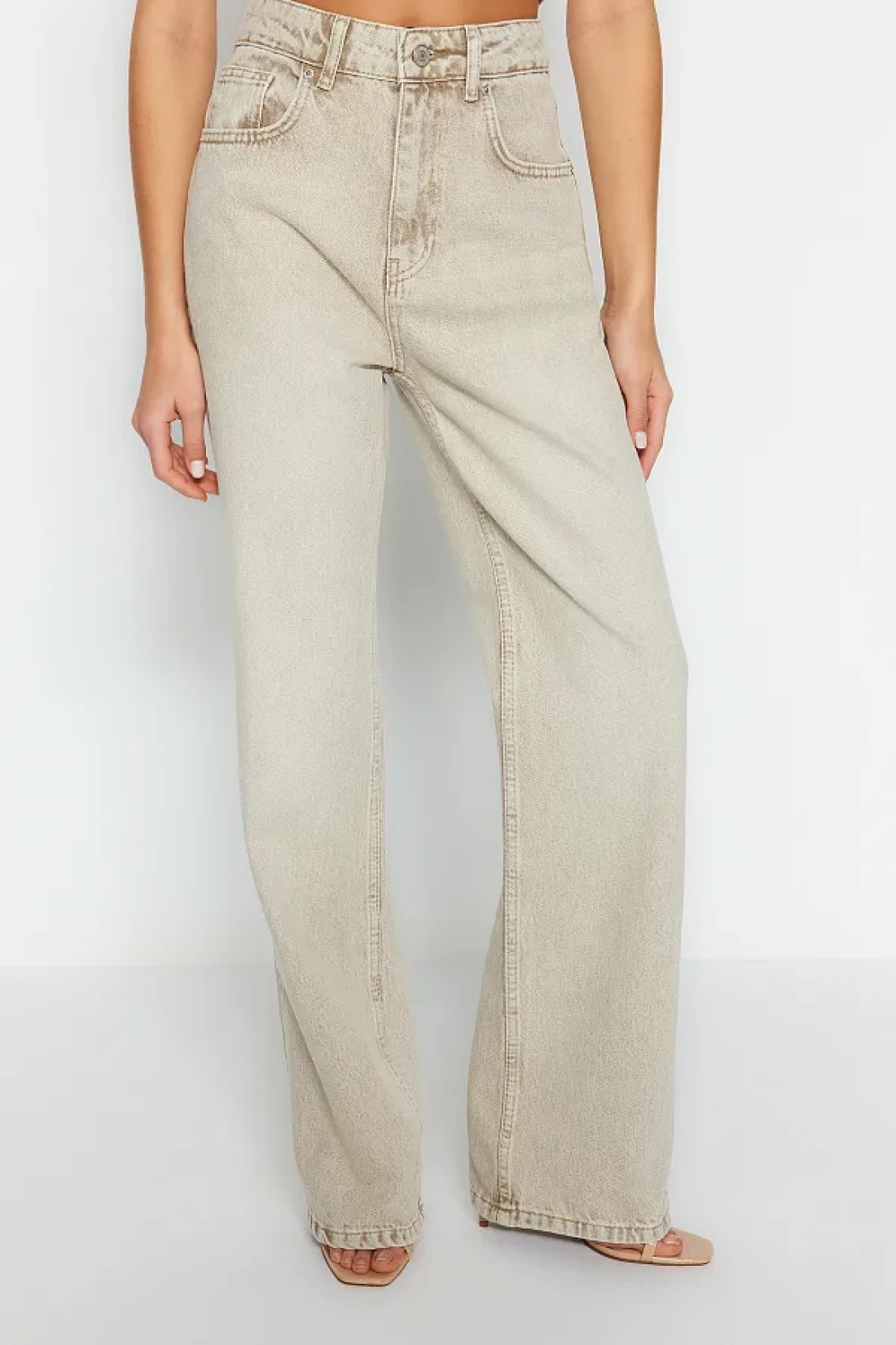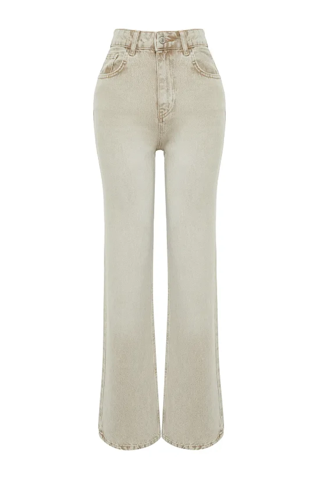 Collection Beige Faded Effect Vintage Normal Waist Wide Leg Jeans TWOSS24JE00011