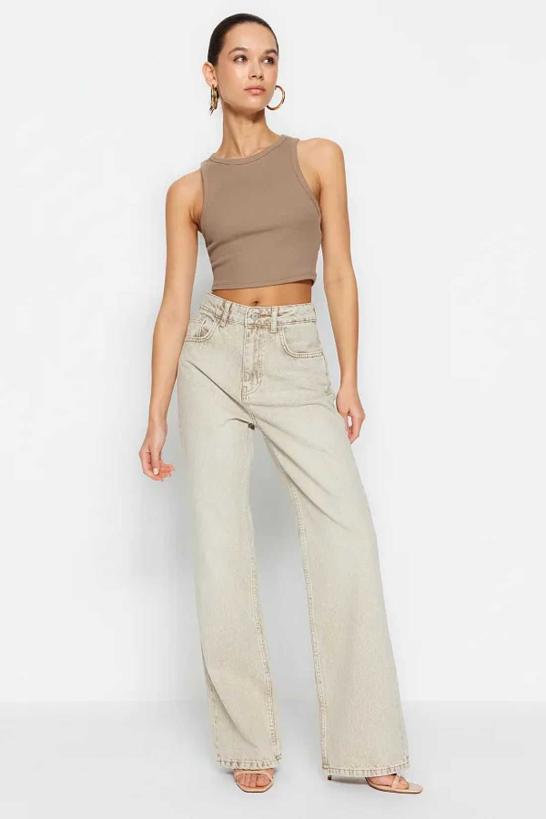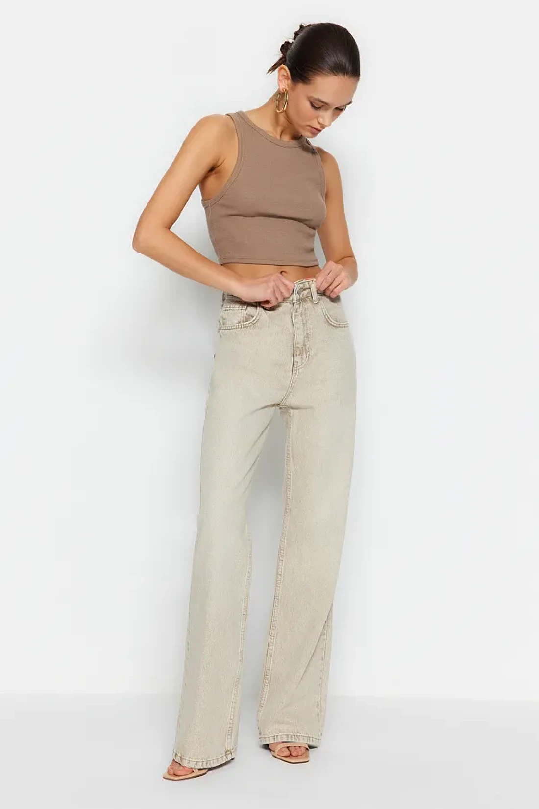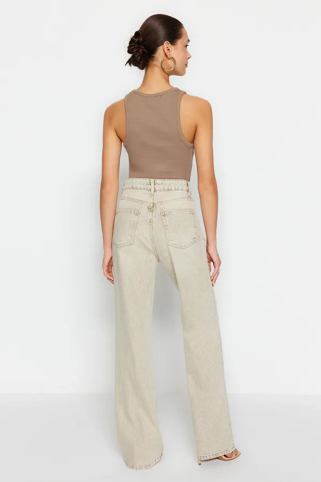 Collection Beige Faded Effect Vintage Normal Waist Wide Leg Jeans TWOSS24JE00011